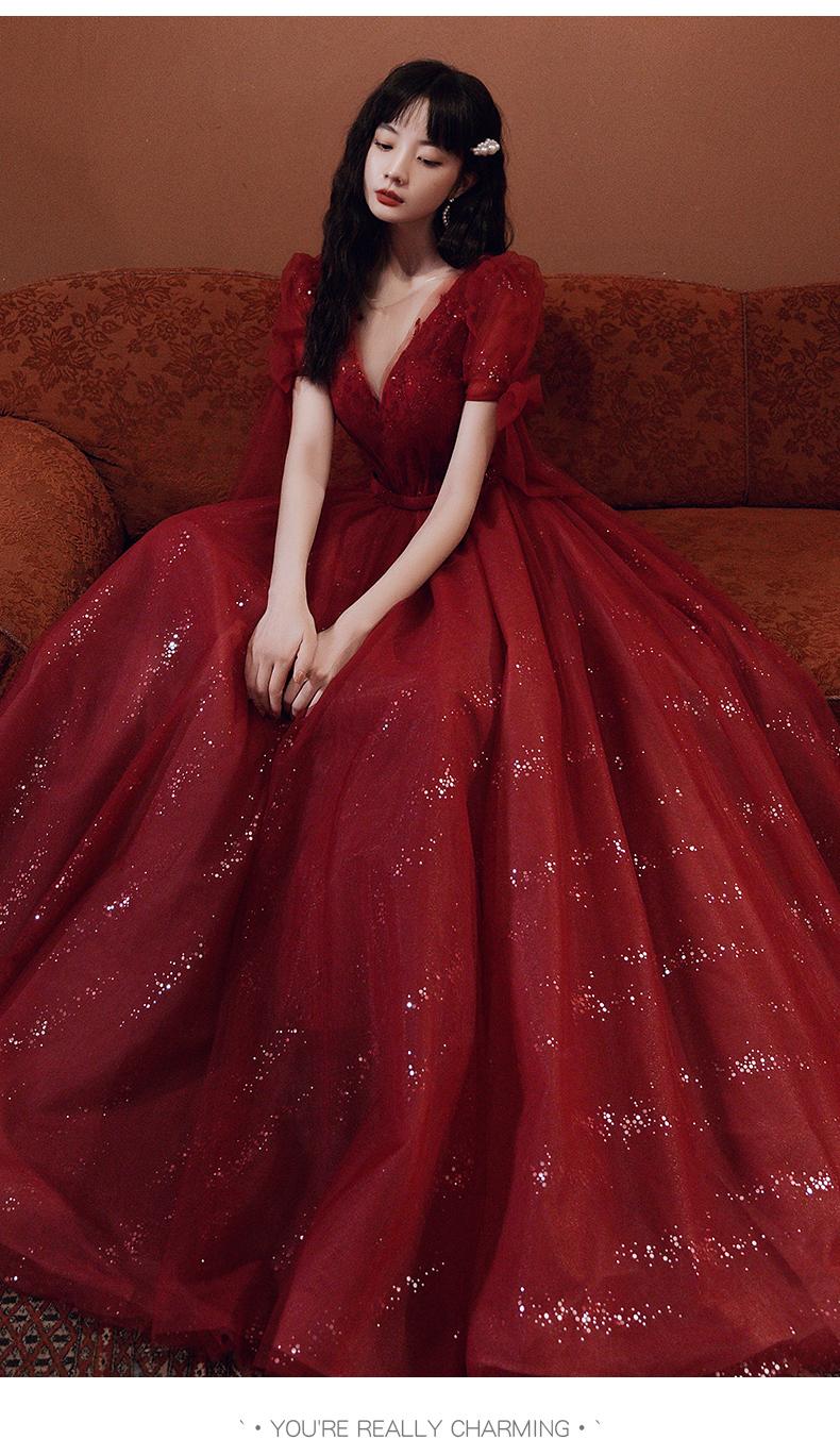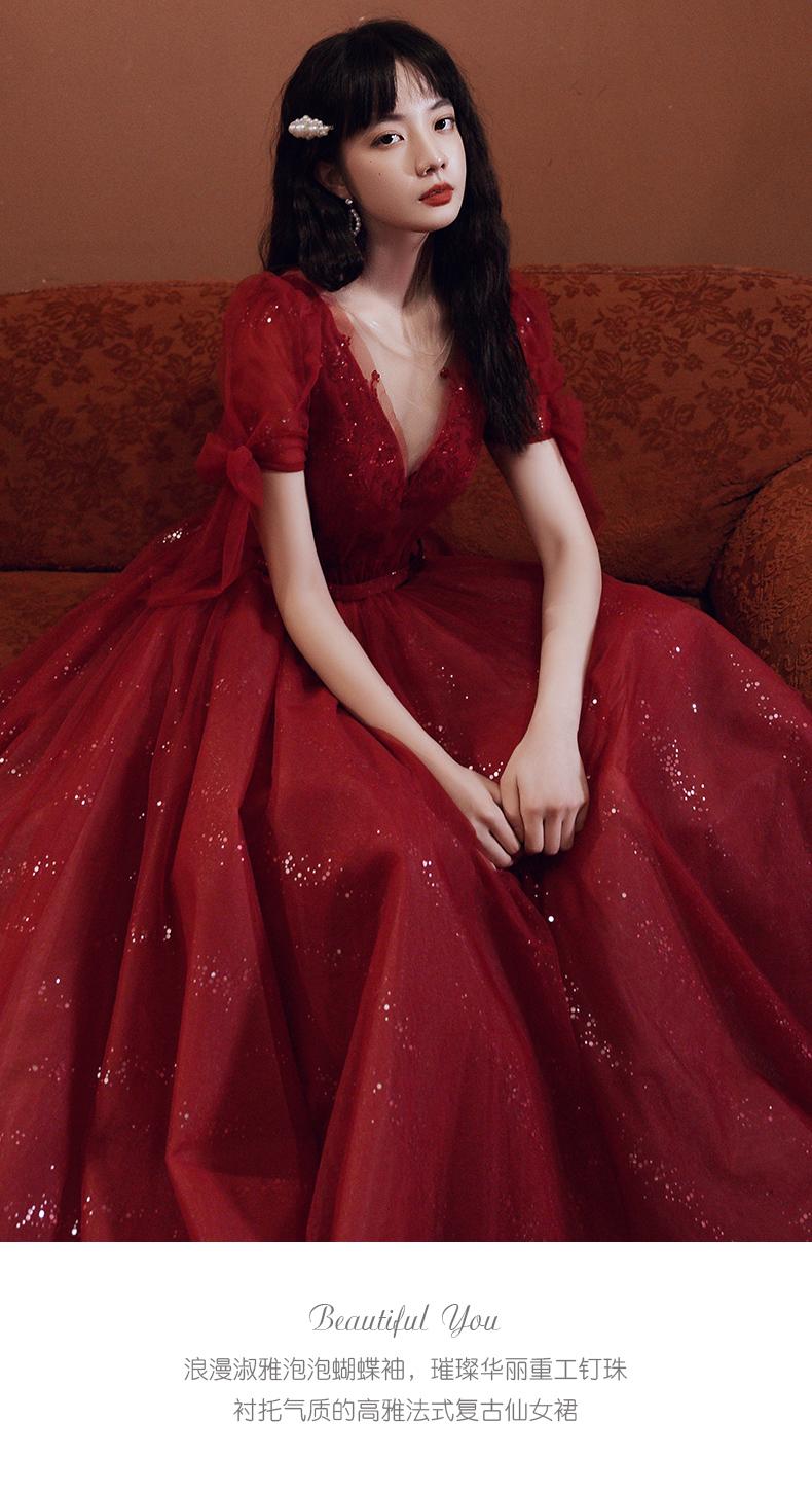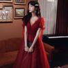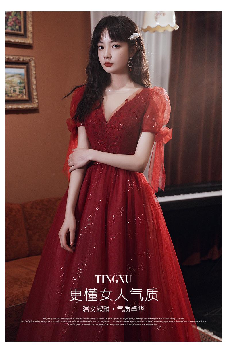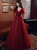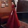 Toast Wear Novia 2025 Nuevo Borgoña Vestido Usable Falda Banquete Temperamento Vestido de Boda Falda de Compromiso