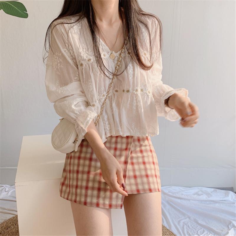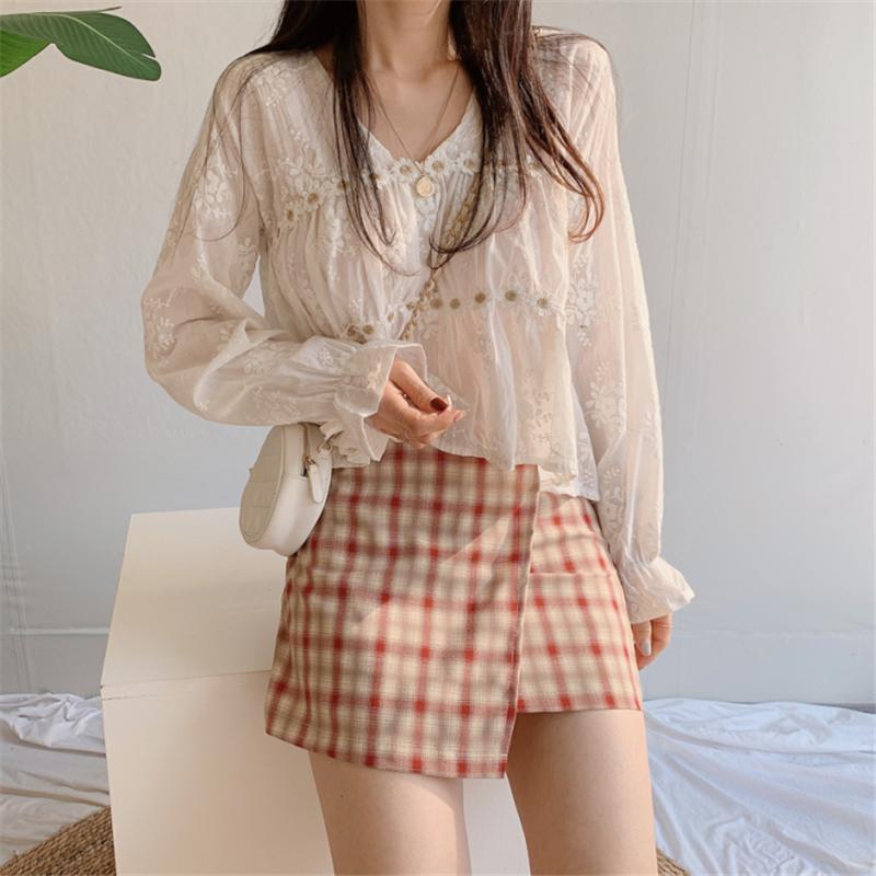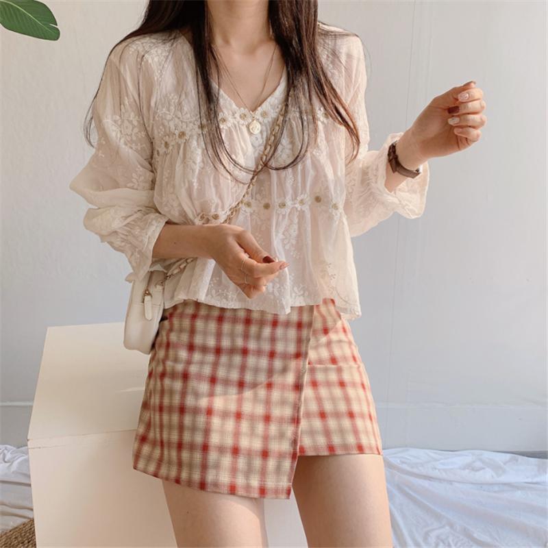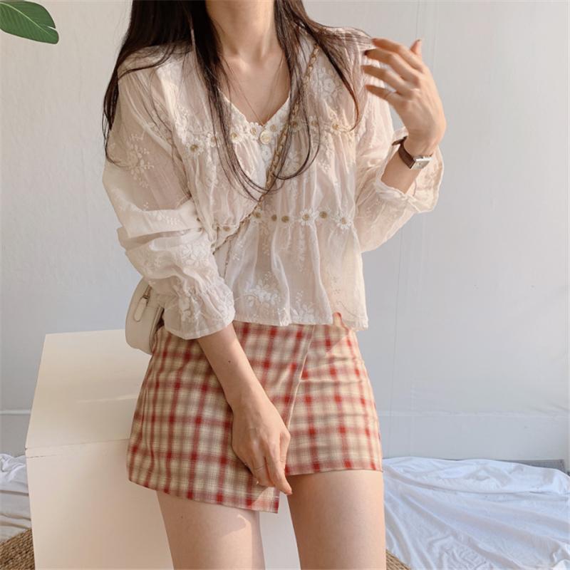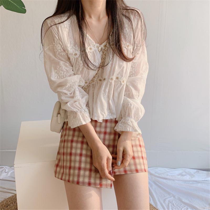 Camisa de protección solar con cuello en V y flores estéreo de estilo coreano chic francés de nicho 2021