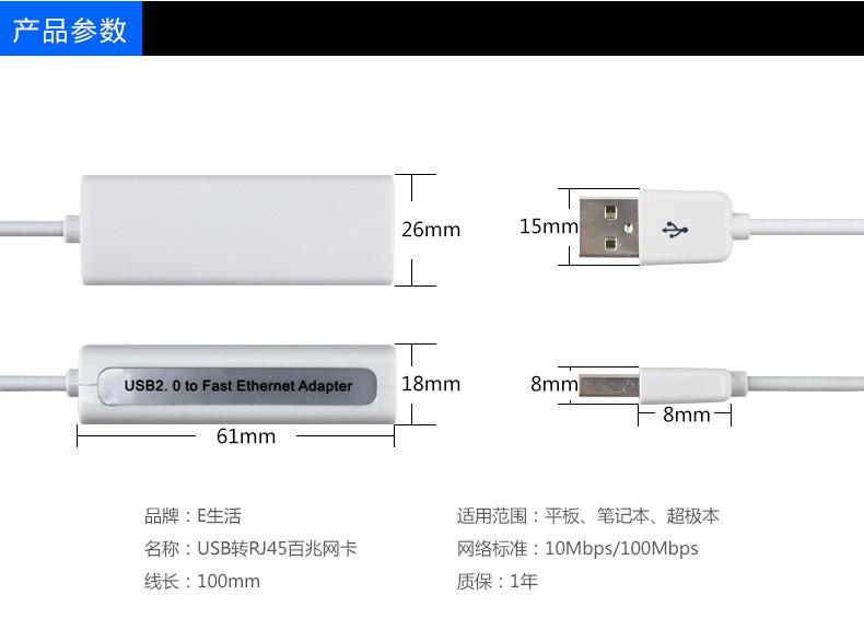USB wired 1.1 network card, USB wired 2.0 network card, USB has 2.0 drive-free network card, USB Nic with 3-po...