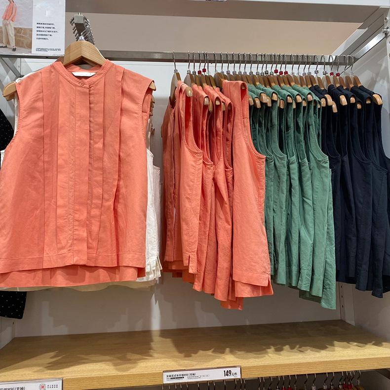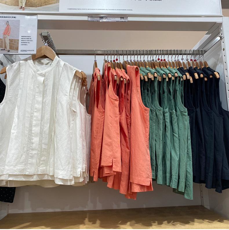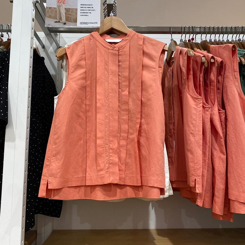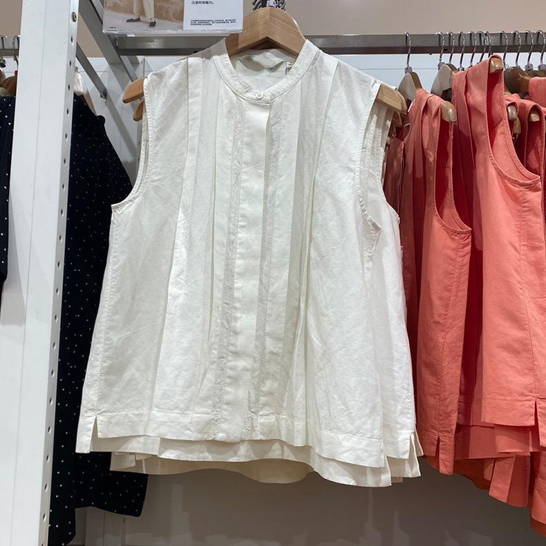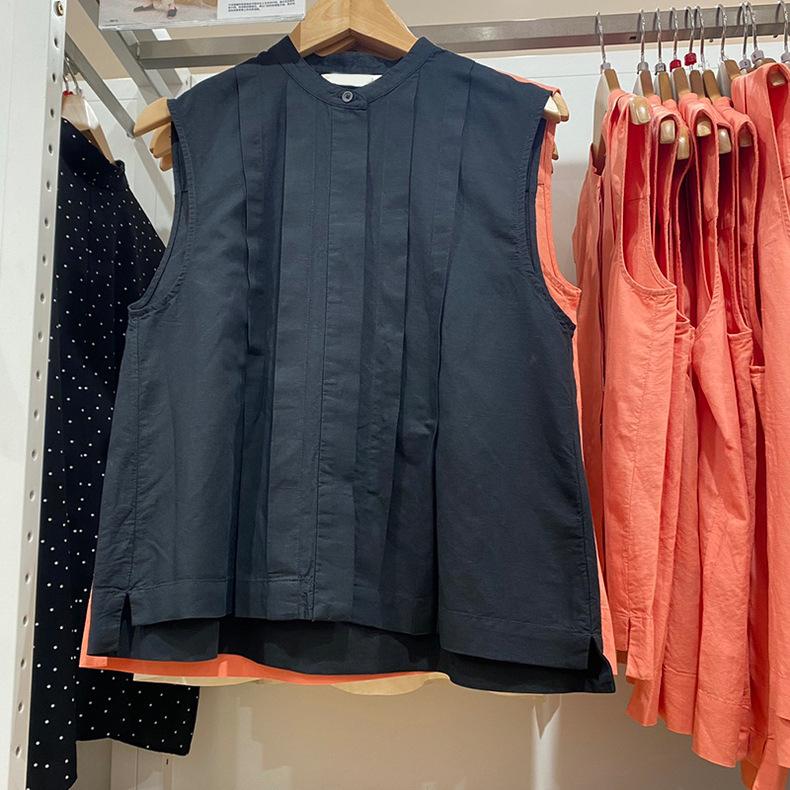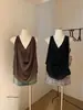 Probador ~ Camisa sin mangas combinada, verano 24, nueva, estilo francés, nicho, parte delantera corta, trasera larga, informal, SY470793