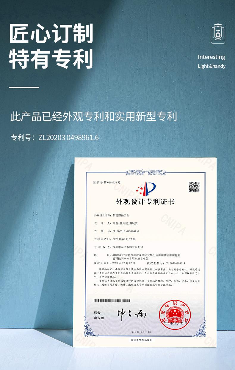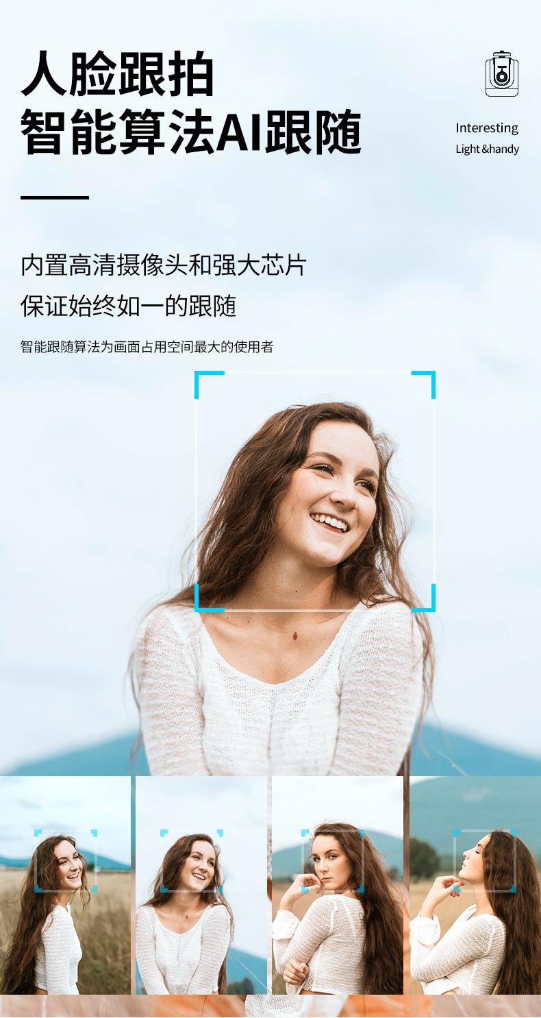 Cámara de Acción Gimbal de Seguimiento Totalmente Inteligente con Reconocimiento Facial de Rotación de 360 Grados Soporte para Transmisión en Vivo para Teléfono Móvil Seguimiento Automático