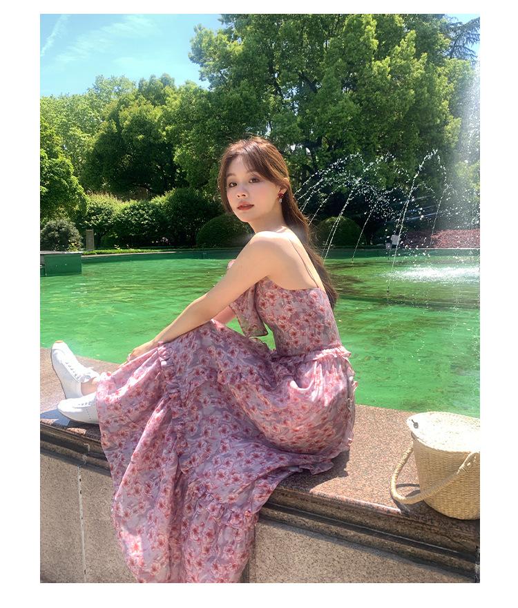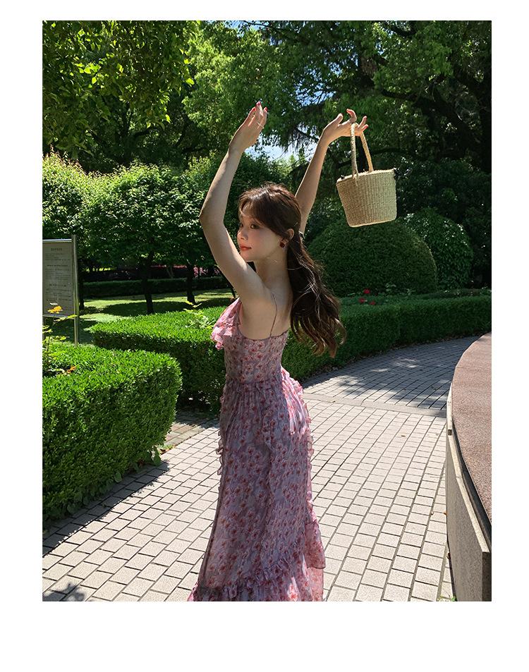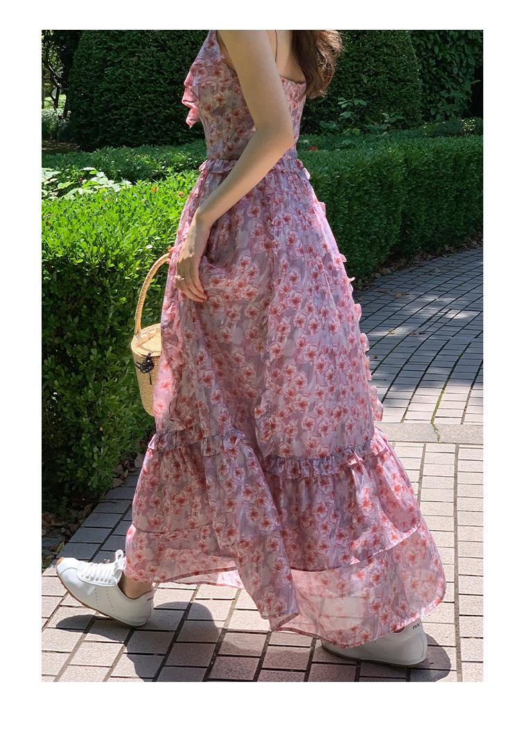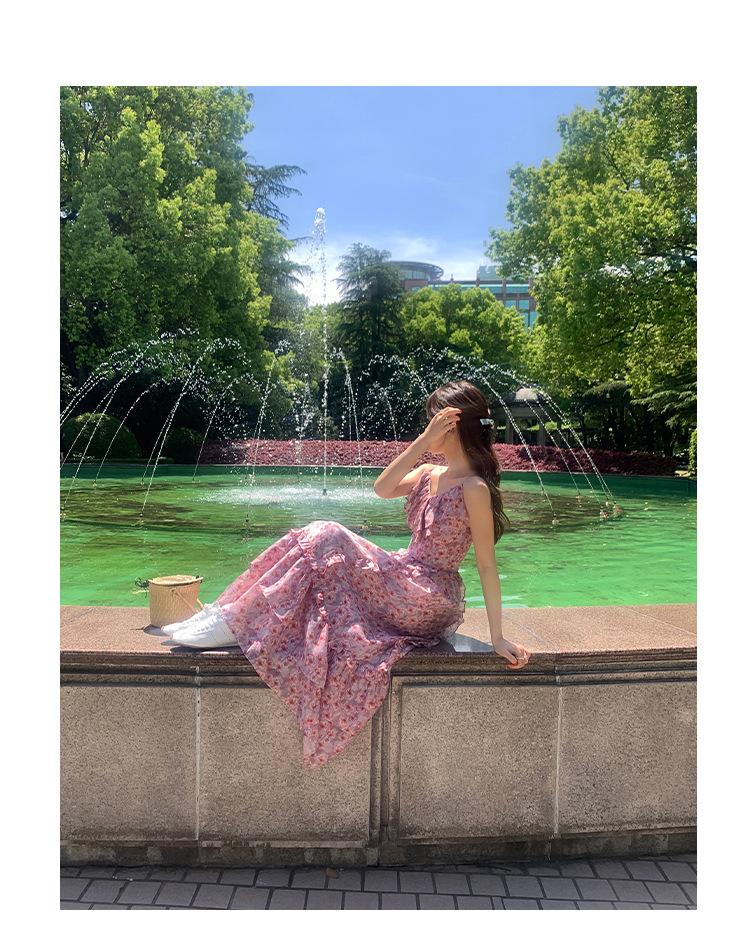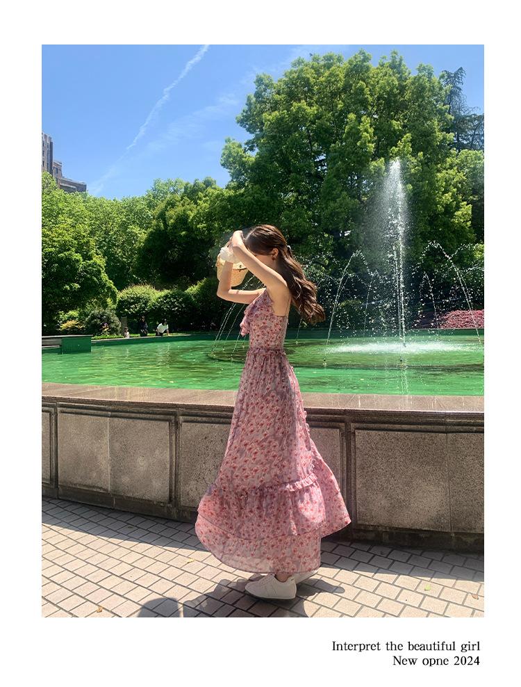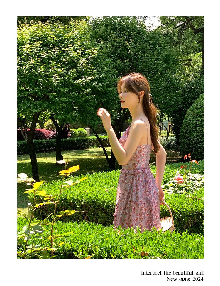 Interpretación de la Belleza Newopen 2024 Verano Hora del Té Francés Hermoso Delgado Retro Floral Vestido de Tirantes S1031
