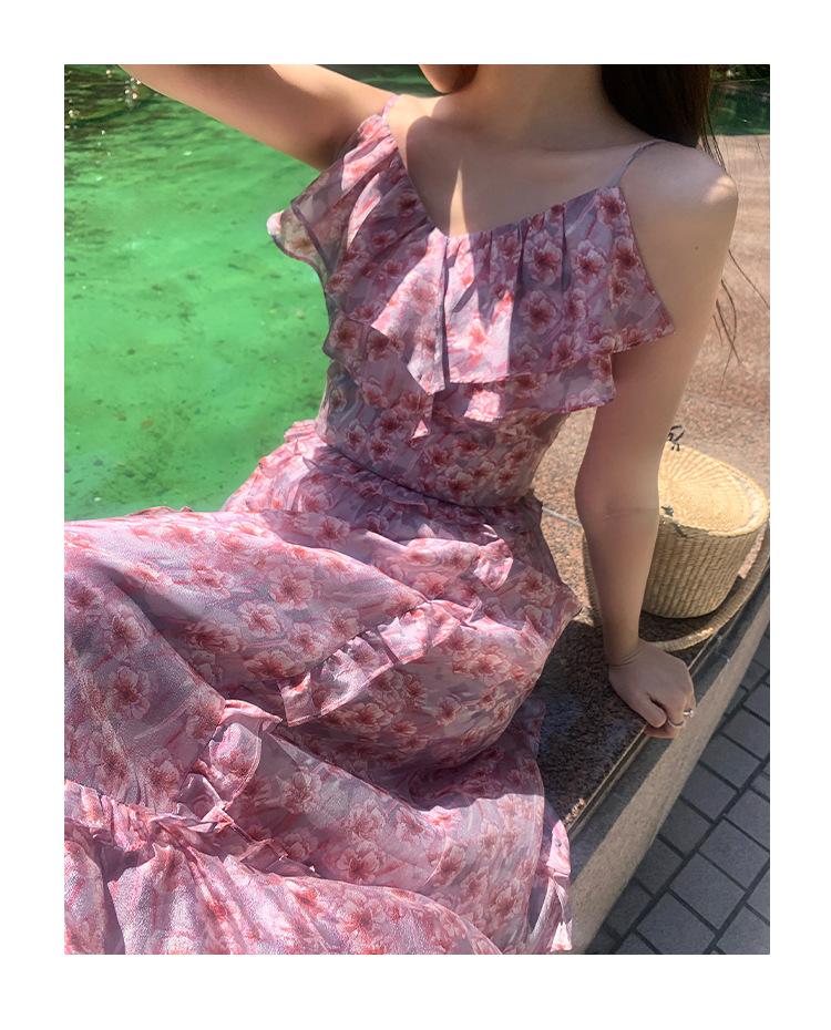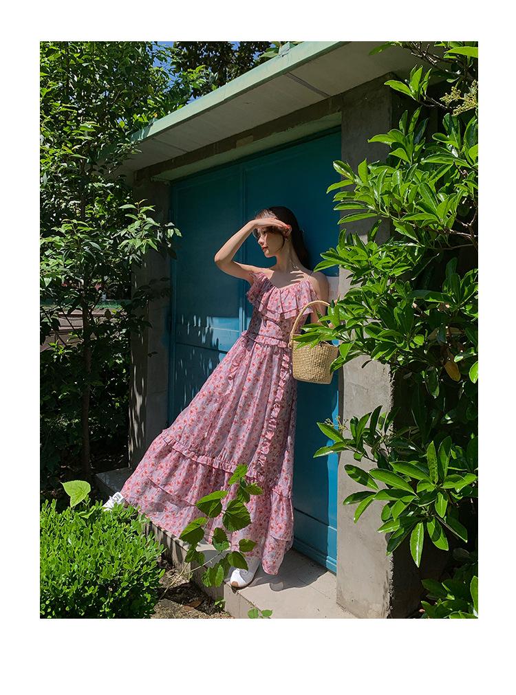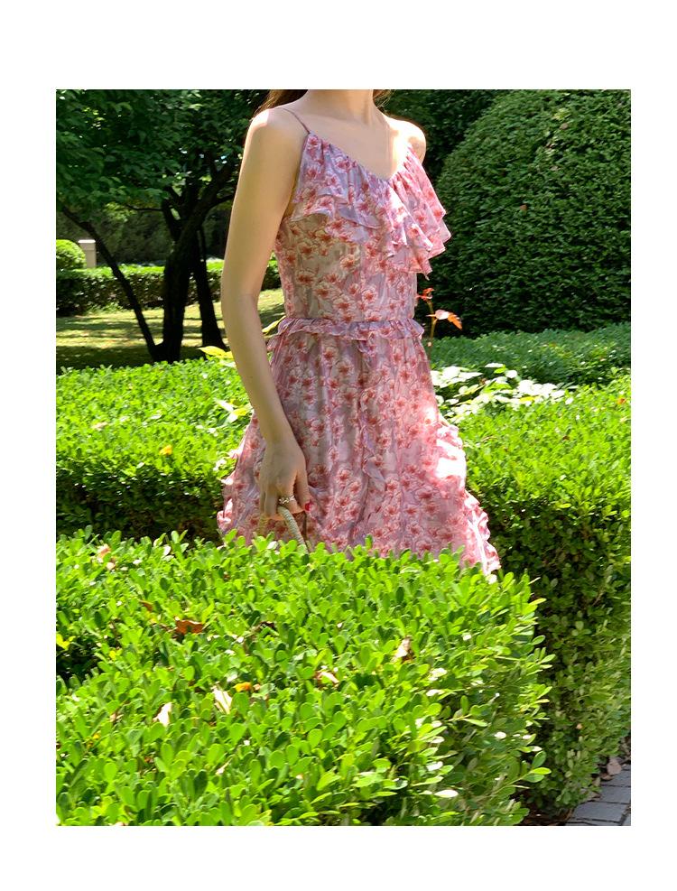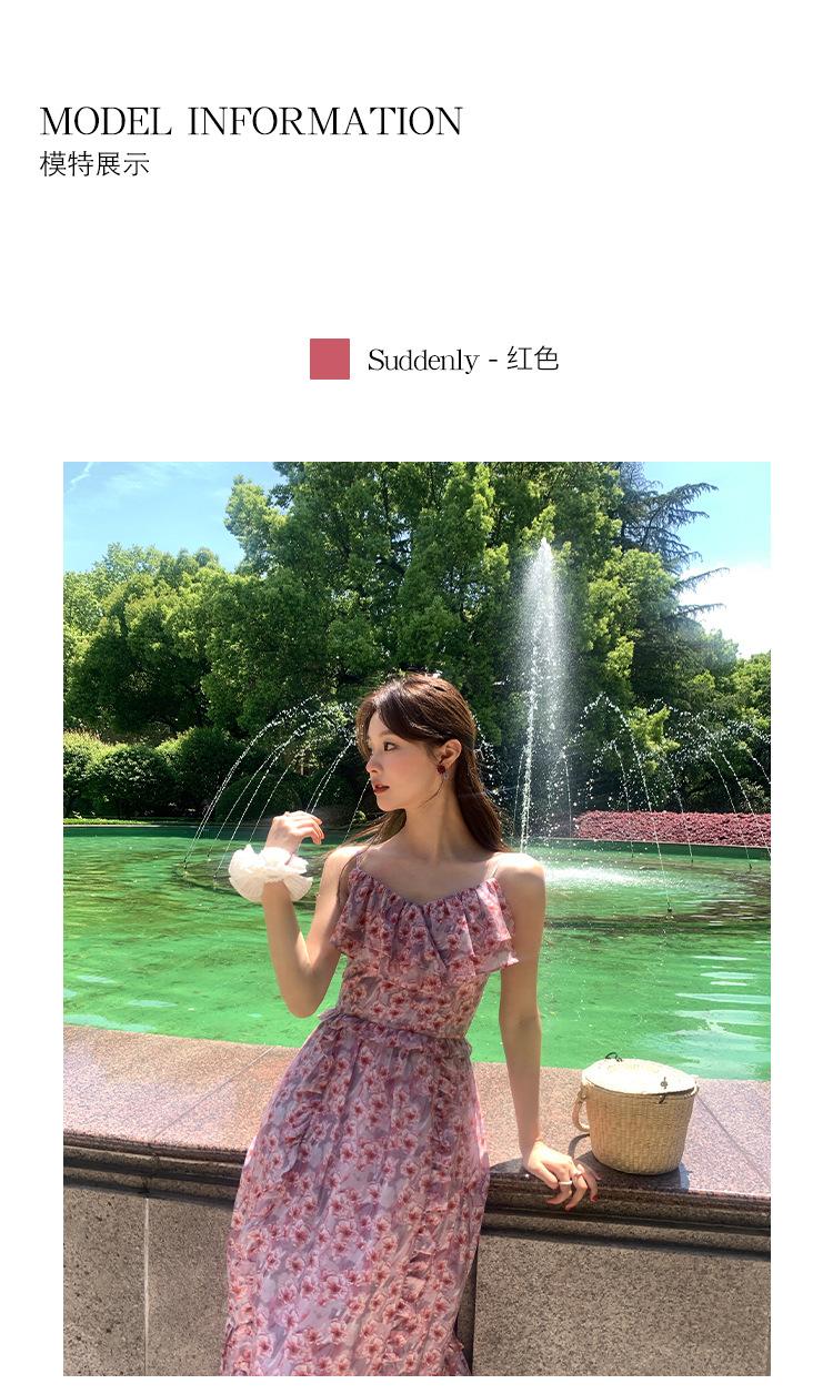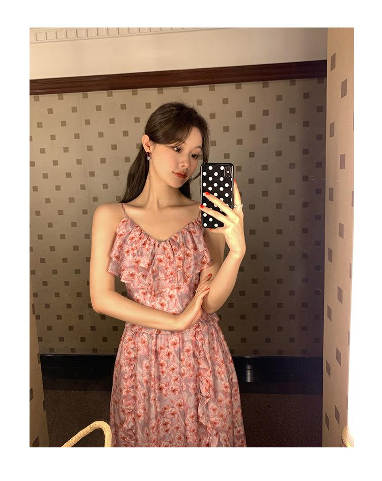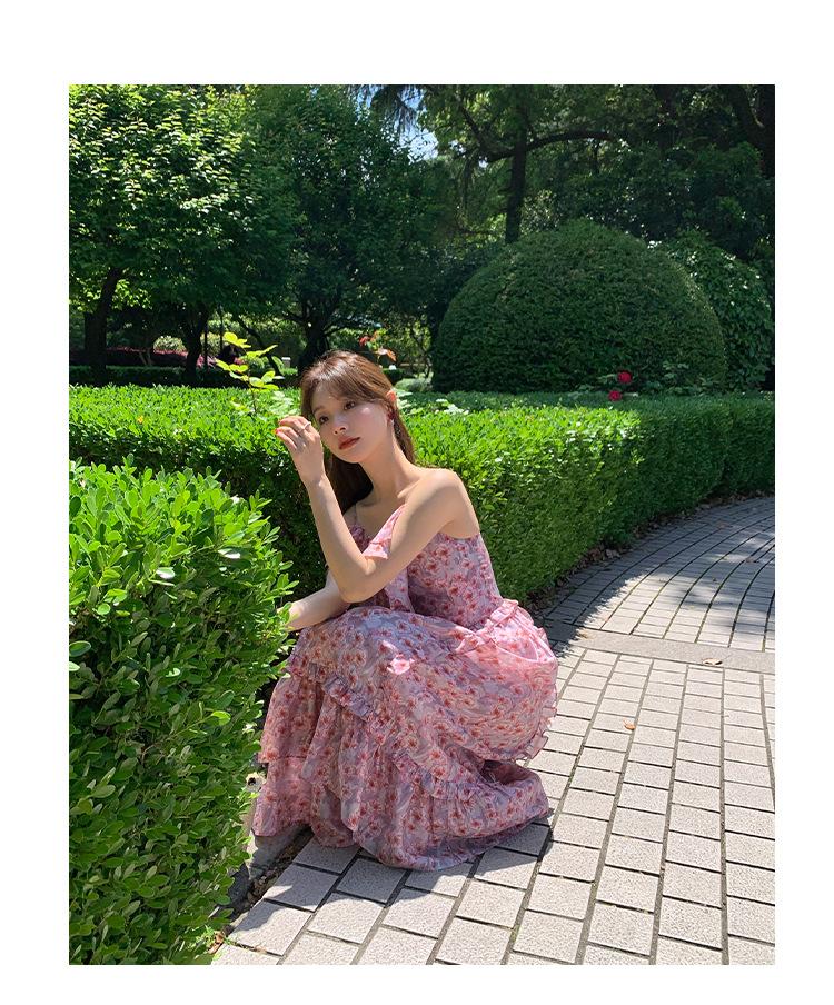 Interpretación de la Belleza Newopen 2024 Verano Hora del Té Francés Hermoso Delgado Retro Floral Vestido de Tirantes S1031
