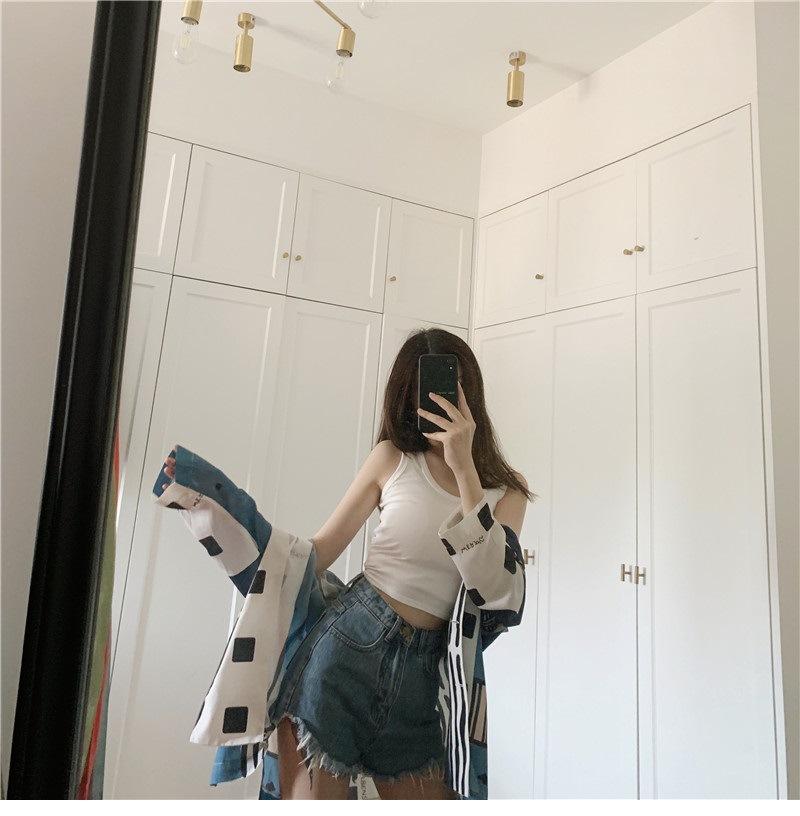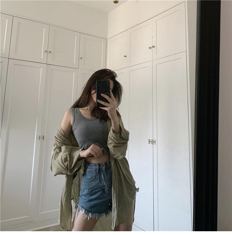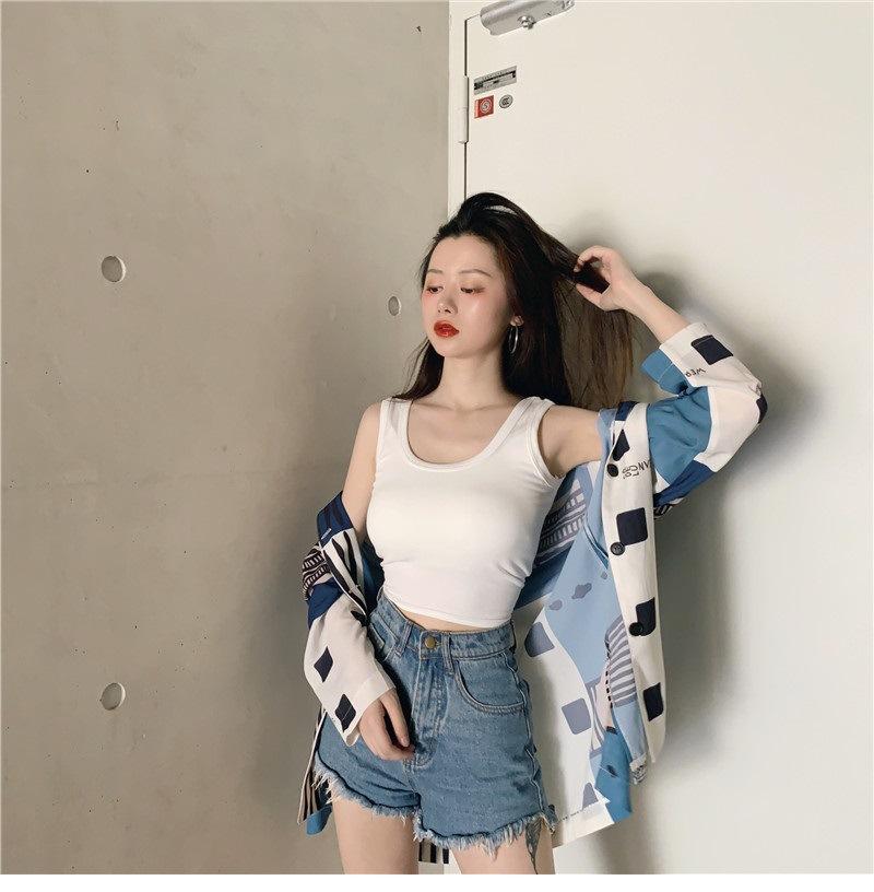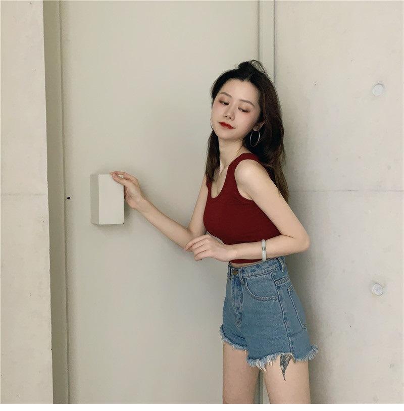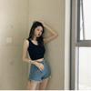 Camisola de Algodón para Mujer Verano 2023 Corta Estilo Bm Fondo Verano Ropa Exterior Ombligo Descubierto Celebridad de Internet Sexy Sin Mangas Estudiante