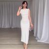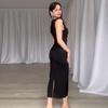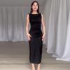 Verano 2024 Nuevo Europeo y Americano Transfronterizo Amazon Transfronterizo Color Sólido Diseño Plisado Sin Mangas Abertura Sexy Falda de Cadera