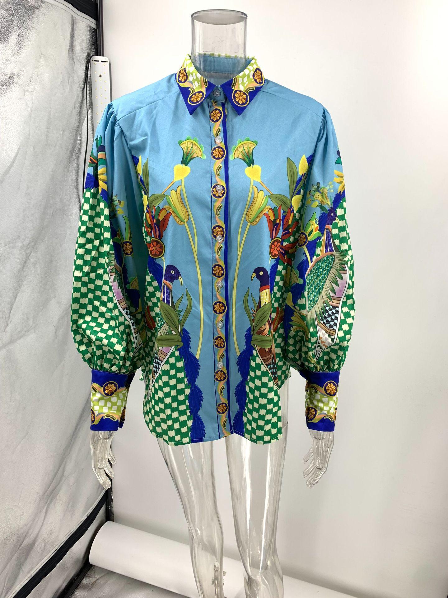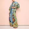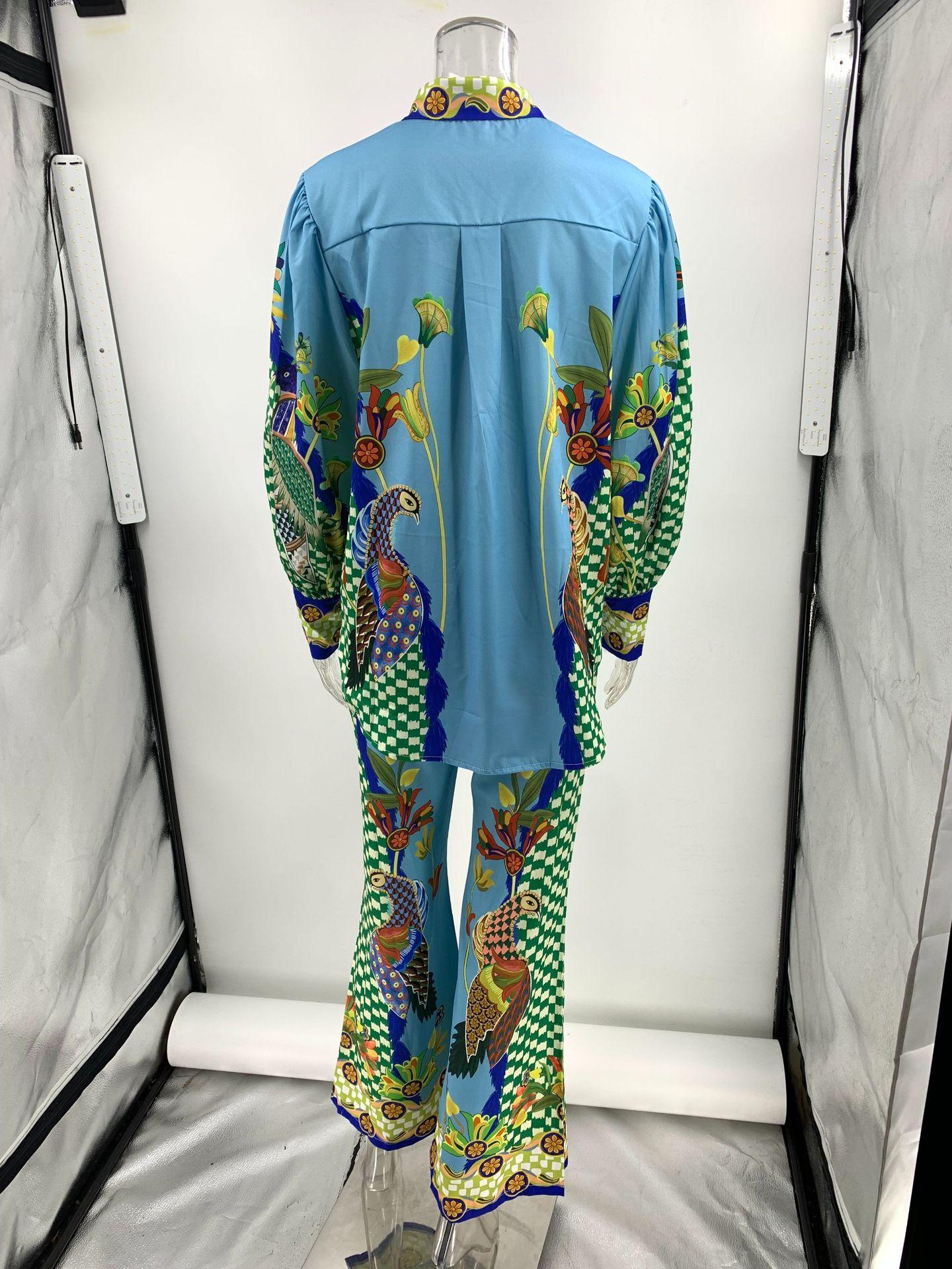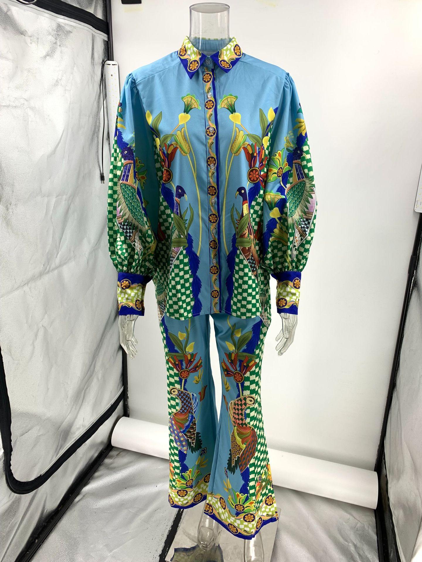 Traje de dos piezas de encaje festivo de manga abullonada estampada personalizada de moda de estación independiente de otoño 2023 europea y americana transfronteriza para mujer
