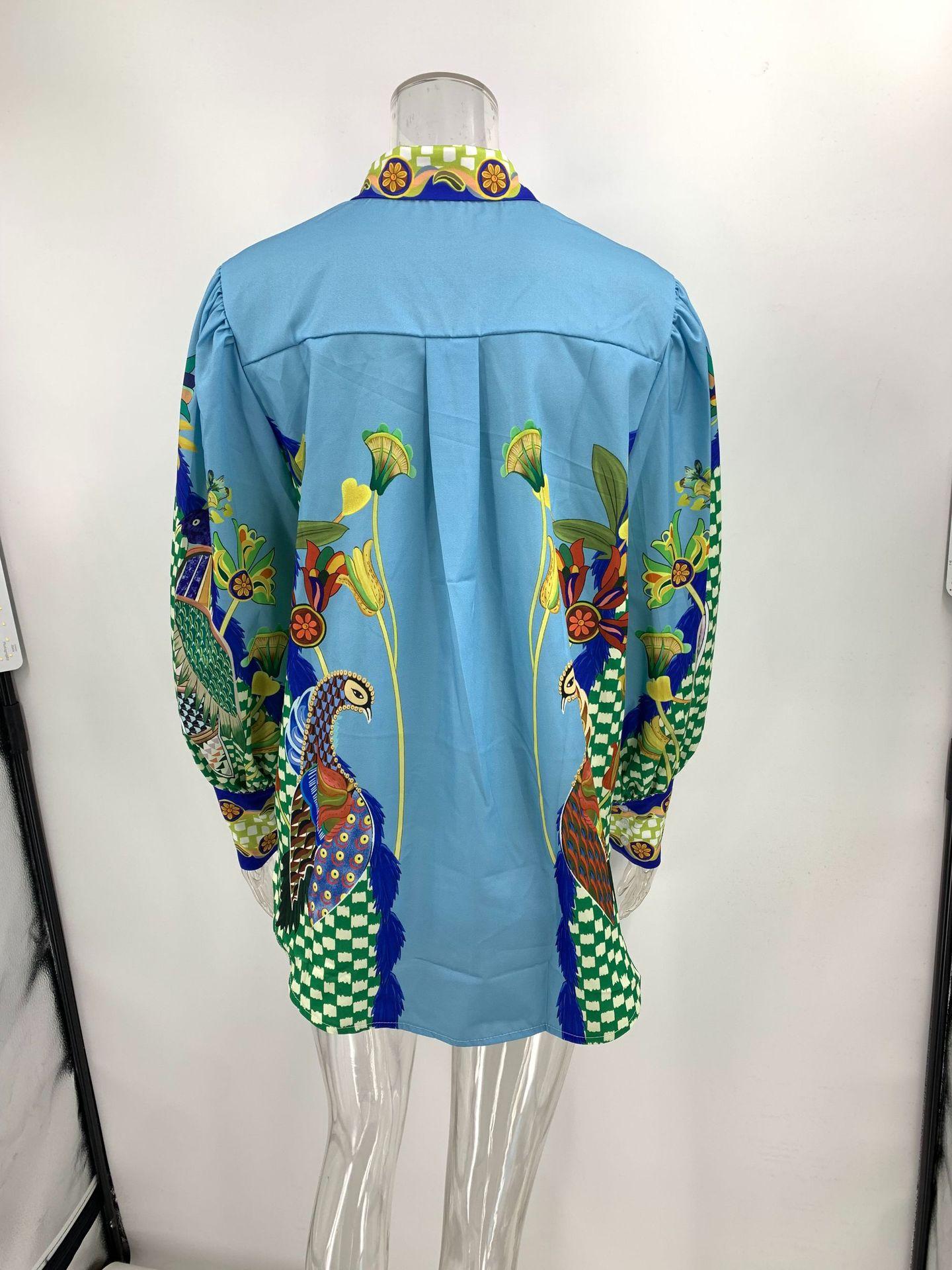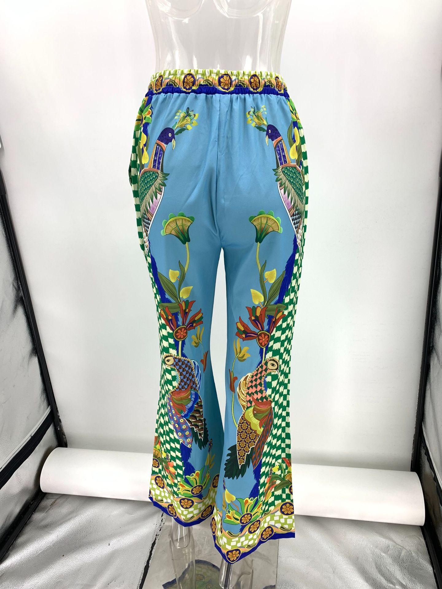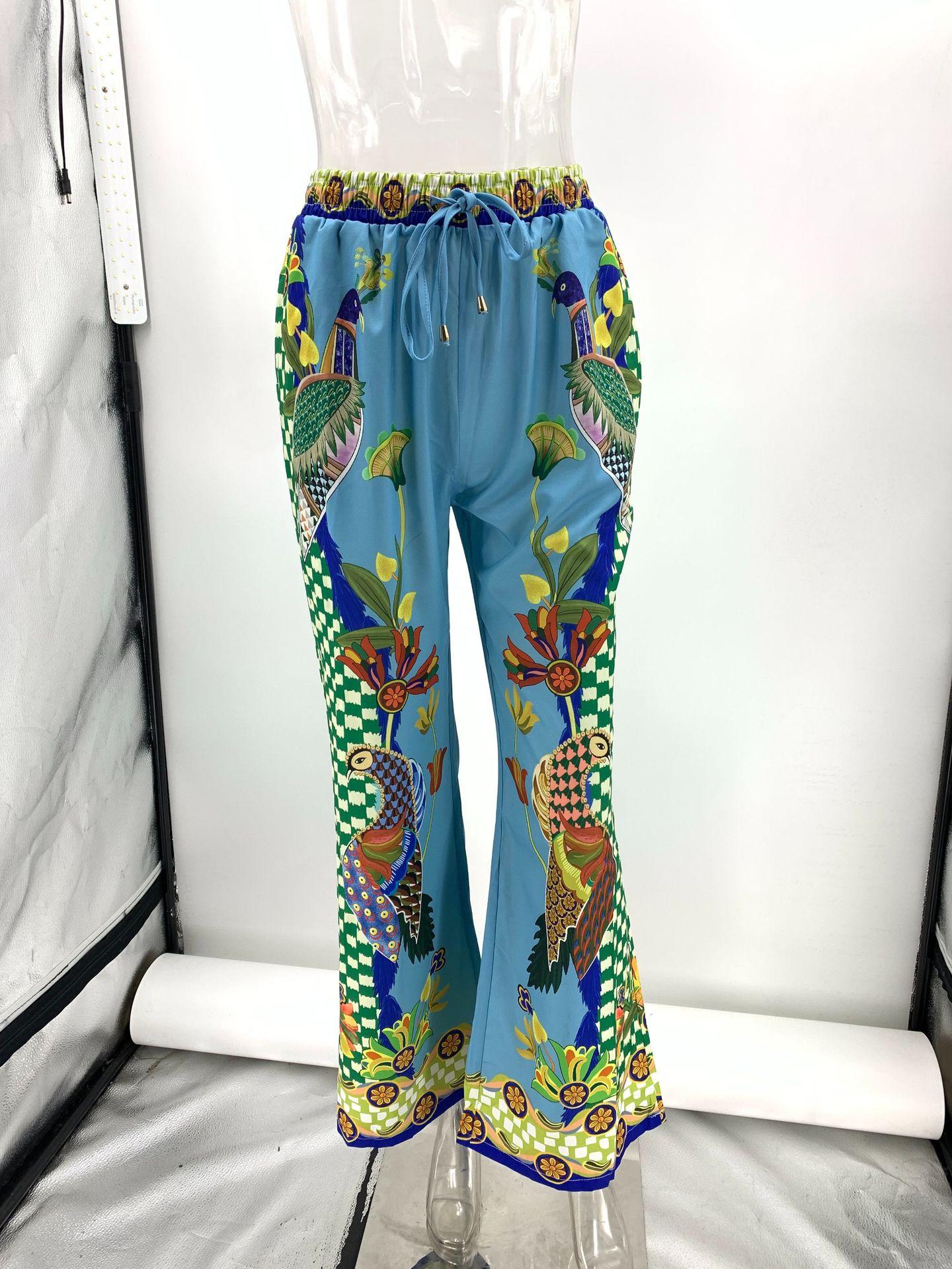 Traje de dos piezas de encaje festivo de manga abullonada estampada personalizada de moda de estación independiente de otoño 2023 europea y americana transfronteriza para mujer