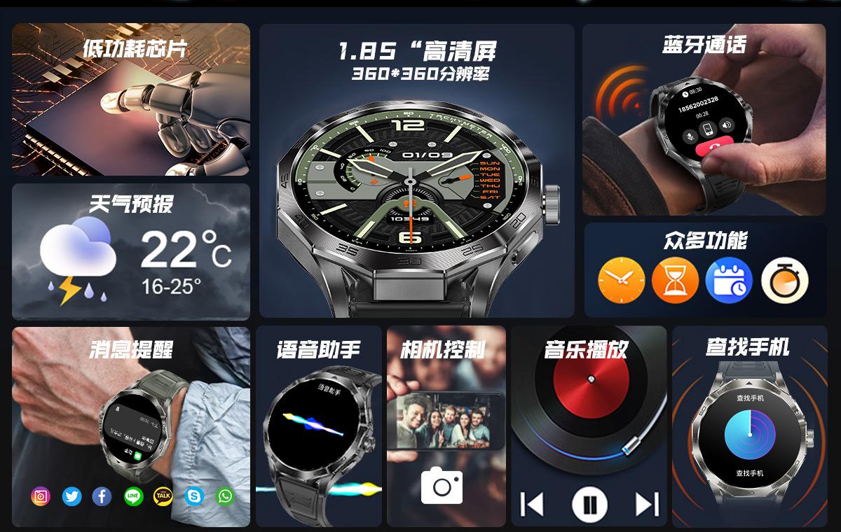 | La función principal(Función principal) | Conexión Bluetooth de un solo toque, recordatorio de llamada entrante, recordatorio de SMS, recordatorio de WeChat,QQRecordatorio de pulsación, registro de ejercicios (conteo de pasos, kilometraje, etc.), mapa de seguimiento, monitoreo del sueño, recordatorio de sedentarismo, cálculo de calorías, cronómetro, recordatorio de batería baja, levante la mano para iluminar la pantalla, carga rápidaConsumo de energía ultrabajo, frecuencia cardíaca, presión arterial, vibración, modo deportivo.,Fotografía remota, control de música, alarma inteligente, pronóstico del tiempo, pantalla grande de alta definición, cambio de múltiples esferas de reloj, WeChat Sports.llamar | |