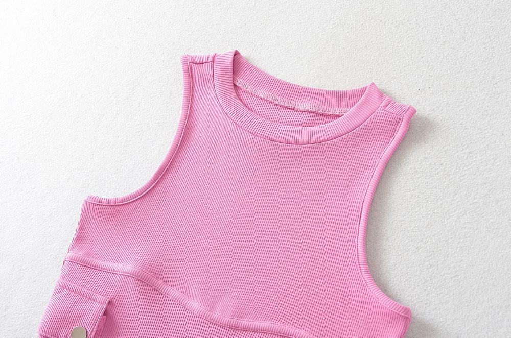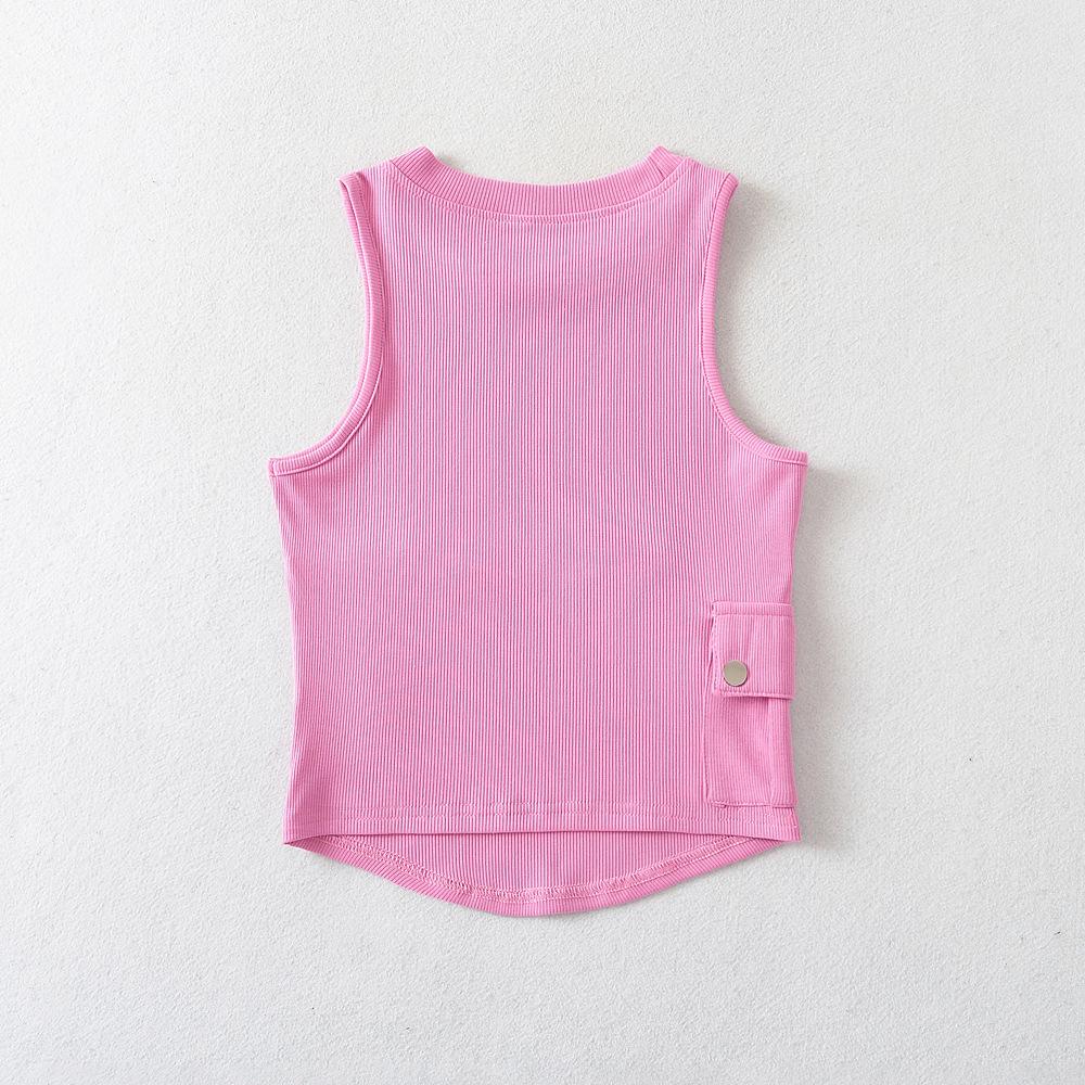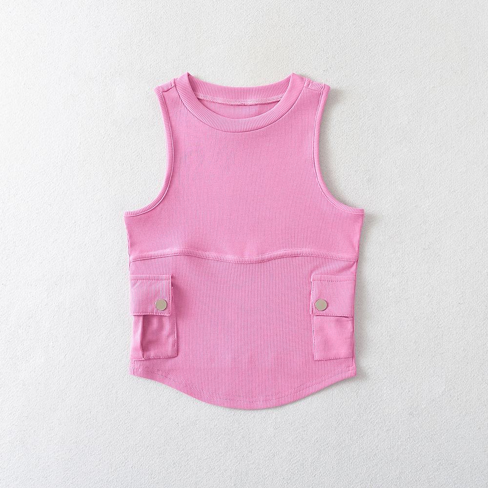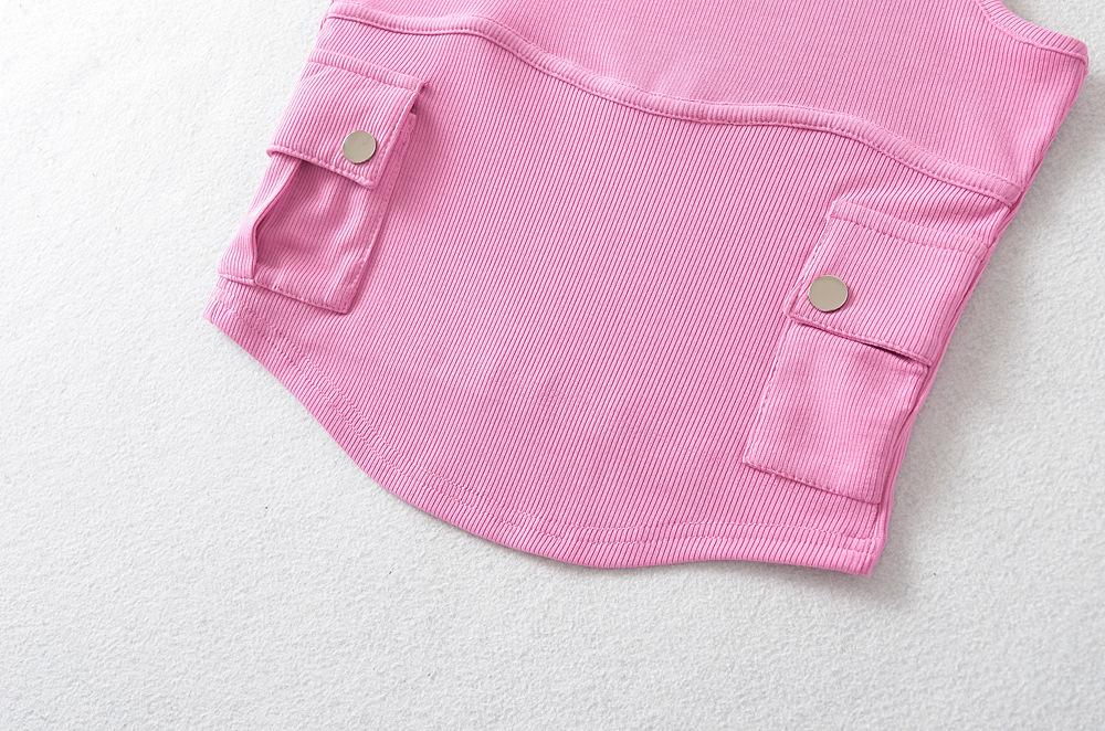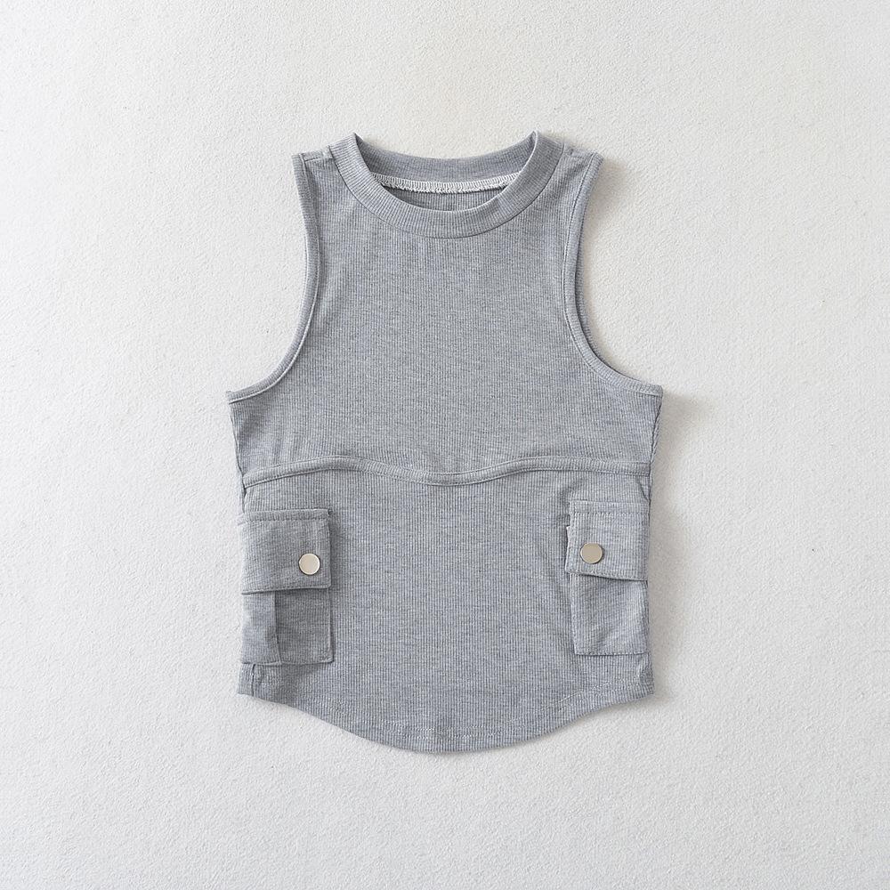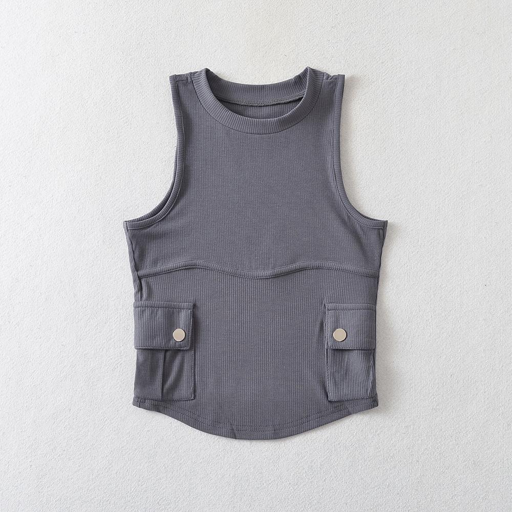 Chaleco corto sexy con diseño de estilo europeo y americano de verano con bolsillos en forma de I para mujer, top sin mangas con tirantes y todo tipo de combinaciones.