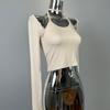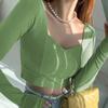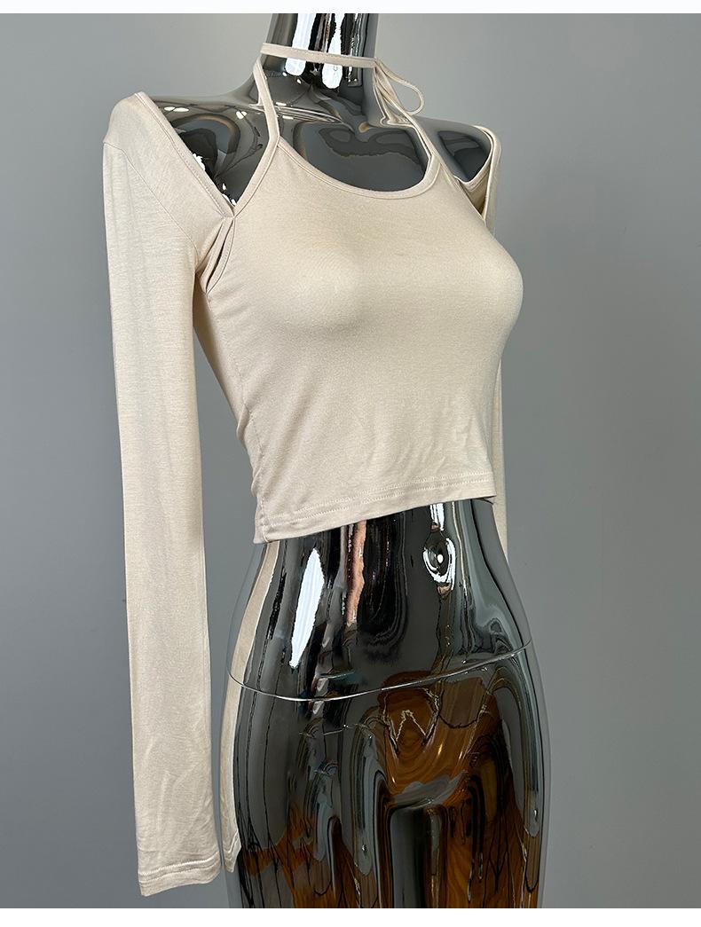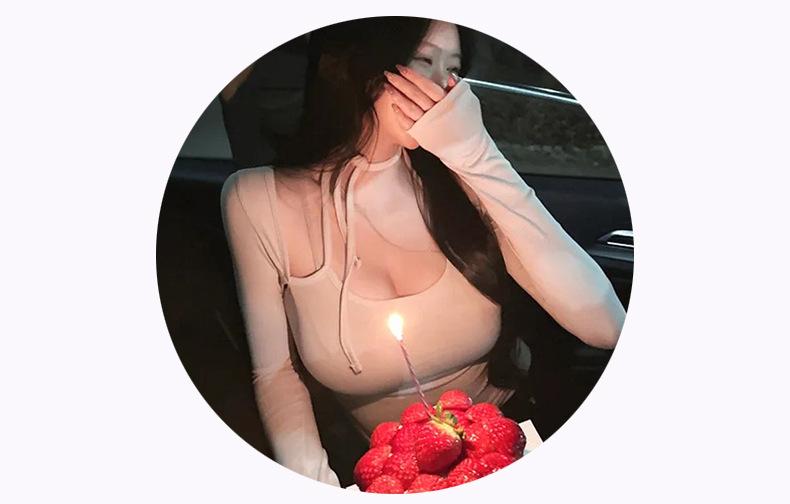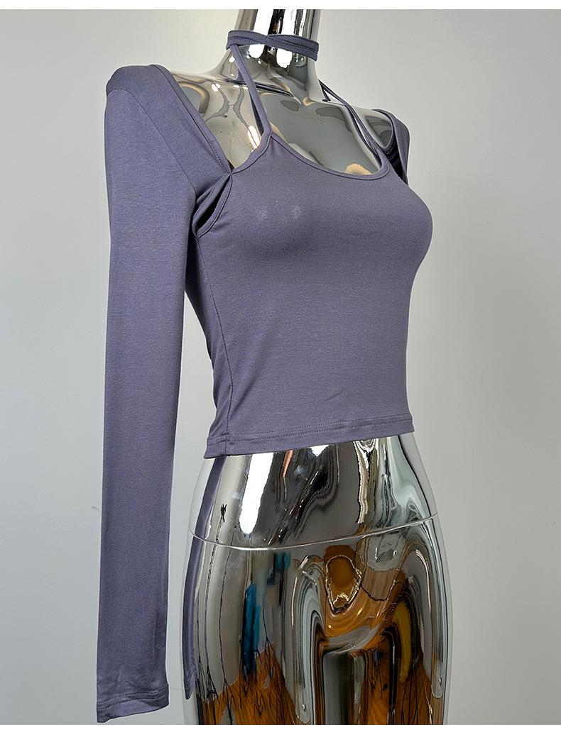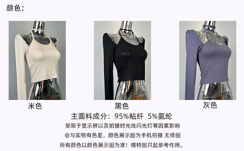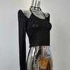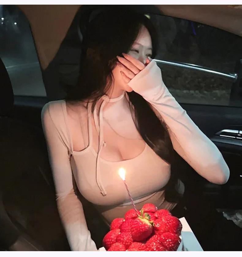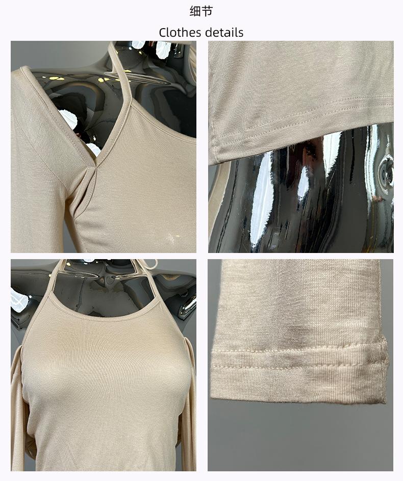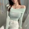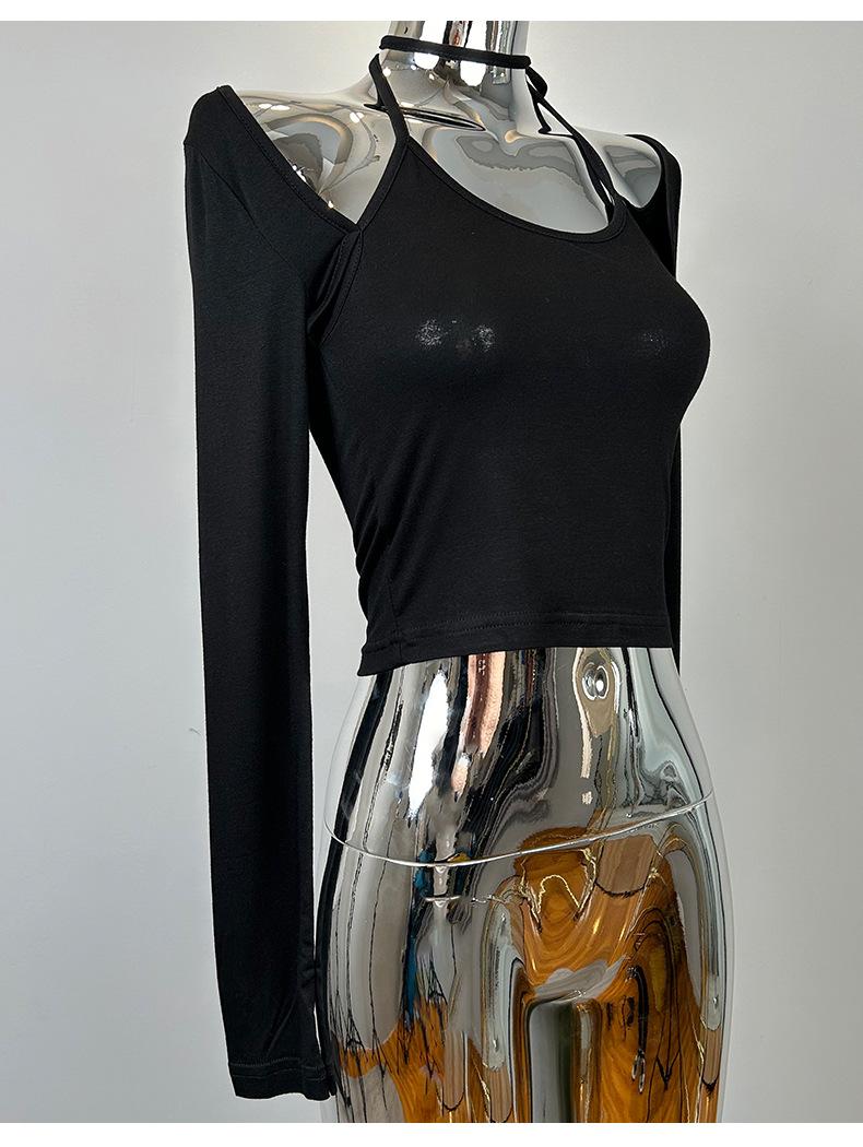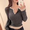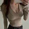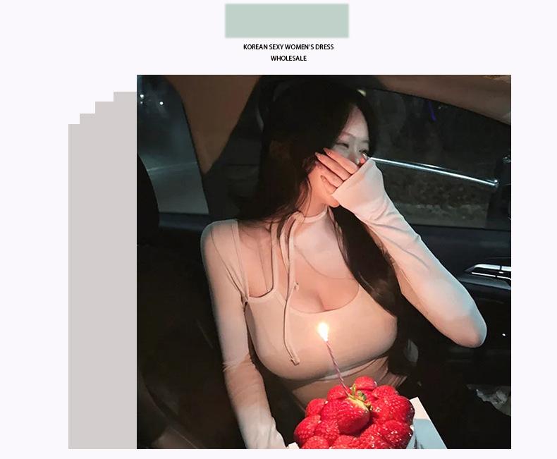 Coreano del Sur Dongdaemun Nuevo Sexy Correa de Cuello Pecho Grande ~ Femenina Ajustada Manga Larga Camiseta
