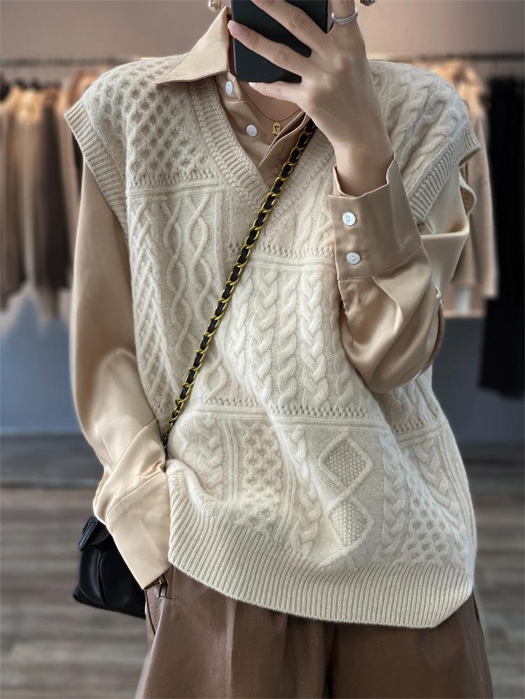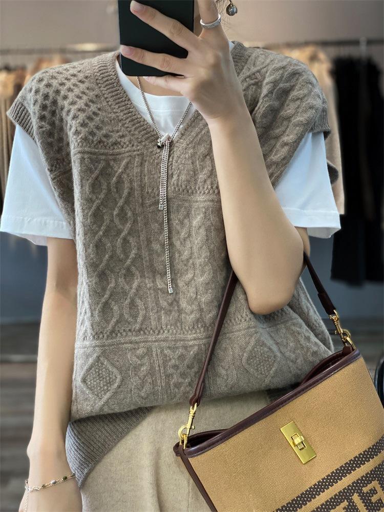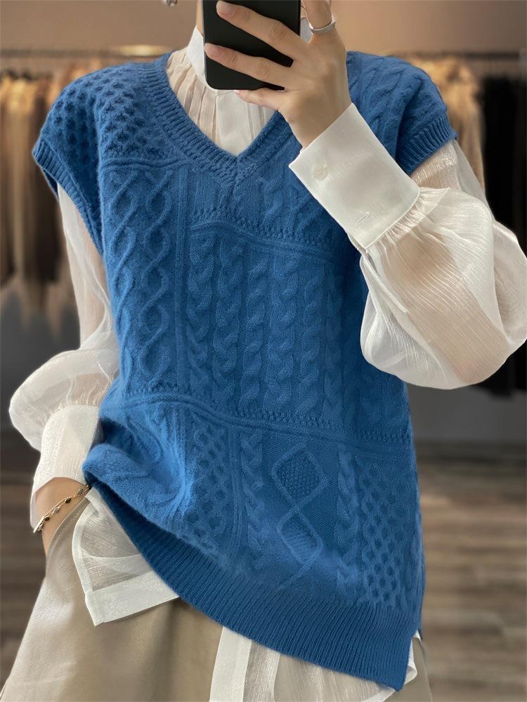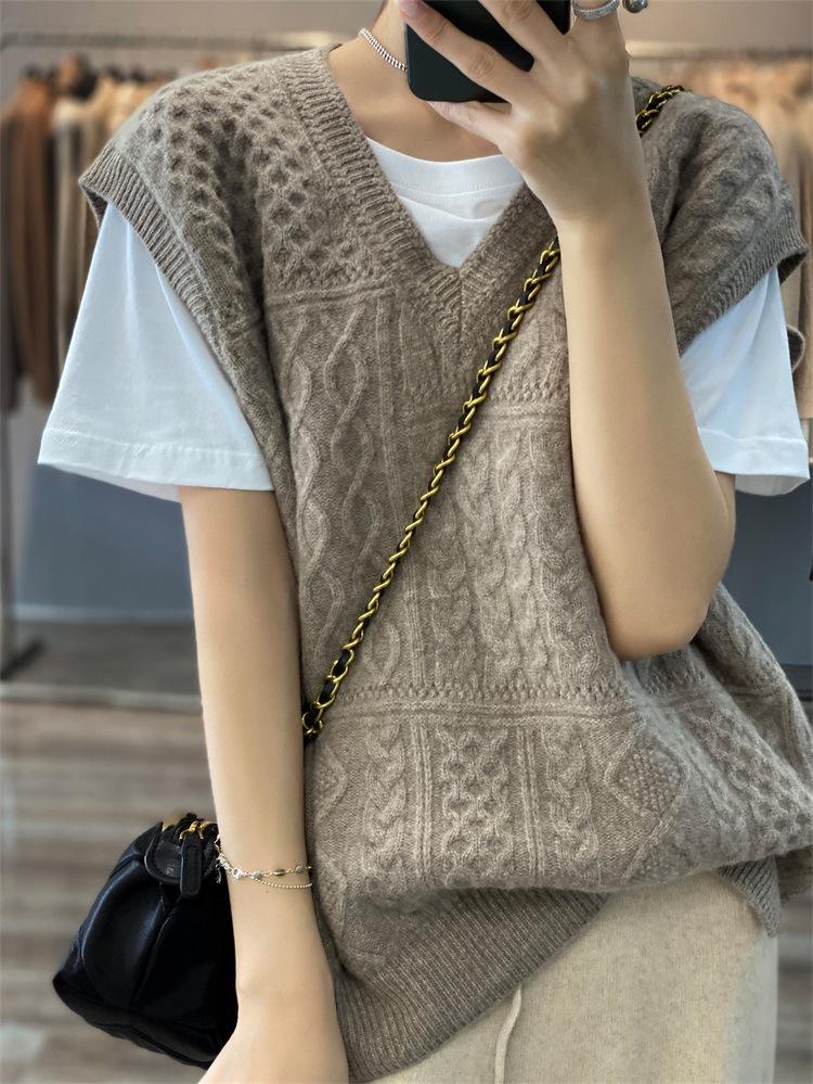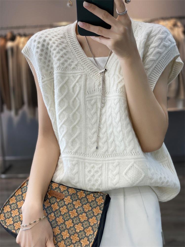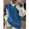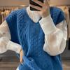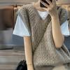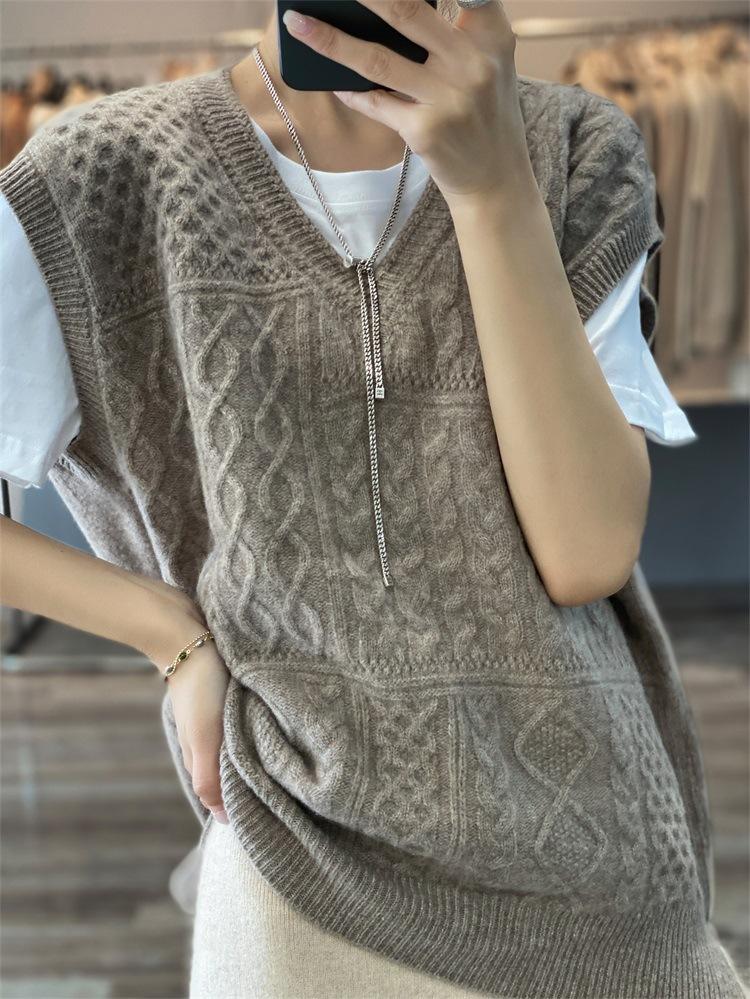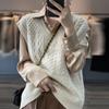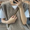 Chaleco Holgado de Lana Pura Tejido con Cuello en V, Versátil Ropa Exterior sin Mangas de Color Sólido, Top de Punto Trenzado para Mujer, Versión Gruesa