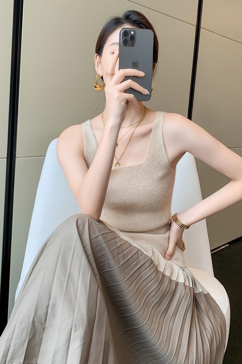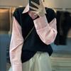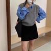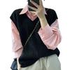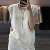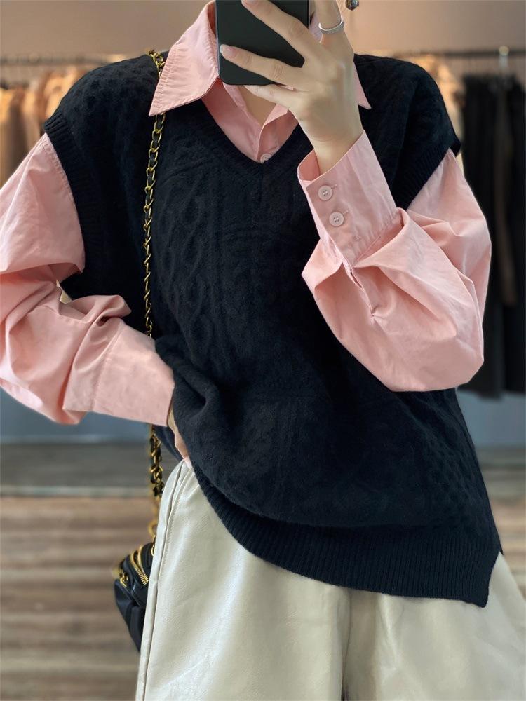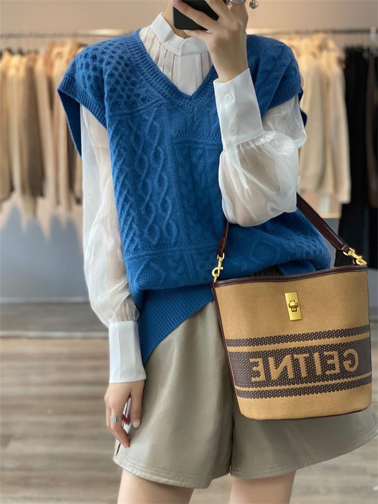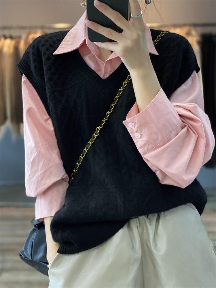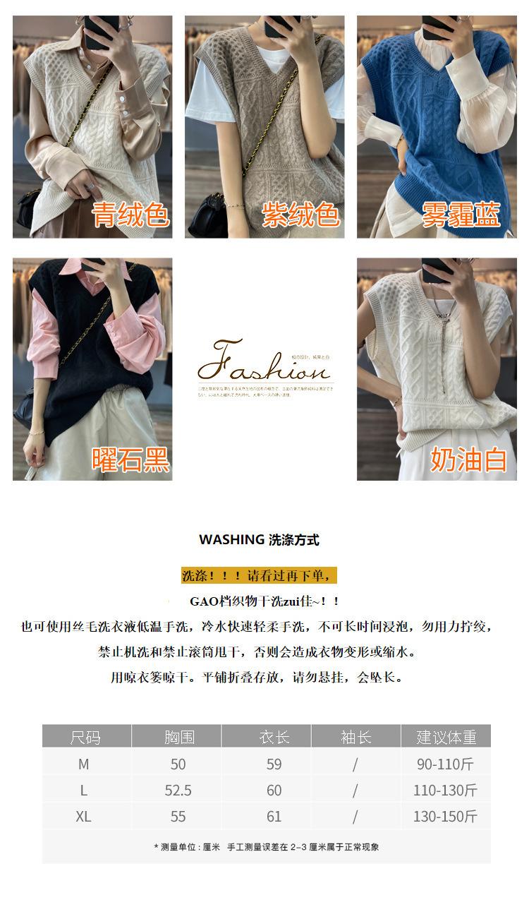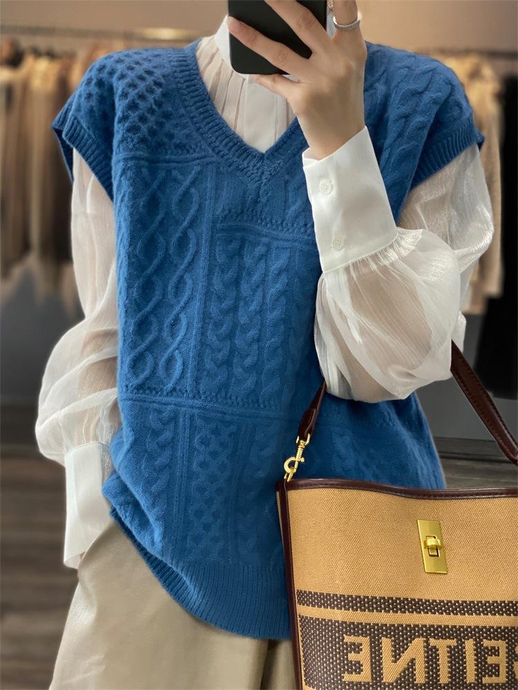 Chaleco Holgado de Lana Pura Tejido con Cuello en V, Versátil Ropa Exterior sin Mangas de Color Sólido, Top de Punto Trenzado para Mujer, Versión Gruesa