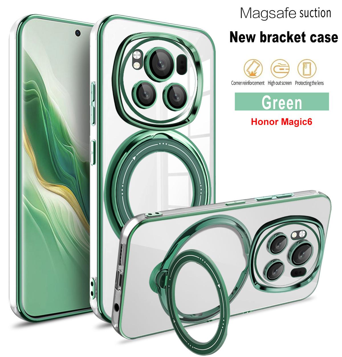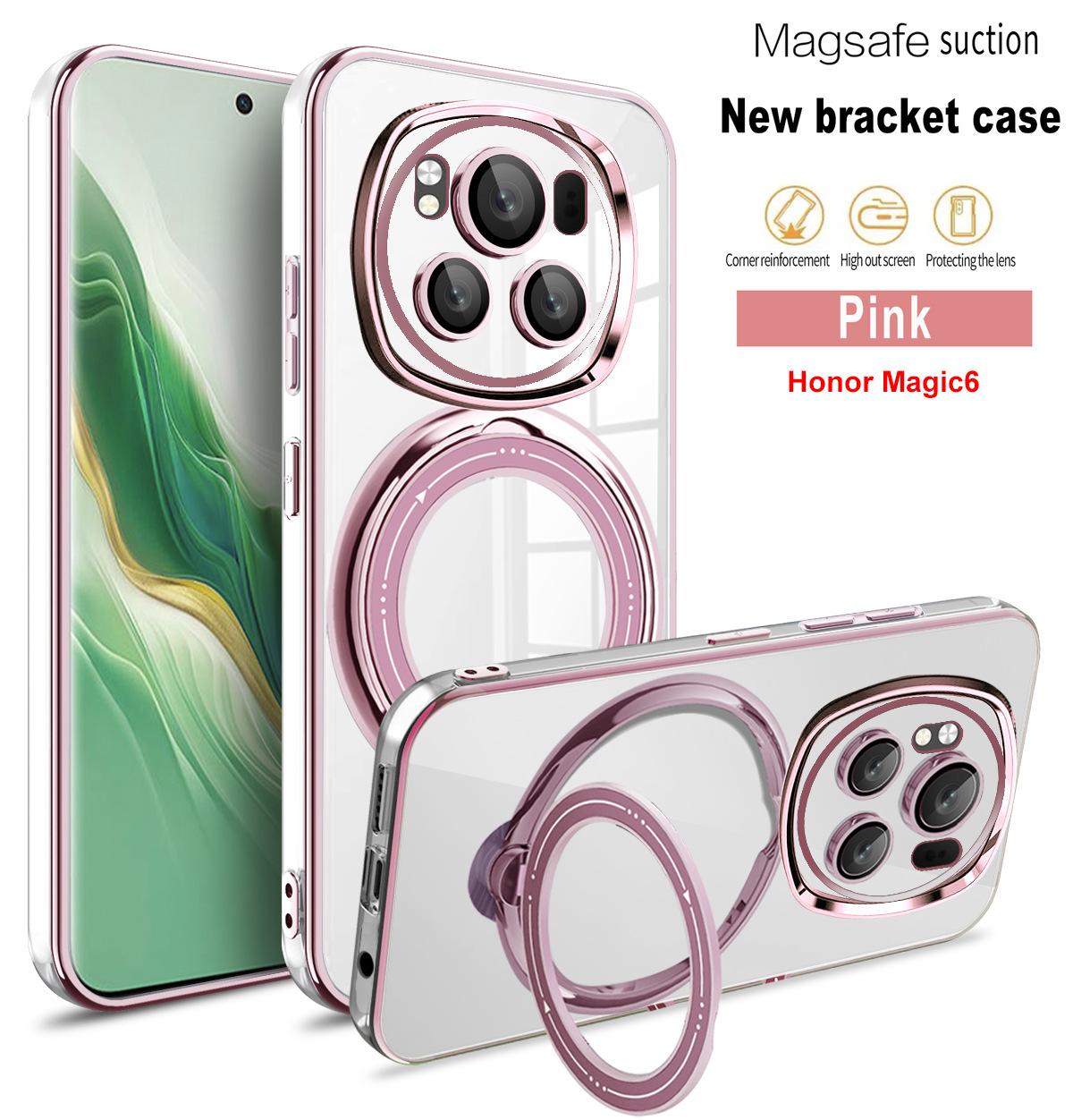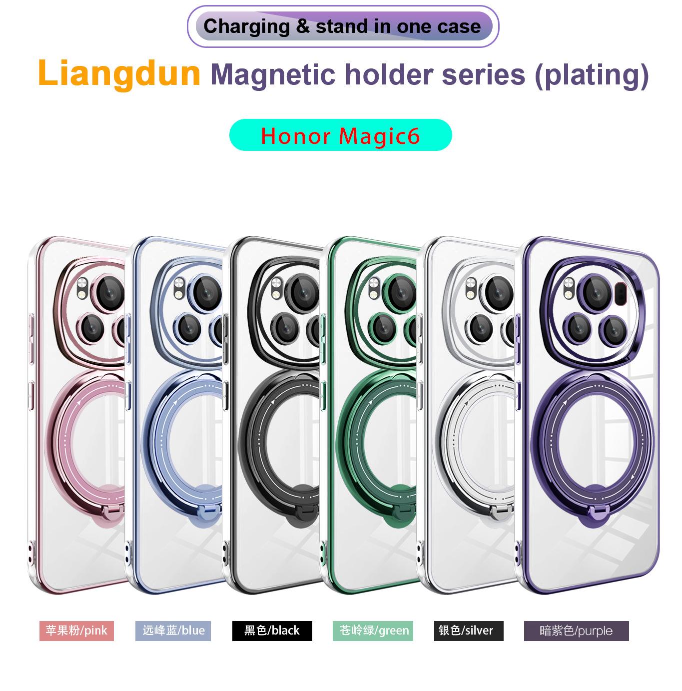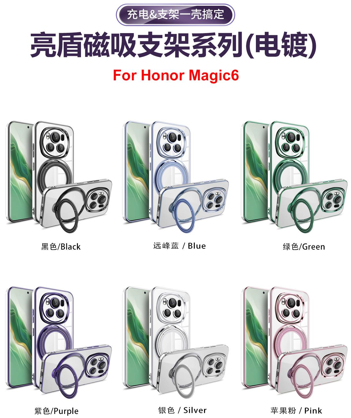 Para Glory Magic6 Funda de Teléfono Bright Shield Alta Permeabilidad Electrochapada Honor90Pro Soporte Magnético Giratorio Cubierta Protectora