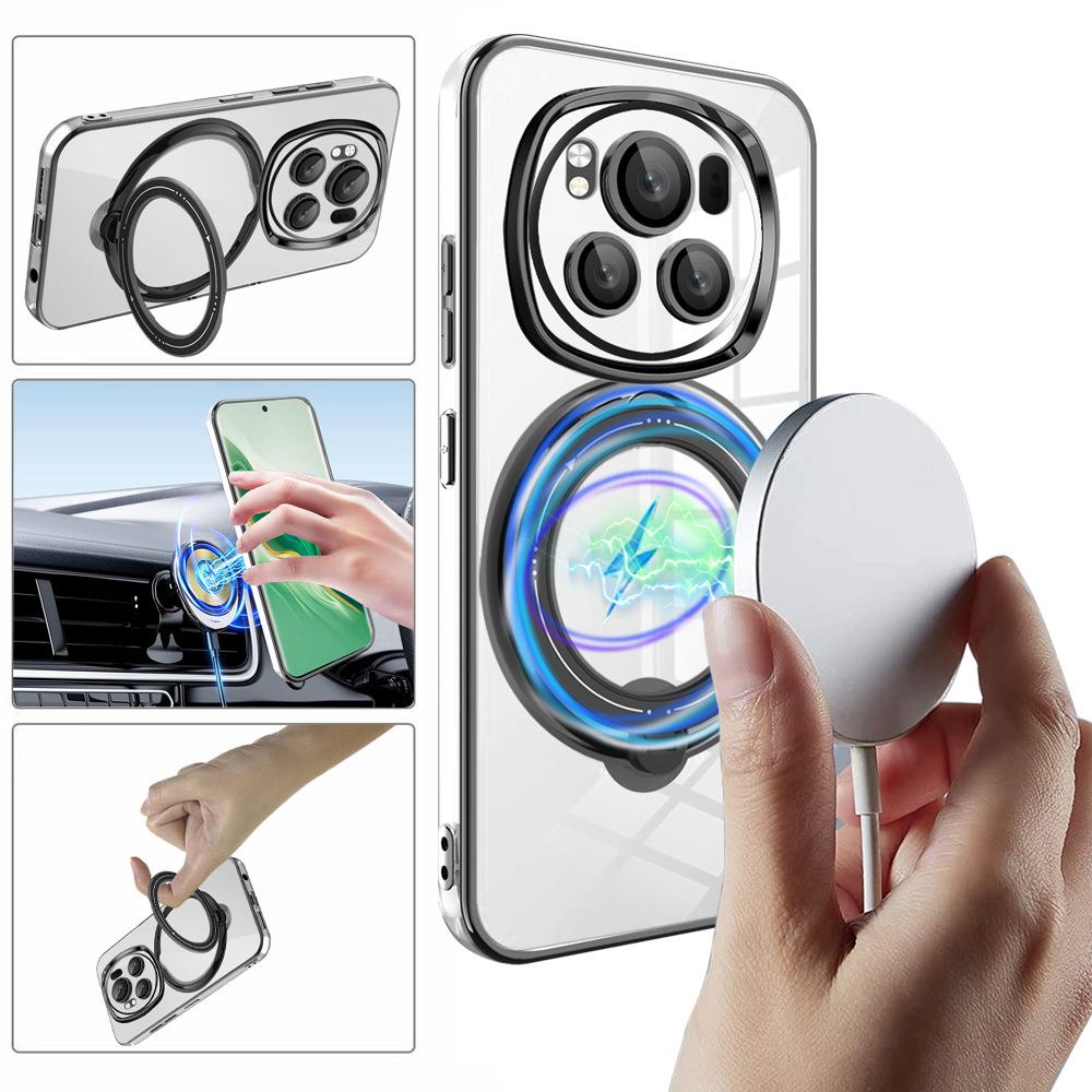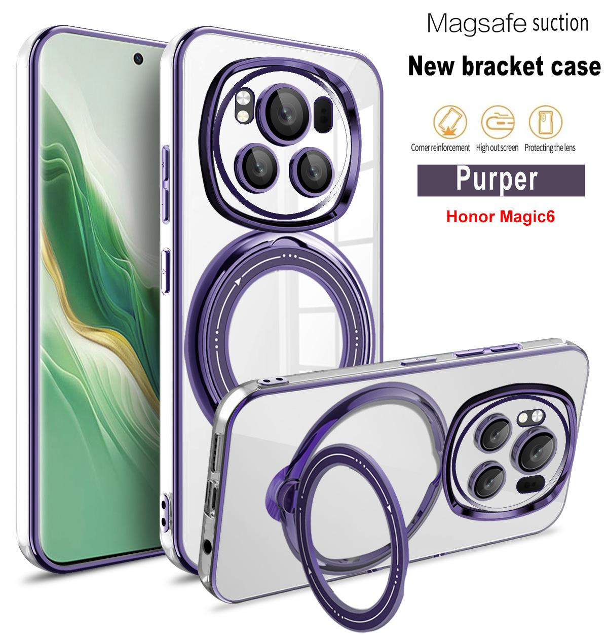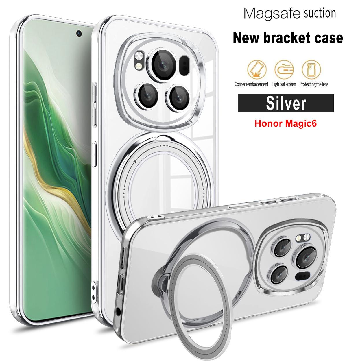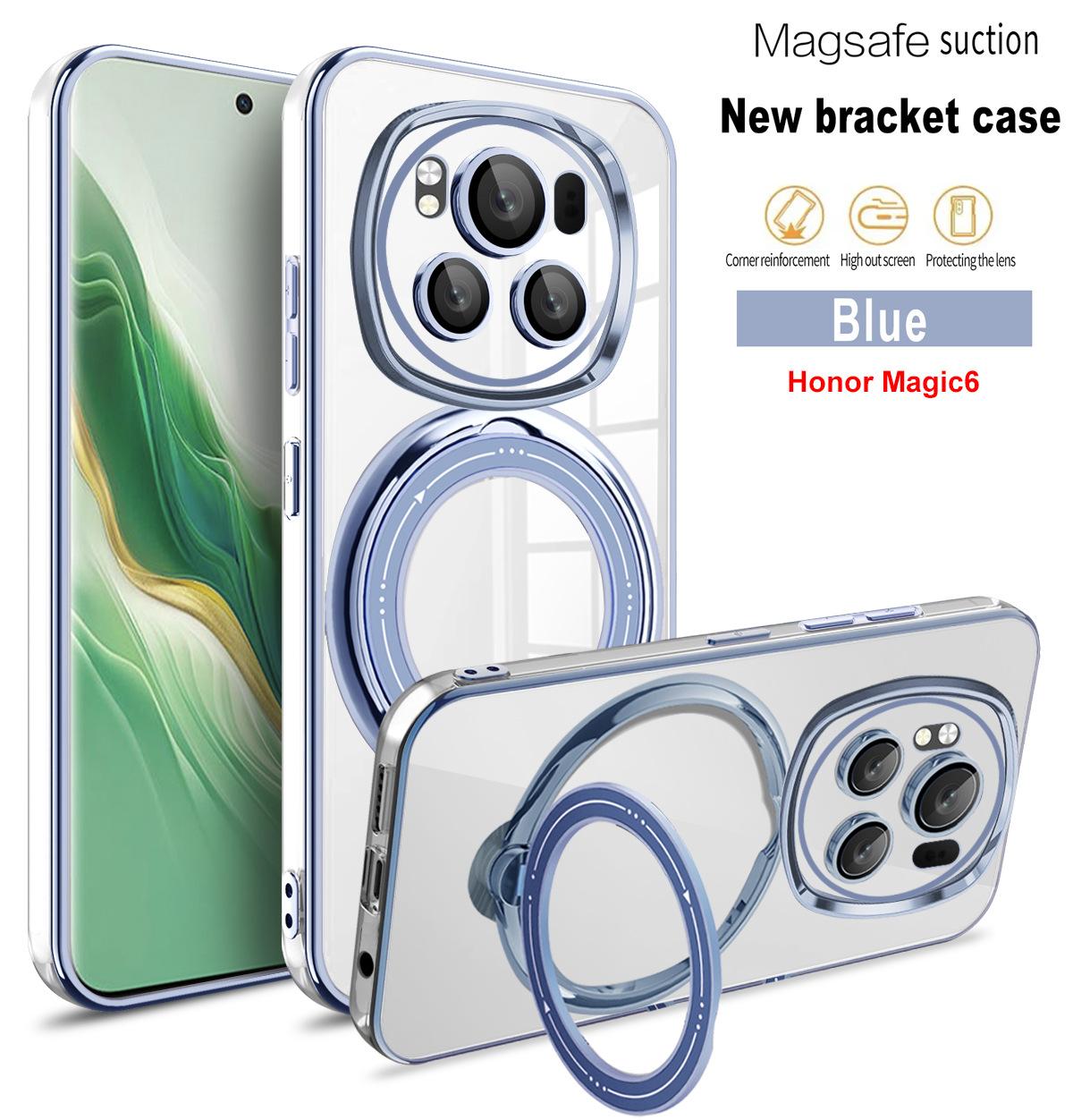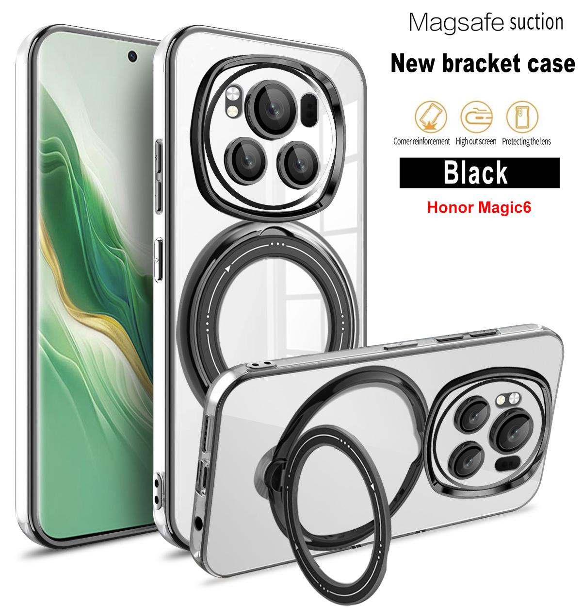 Para Glory Magic6 Funda de Teléfono Bright Shield Alta Permeabilidad Electrochapada Honor90Pro Soporte Magnético Giratorio Cubierta Protectora