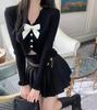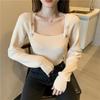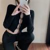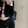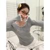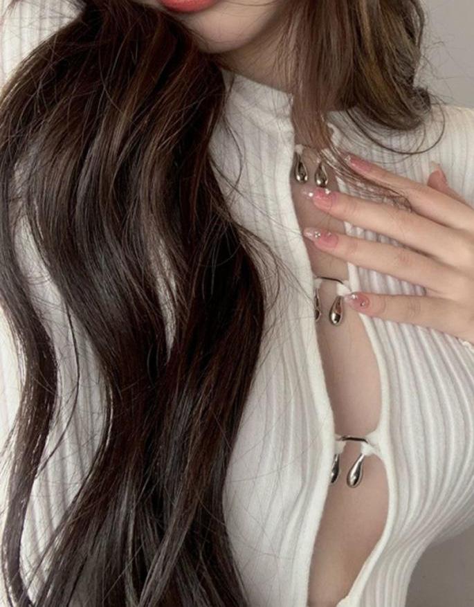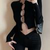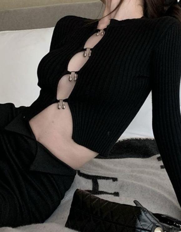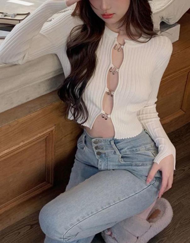 Cárdigan de punto de manga larga ajustado con diseño dulce y picante de estilo coreano, elegante, con agujeros, para chica sexy, cuello redondo bajo para mujer