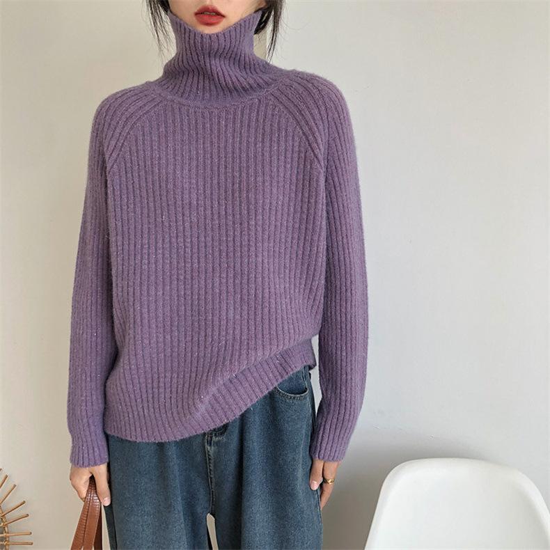 Suéter de punto de cuello alto de seda brillante estilo perezoso estilo coreano para mujer otoño e invierno Nuevo jersey de punto suave y glutinoso para mujer
