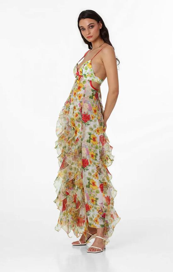 Vestido de noche elegante de gasa con tirantes, estilo europeo y americano, para mujer, primavera y verano 2025