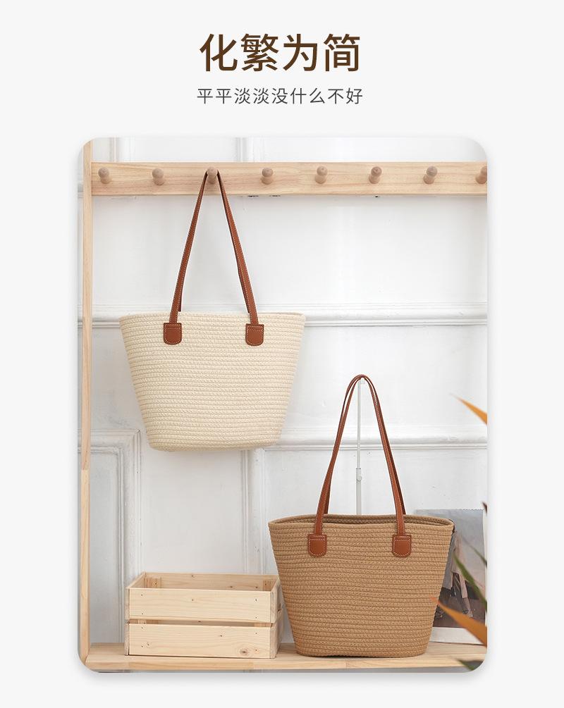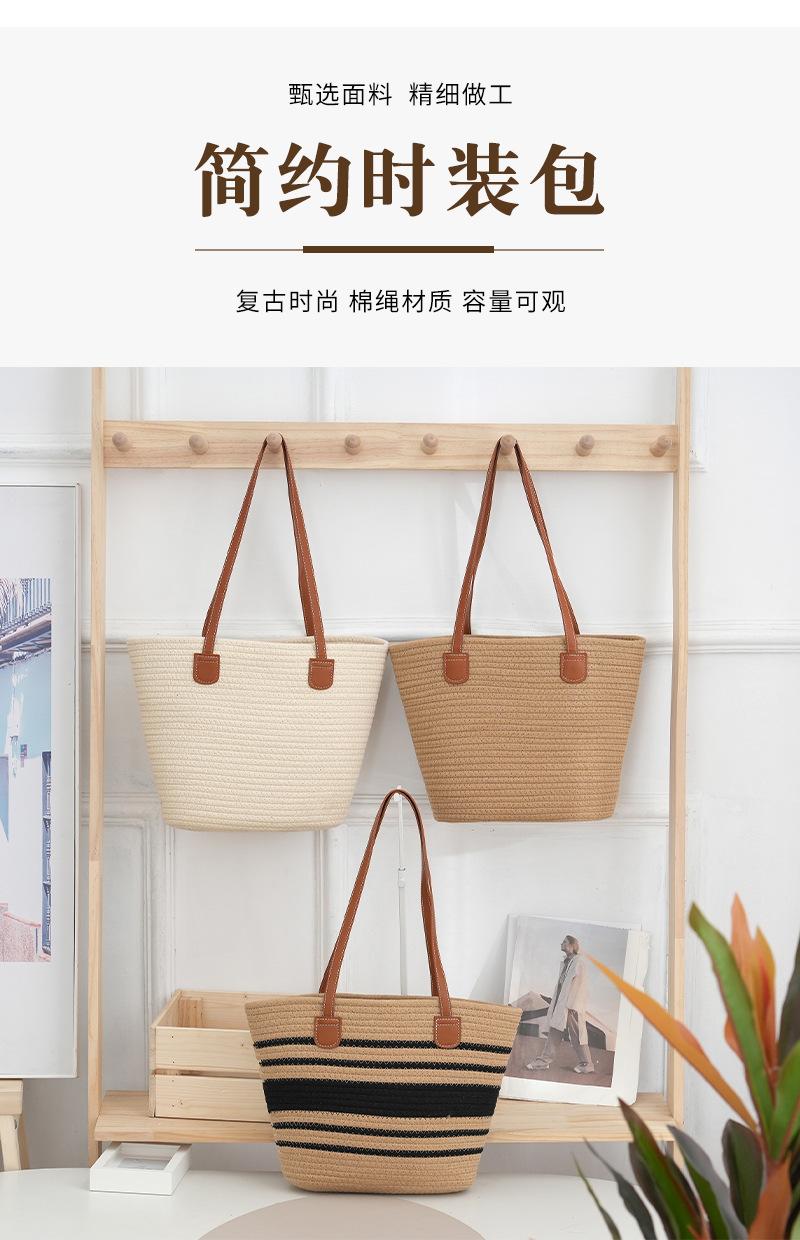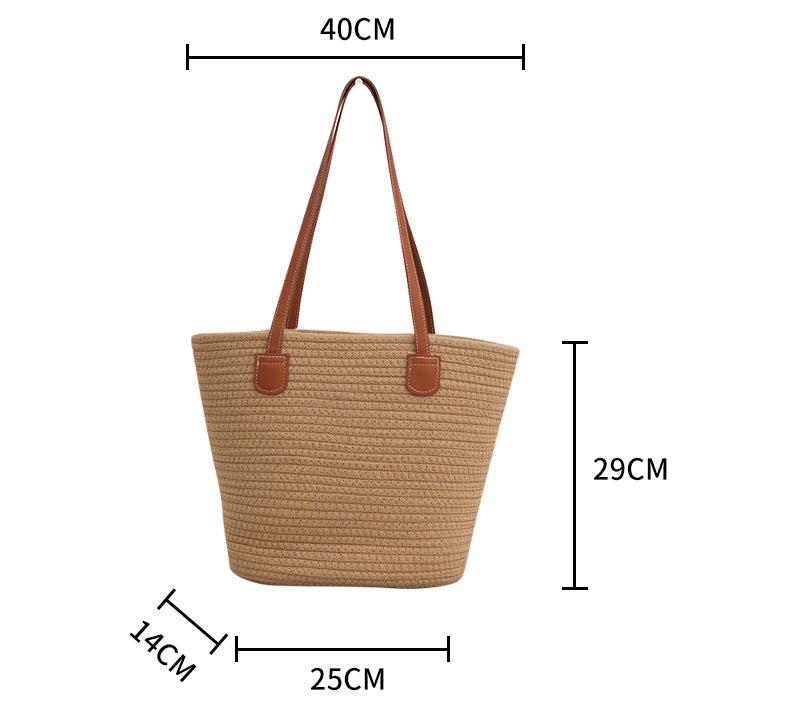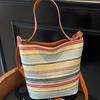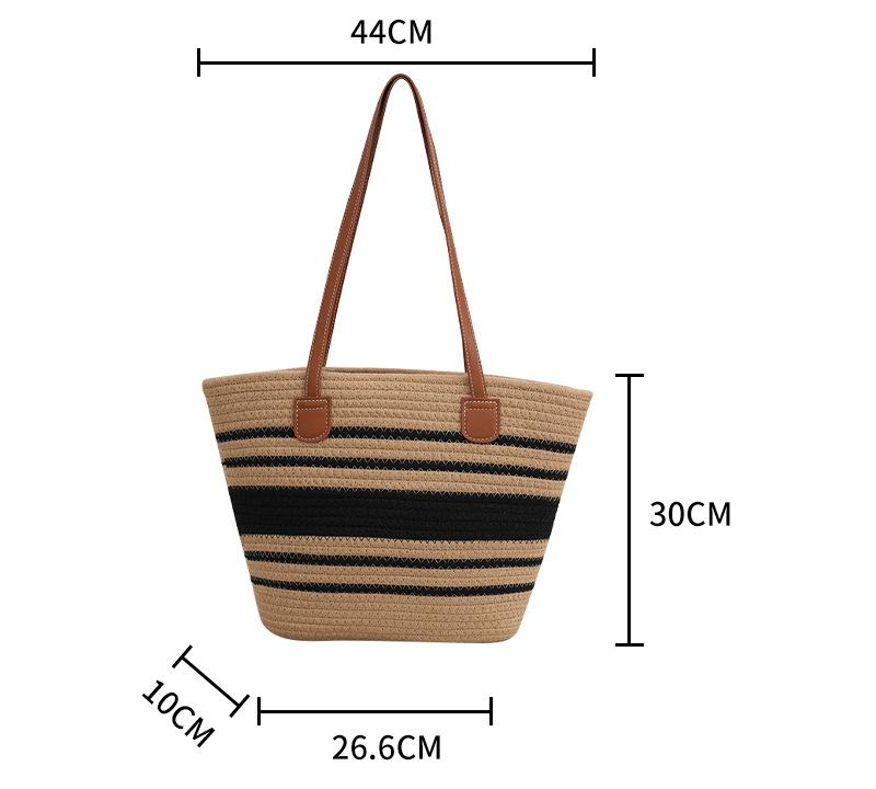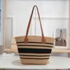 Bolso de Paja de Temperamento de Gran Capacidad, Simple y Versátil para Viajeros, Nuevo Estilo Tejido a Mano para Hombro/Axila, Bolso Rayado de Moda