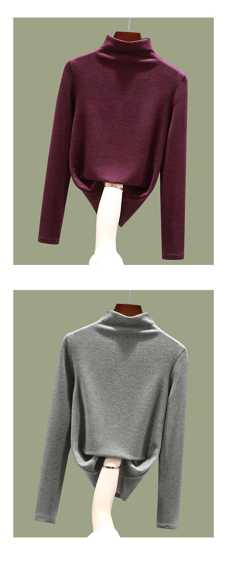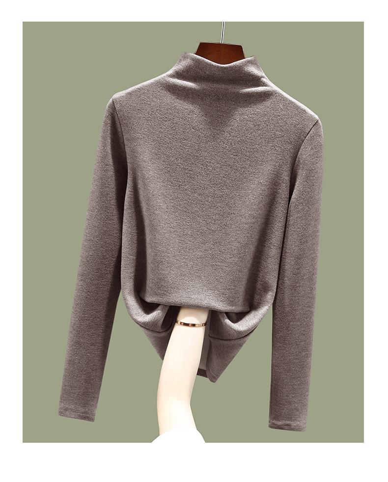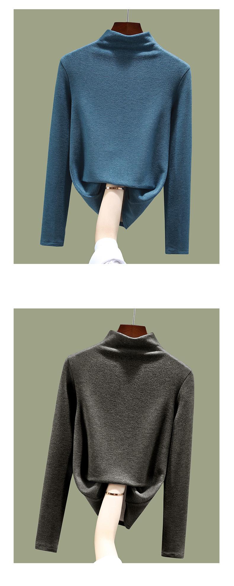 Camisa de terciopelo alemán con cuello alto y media manga para mujer, ropa interior cálida de otoño e invierno 2024, nuevas blusas de manga larga para mujer con estilo 1688 |