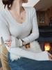 Camisa de cuello redondo para mujer, ropa interior, ropa de mujer, principios de otoño 2024, camiseta blanca de manga larga de moda, top de cachemira sintética para mujer, ropa exterior |