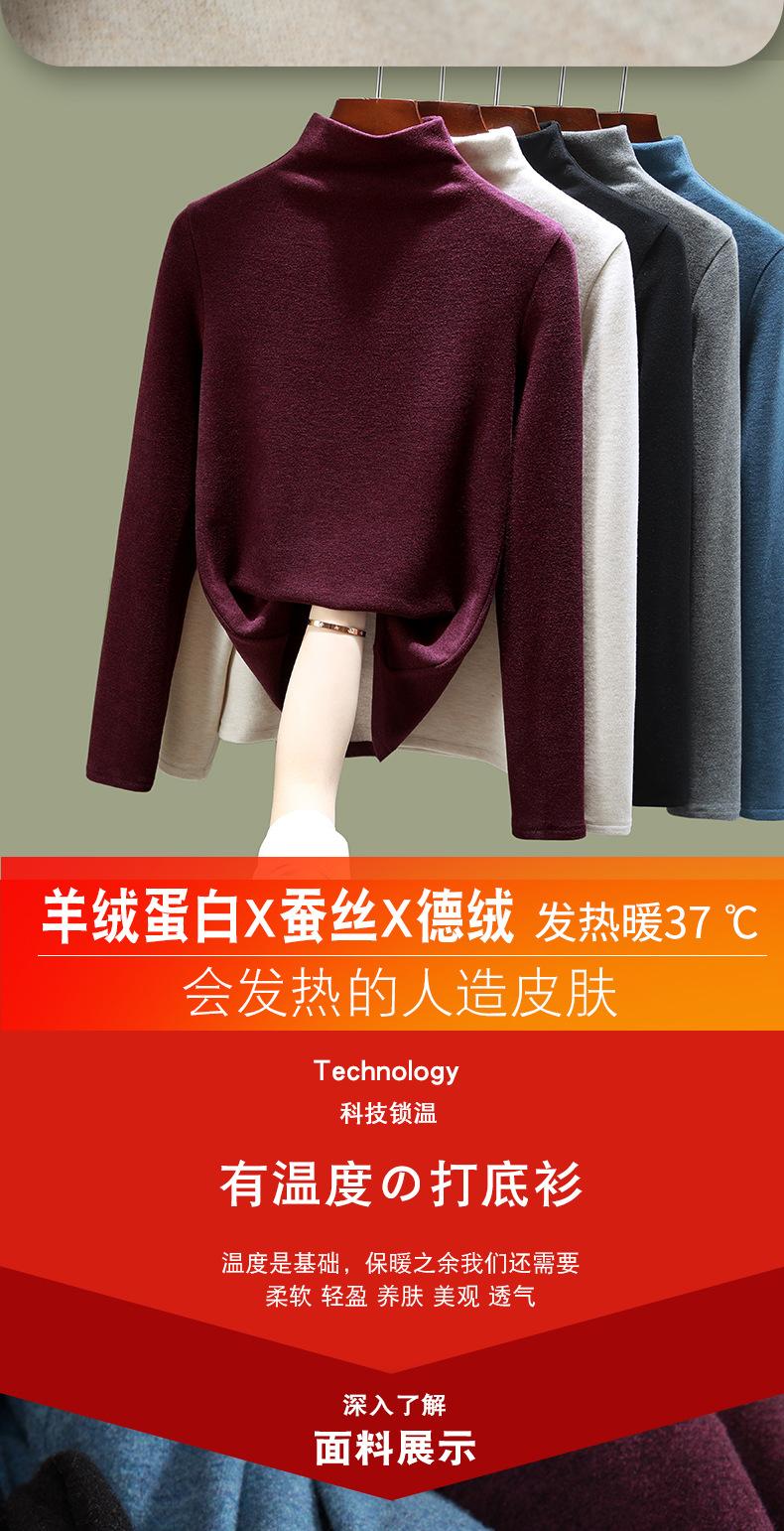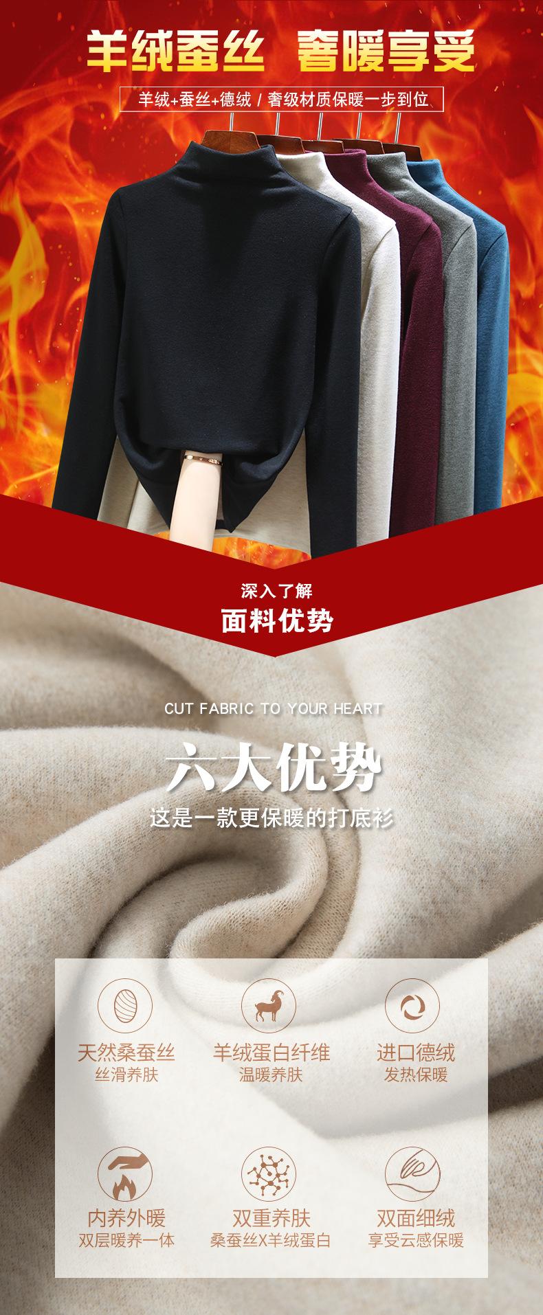 Camisa de seda de cachemira para mujer 2024 otoño e invierno nueva ropa interior de mujer top de cuello alto cálido de terciopelo alemán más terciopelo engrosado |