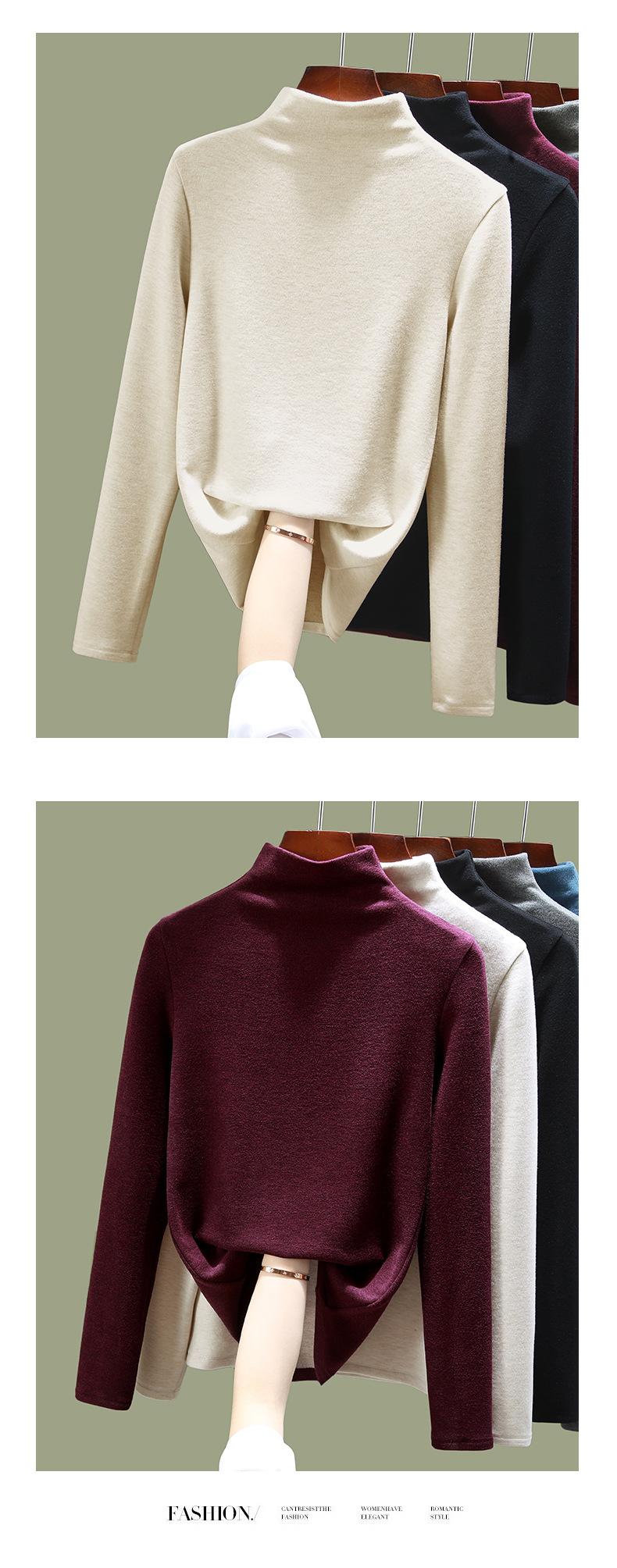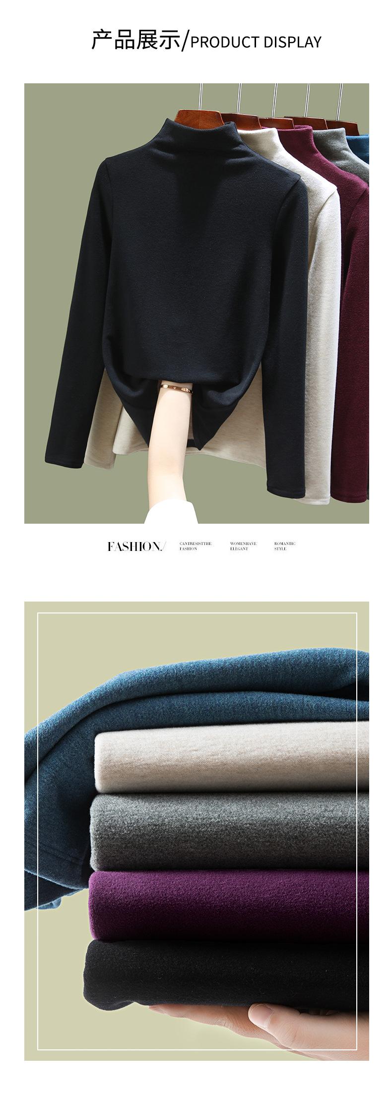 Ropa interior térmica de terciopelo de seda para mujer, camisetas interiores de terciopelo grueso con cuello alto, ropa de otoño, camisa de lana para invierno |