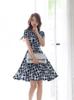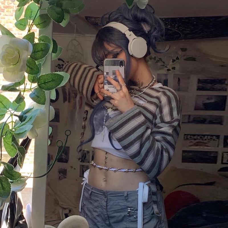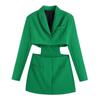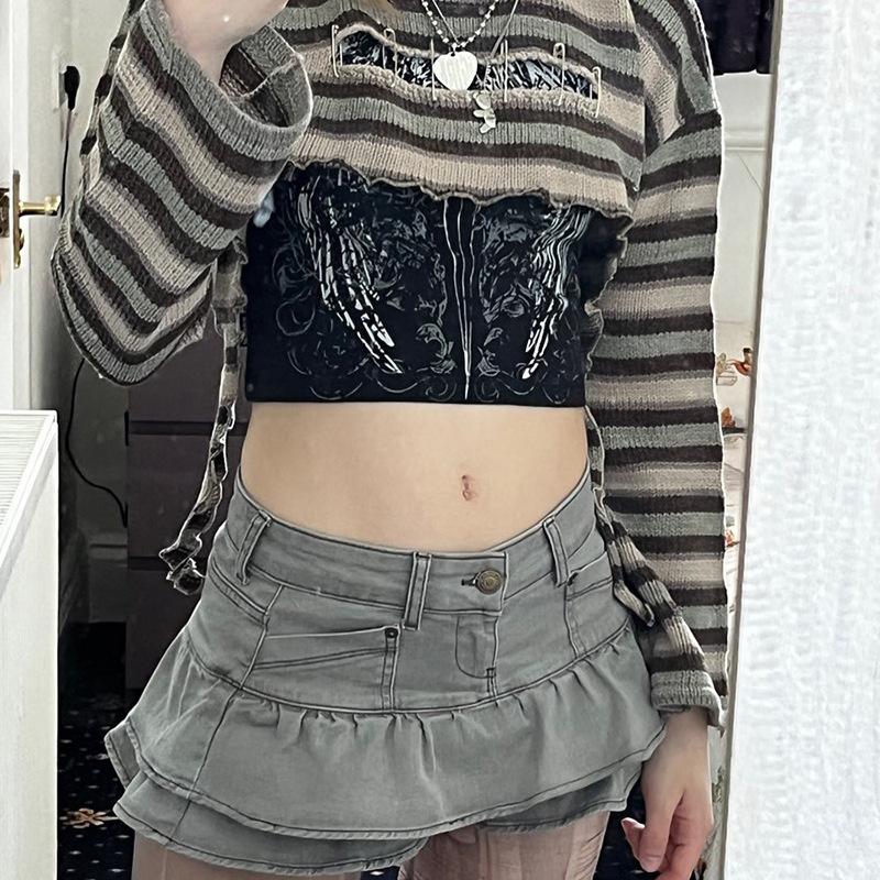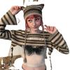 Falda de cintura alta de manga larga a rayas con cuello redondo, corte entallado, color liso, estilo europeo y americano transfronterizo, verano 2022