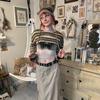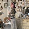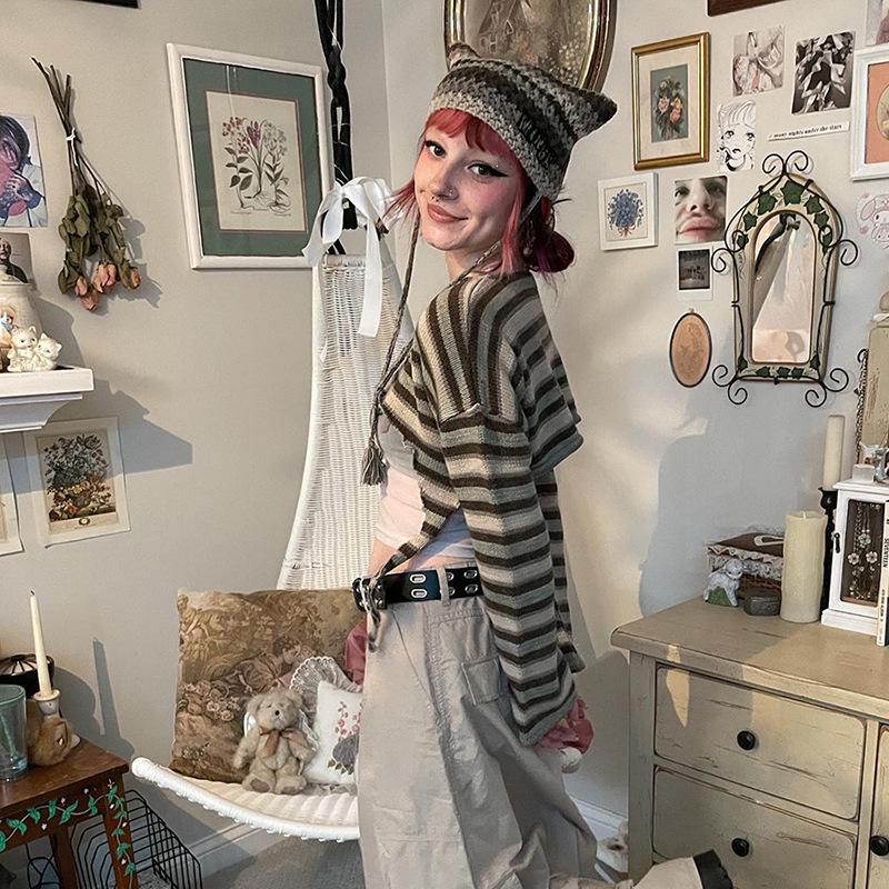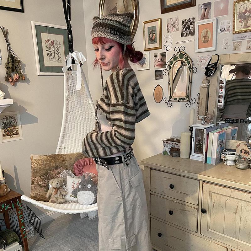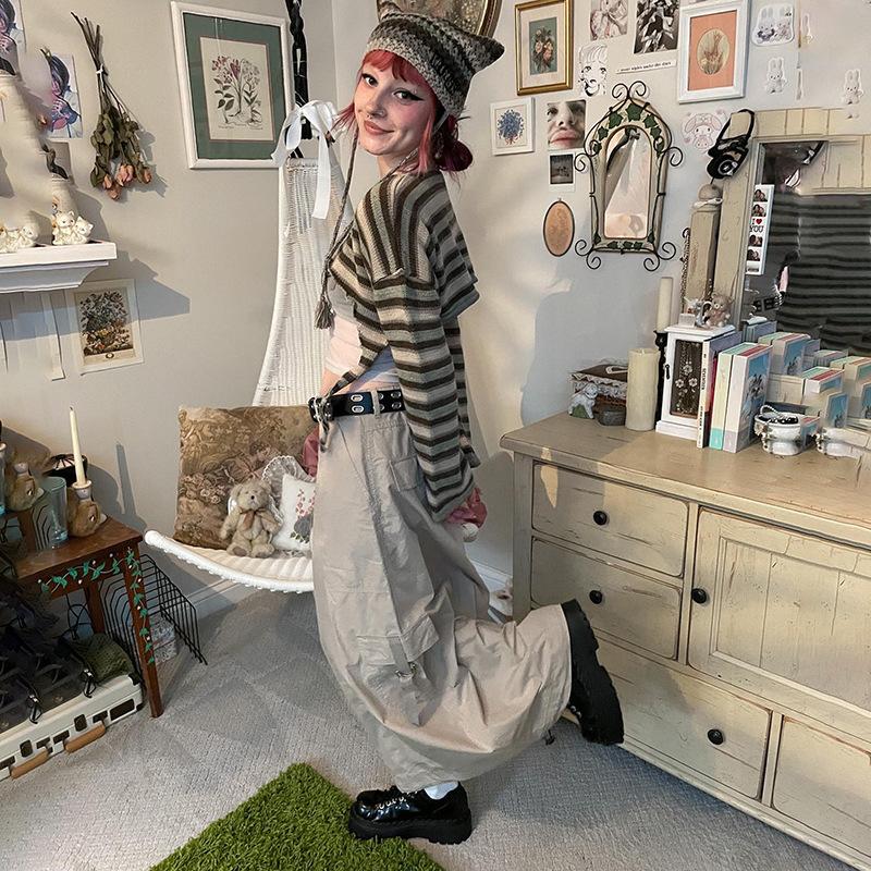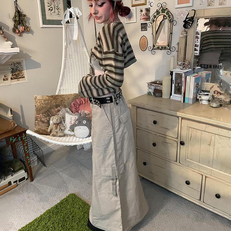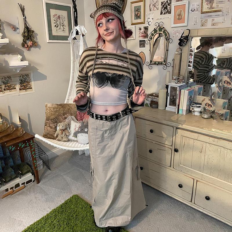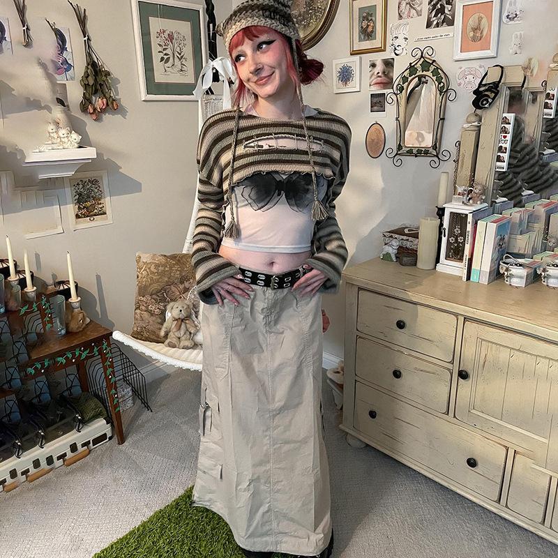 Striped Top, Khaki Skirt