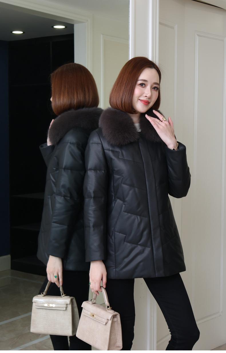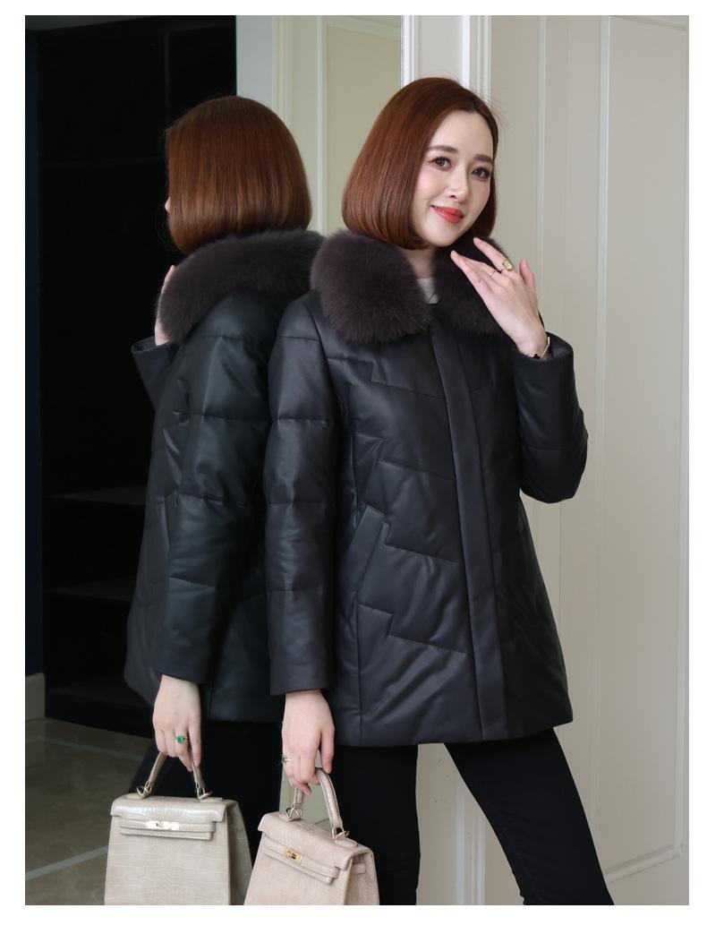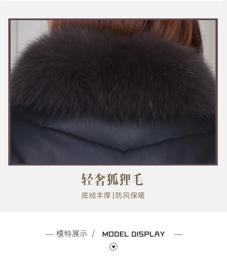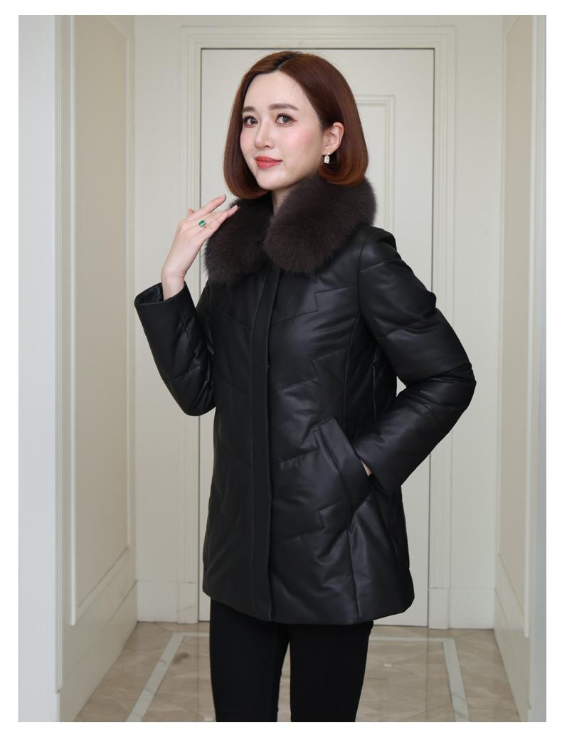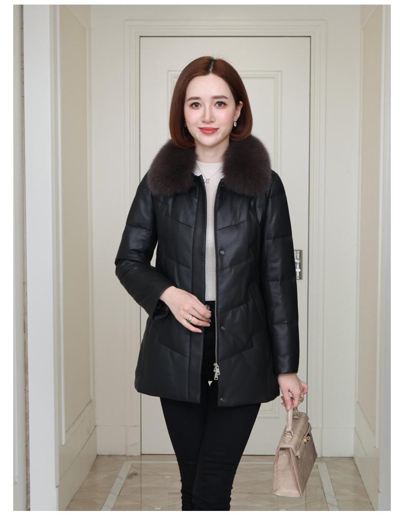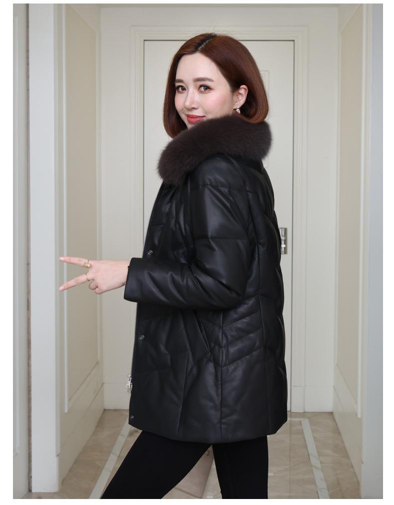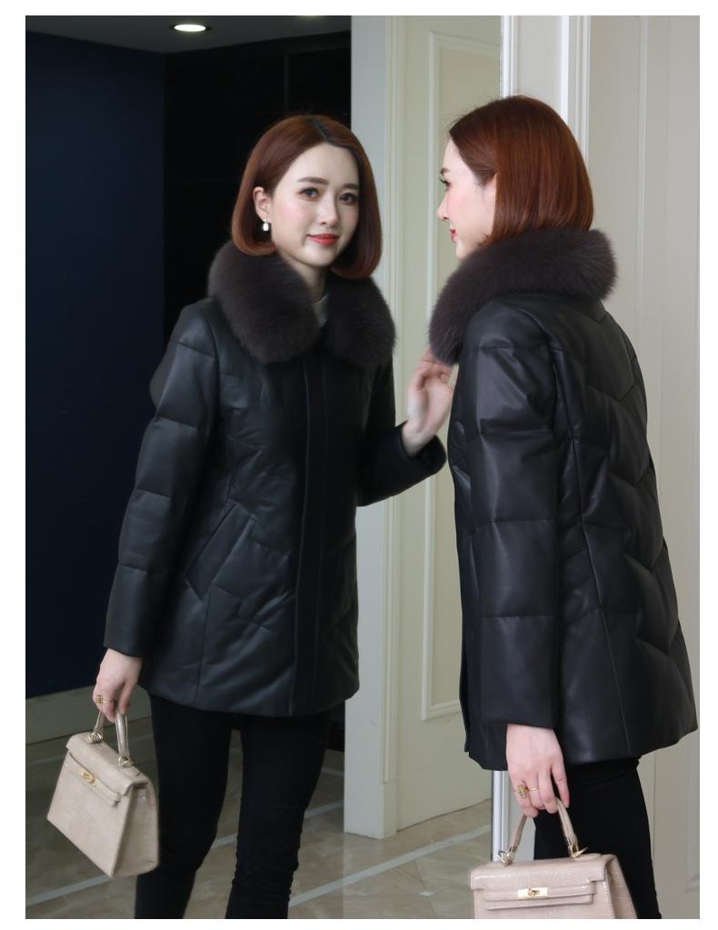 Chamarra de plumón de piel genuina de Haining para mujer, longitud media, 2025, nueva, invierno, piel de cabra madre, engrosada, aspecto adelgazante, plumón de ganso