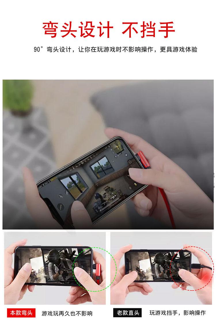 2. La carcasa está hecha de aleación de aluminio y tratada con arena fina oxidada para prevenir rayones; el diseño de cable artificial en ángulo de 90 grados previene el aflojamiento. Conveniente para jugar y ver series de televisión;