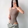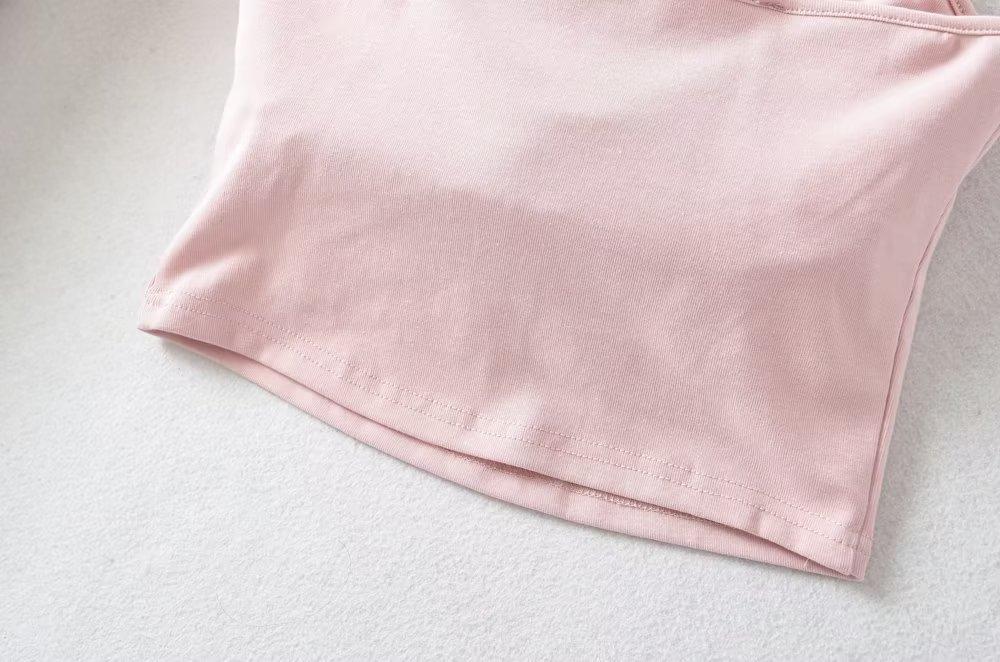 Camisola ajustada de verano estilo europeo y americano para mujer, sexy, con cinturón y almohadillas en el pecho, prenda exterior corta ajustada