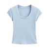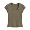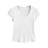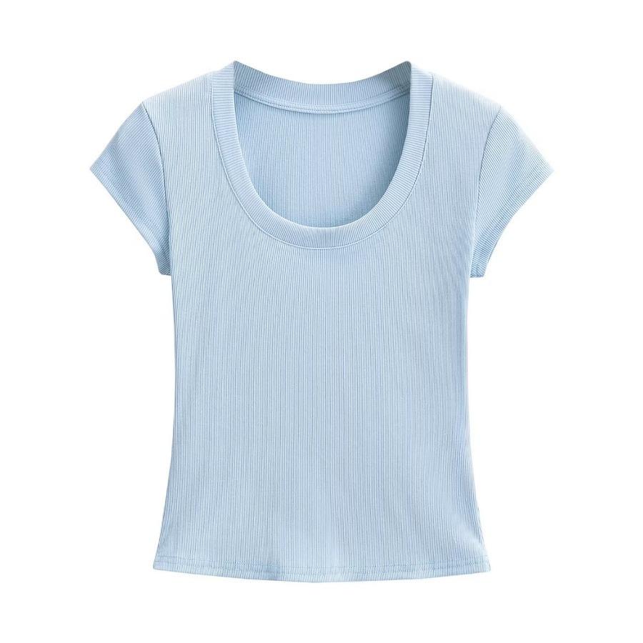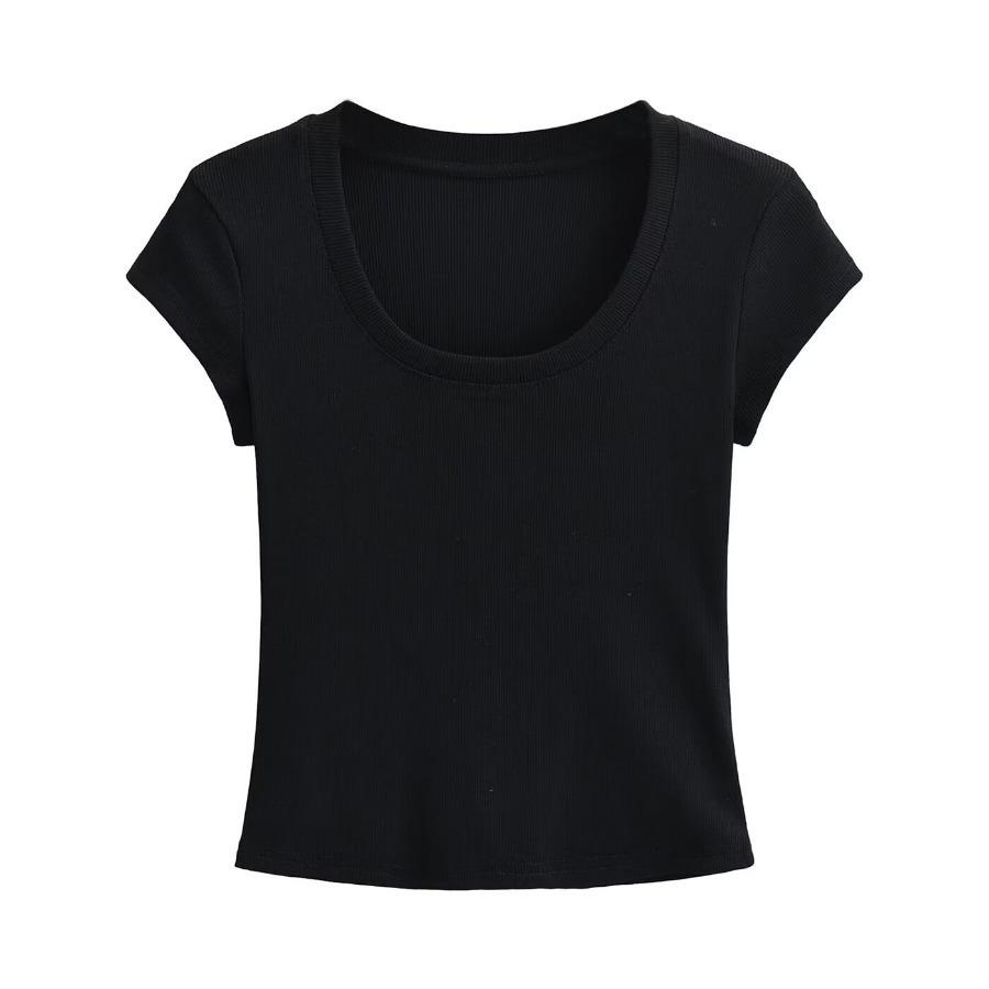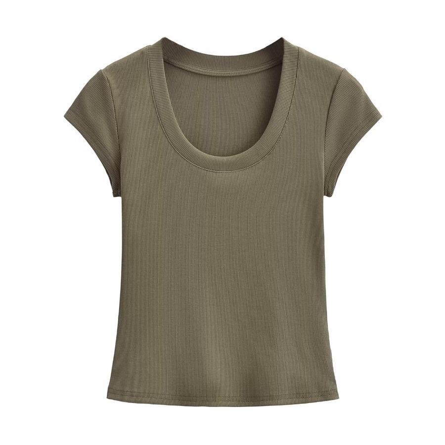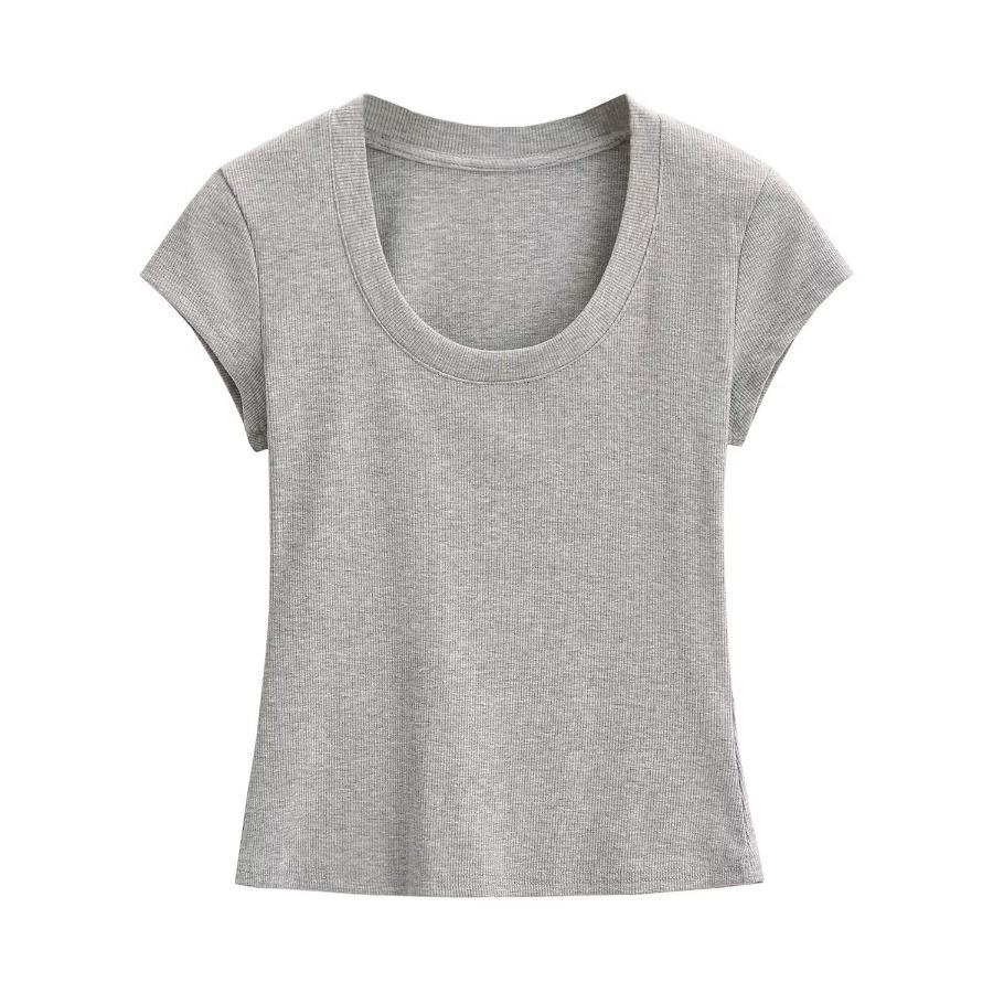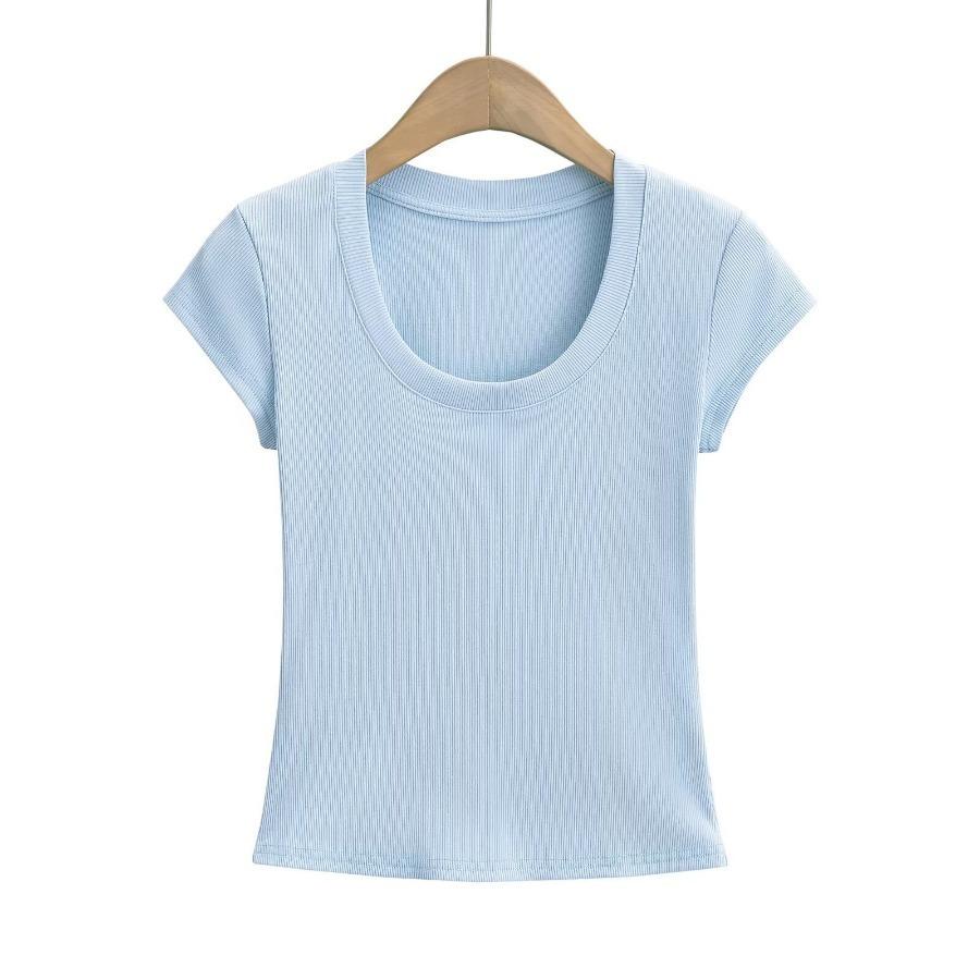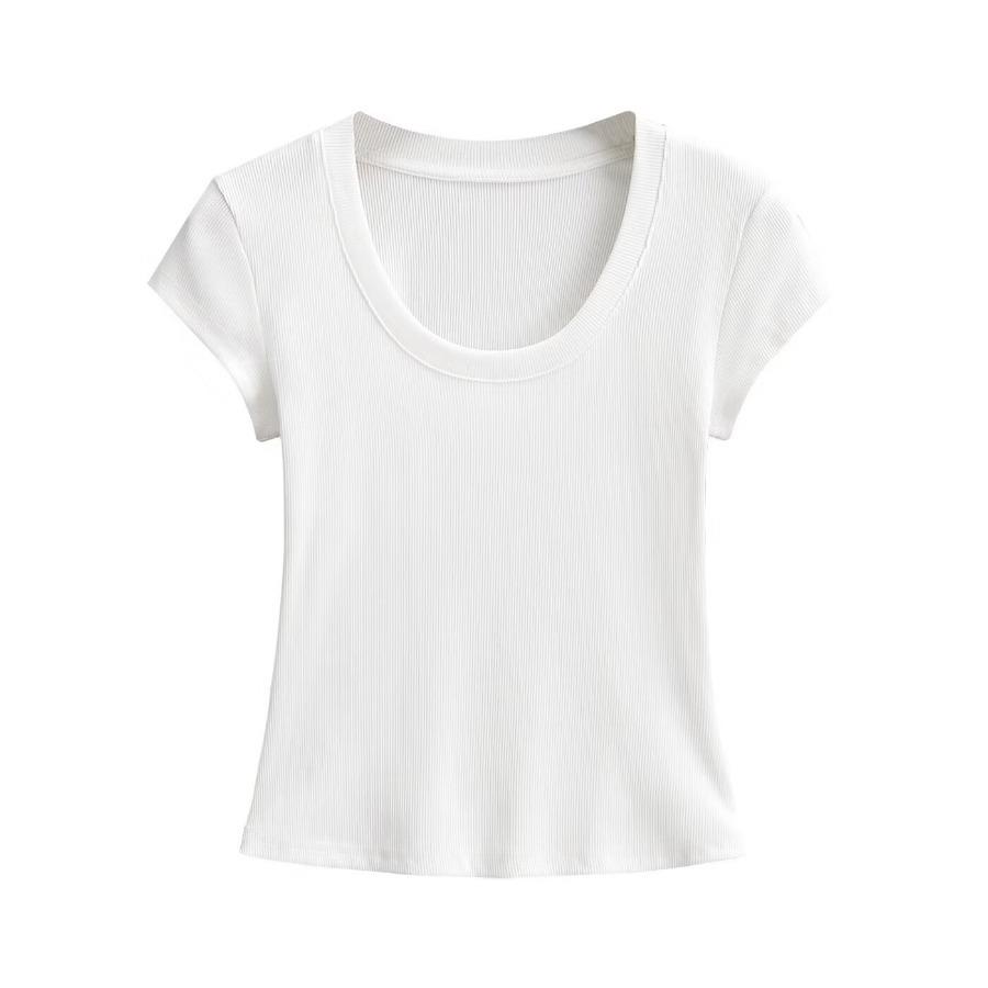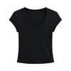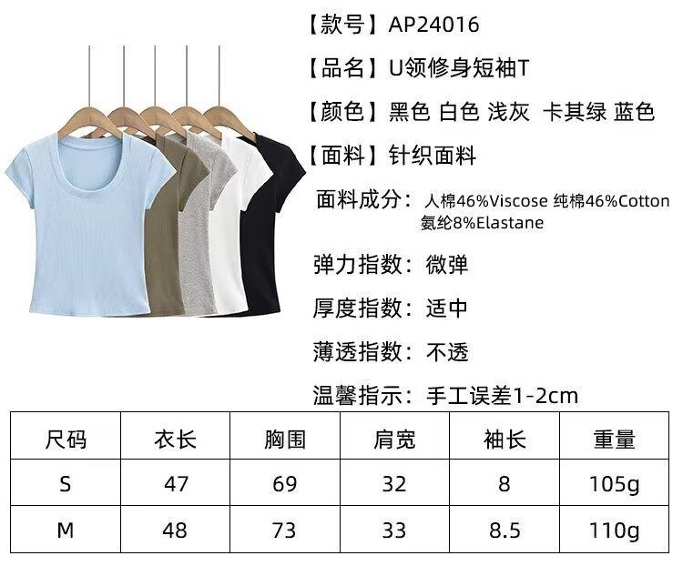 2024 Verano nuevo estilo europeo y americano cuello U ajuste ceñido adelgazante color sólido manga corta camiseta top corto de chica hot para mujer al por mayor