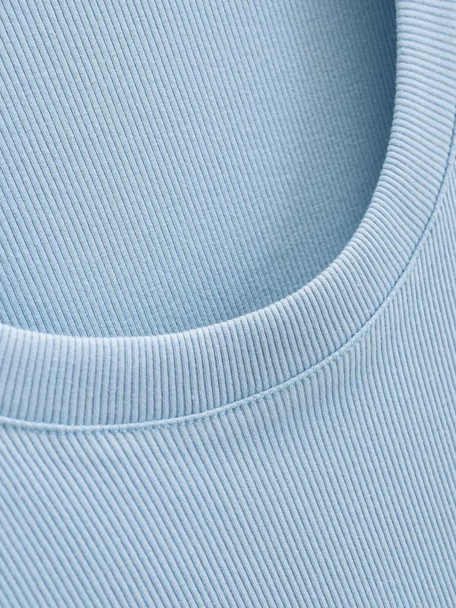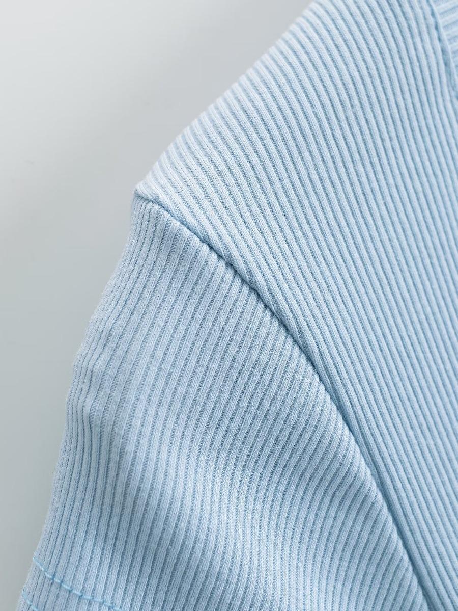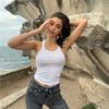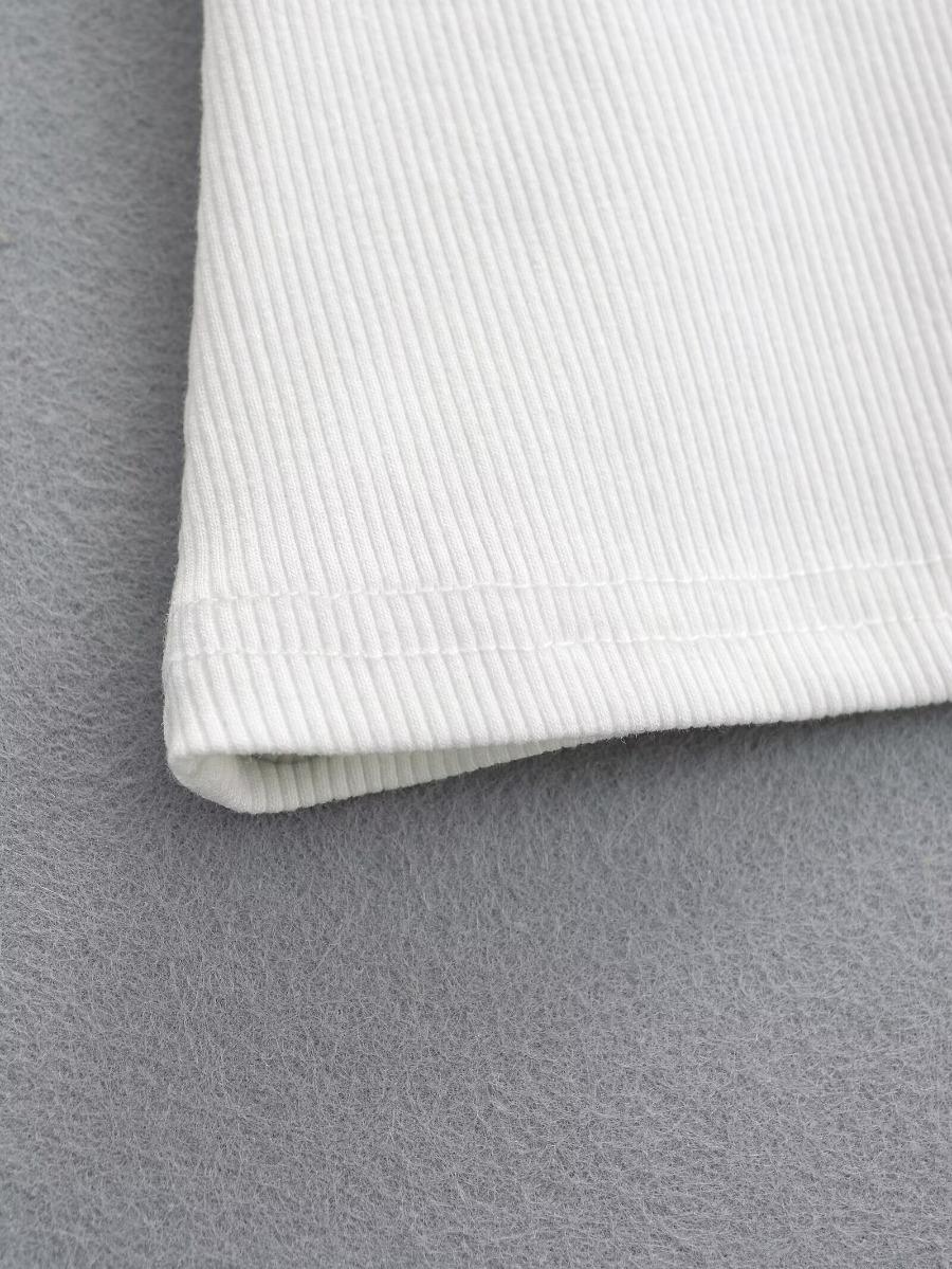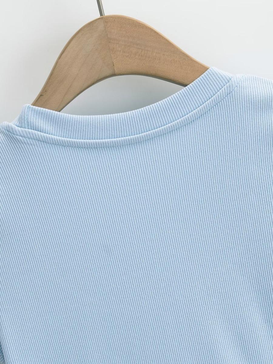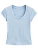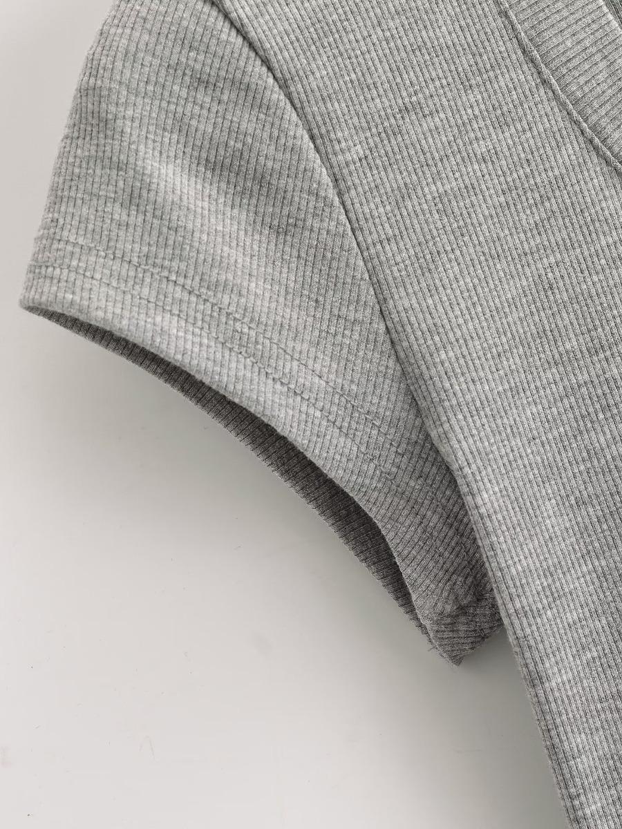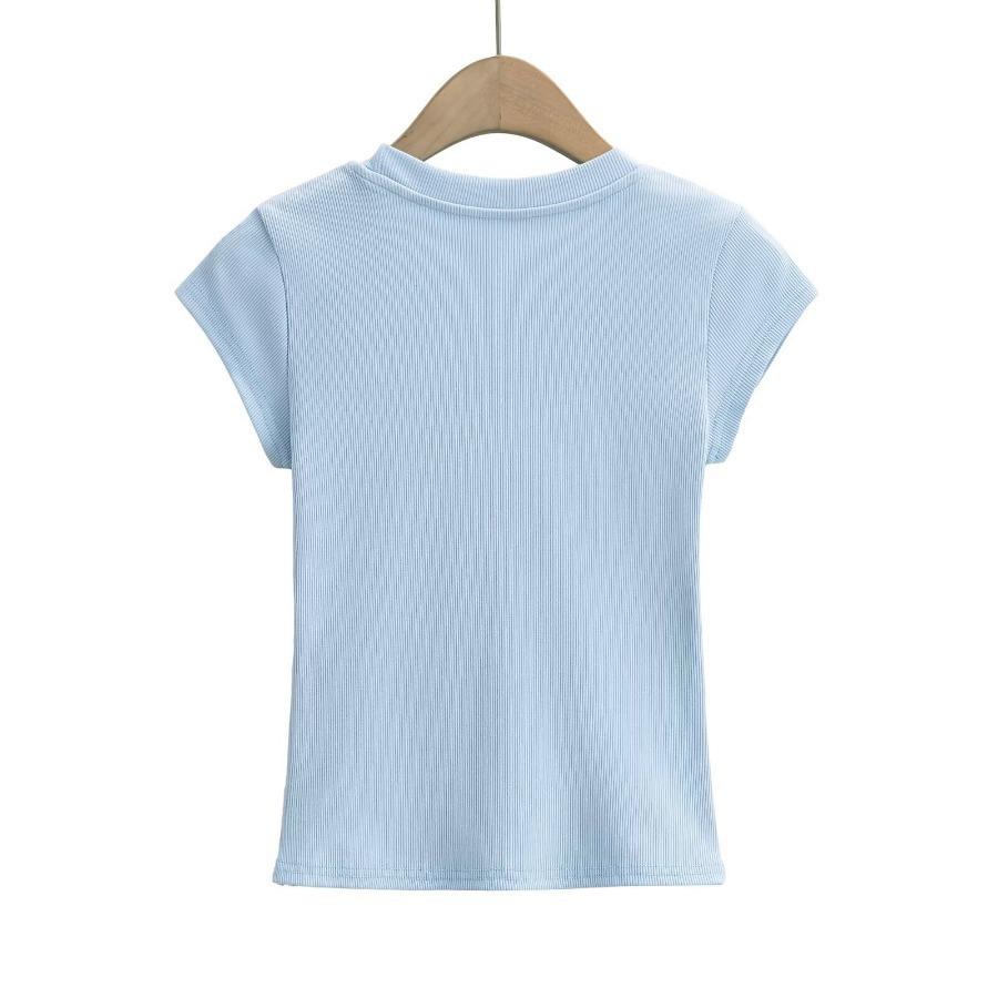 2024 Verano nuevo estilo europeo y americano cuello U ajuste ceñido adelgazante color sólido manga corta camiseta top corto de chica hot para mujer al por mayor