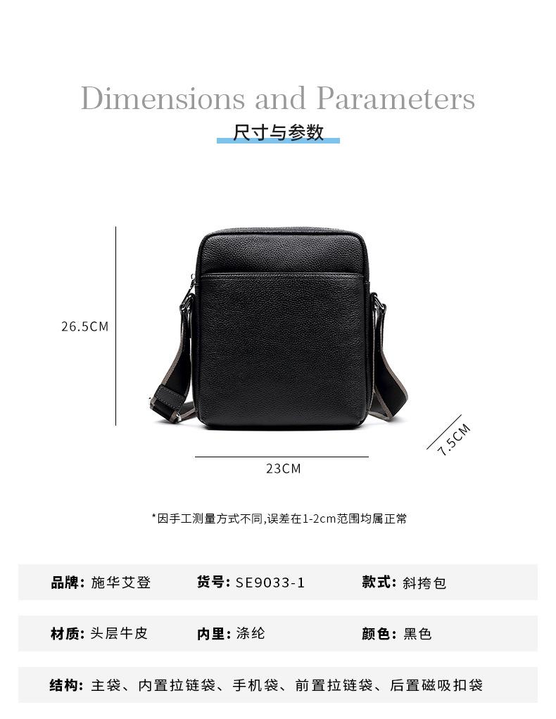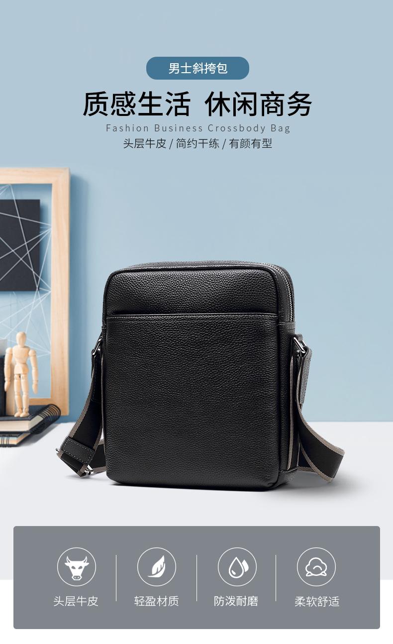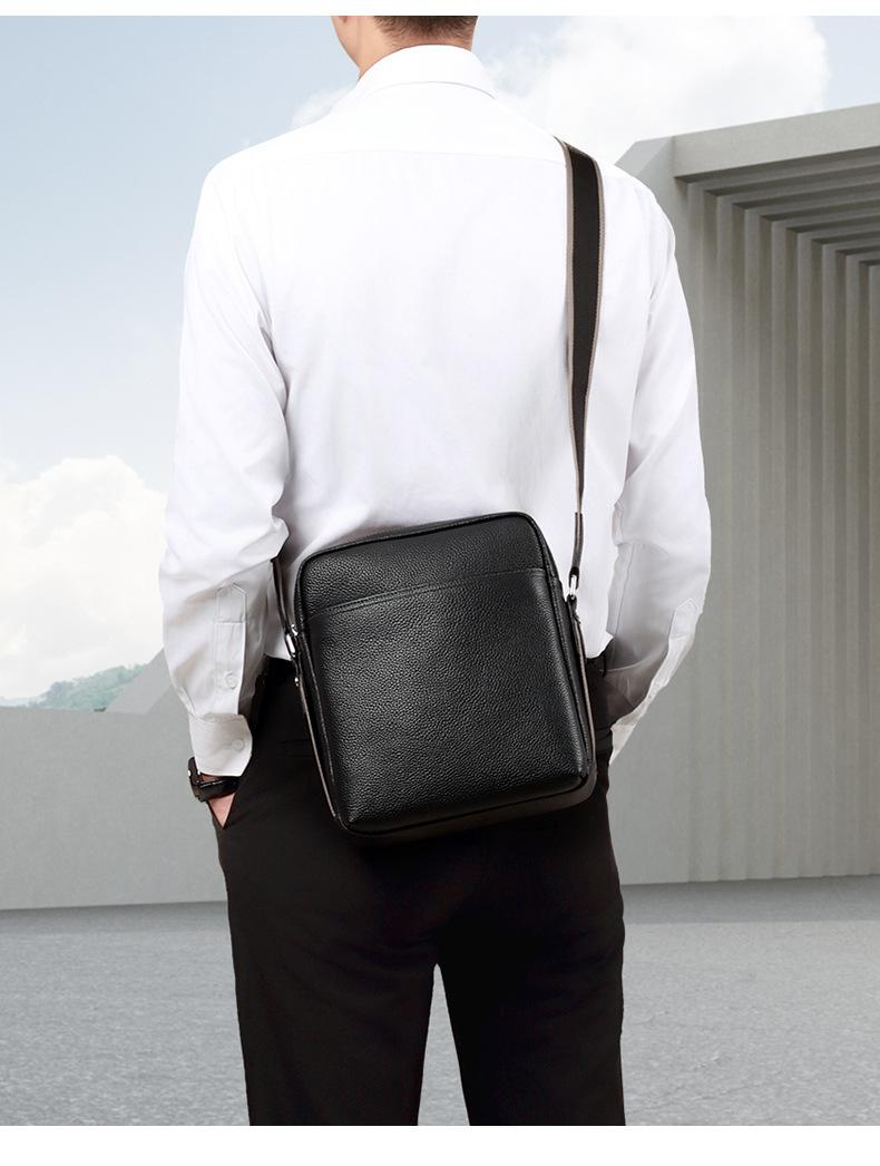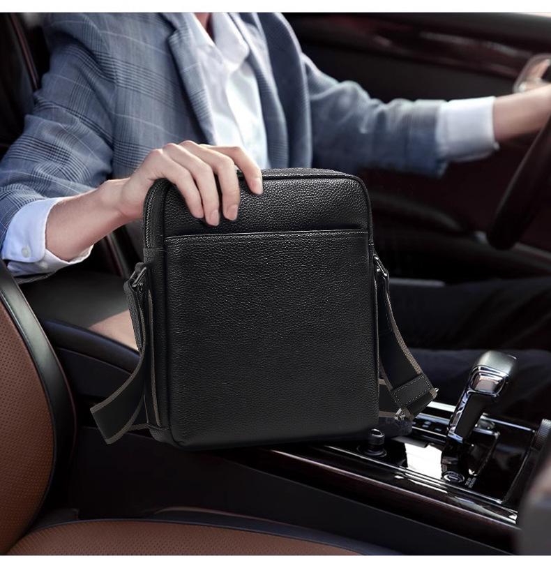 Bolso de Hombre de Cuero Genuino Moderno y a la Moda Gran Capacidad Primera Capa Cuero Vacuno Bolso Cruzado de Hombre Casual Repelente al Agua Bolso de Hombro de Hombre