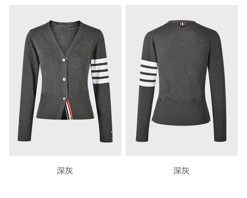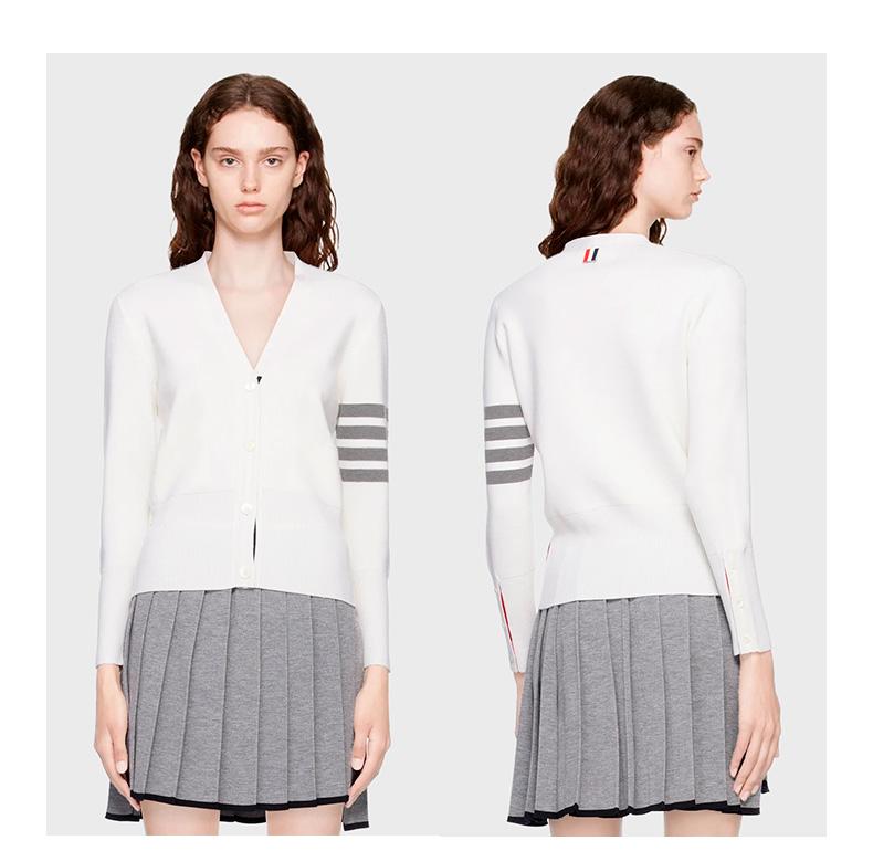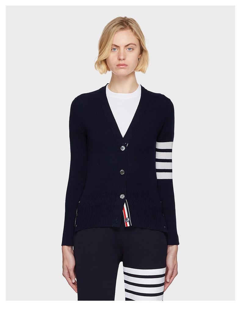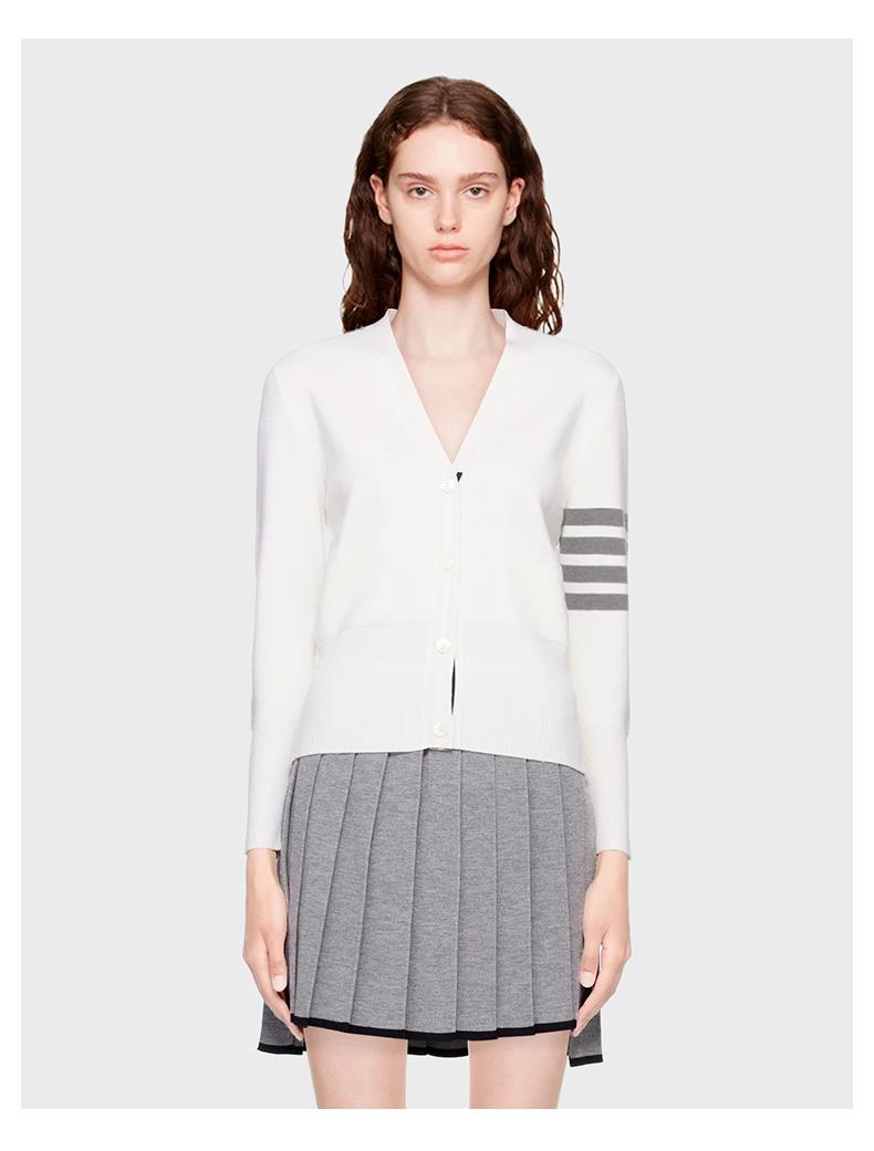 [Pinzheng oficial] Cárdigan de punto de marca de moda TB para mujer otoño e invierno delgado suéter de cuello en V suéter de cuatro barras exterior
