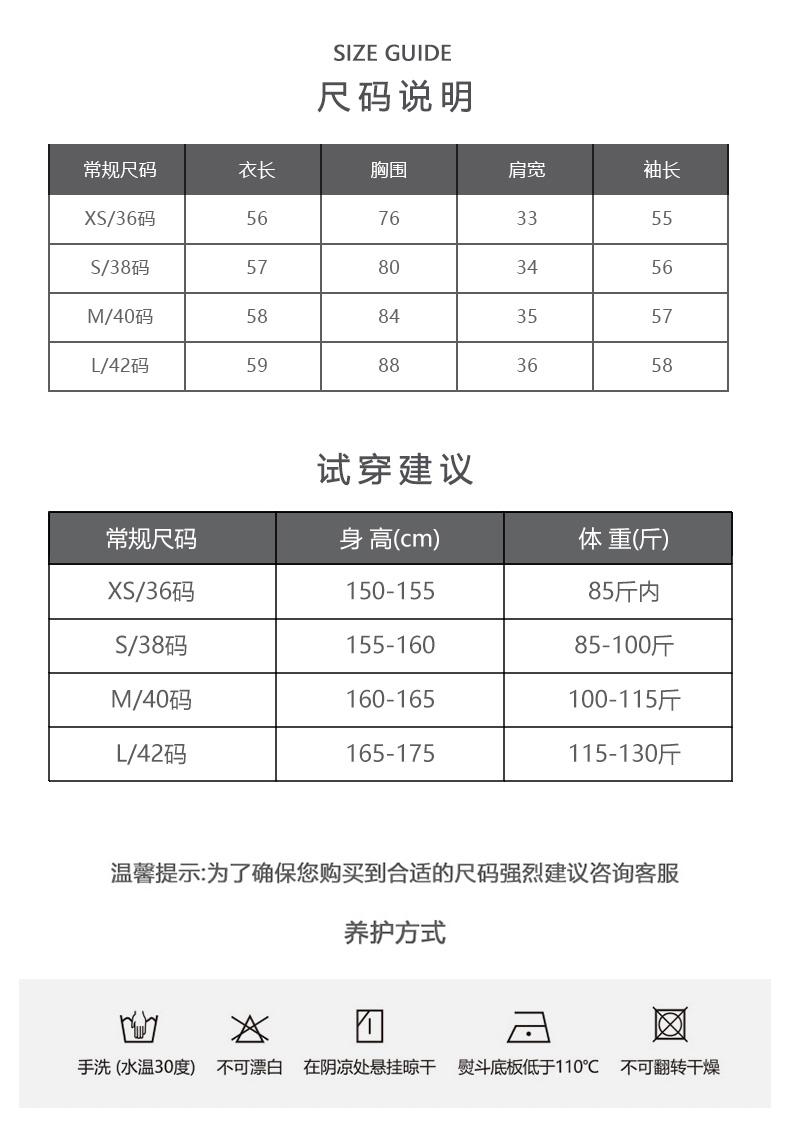 Xs/36 size, S/38 code, M/40 size, L/42 size