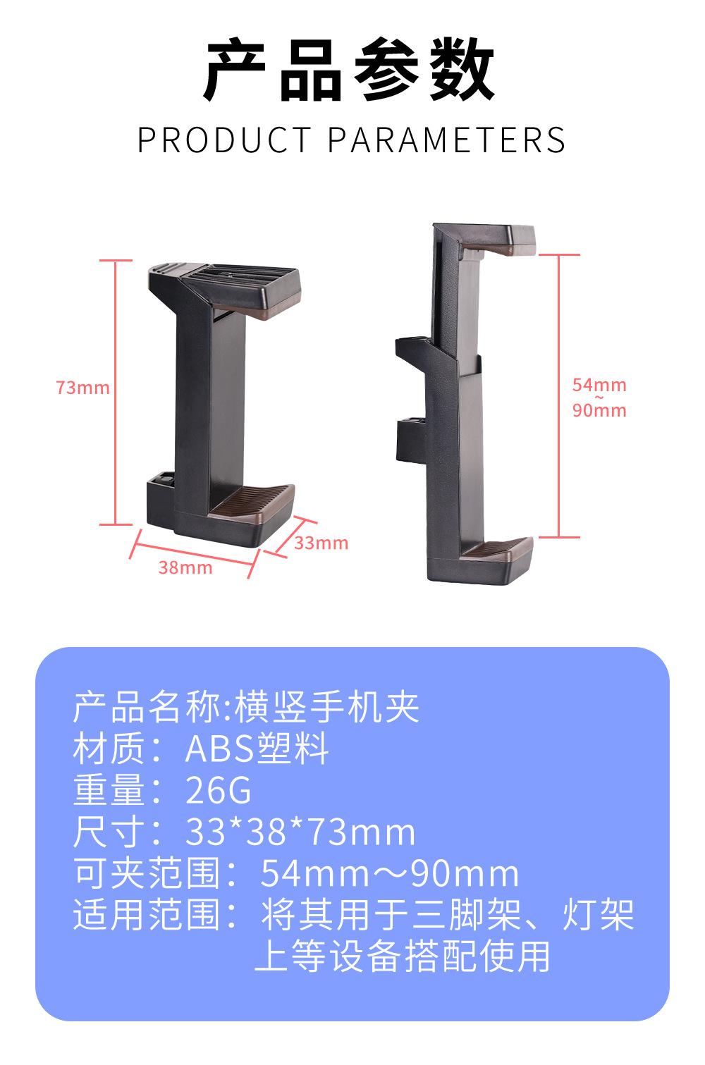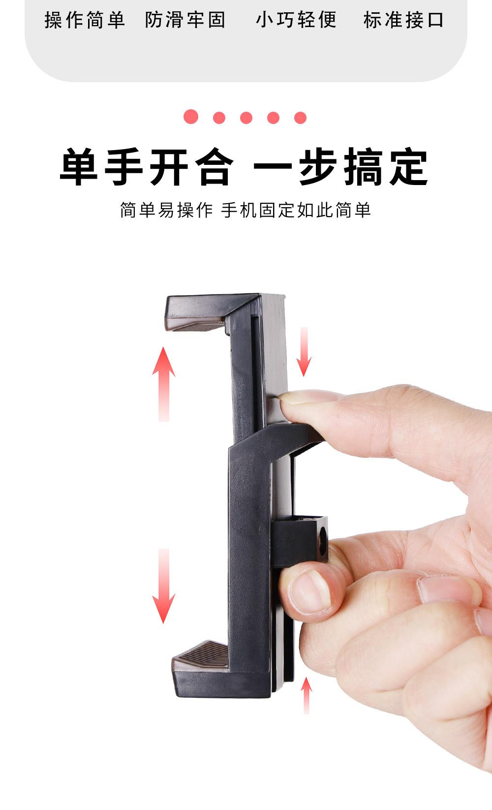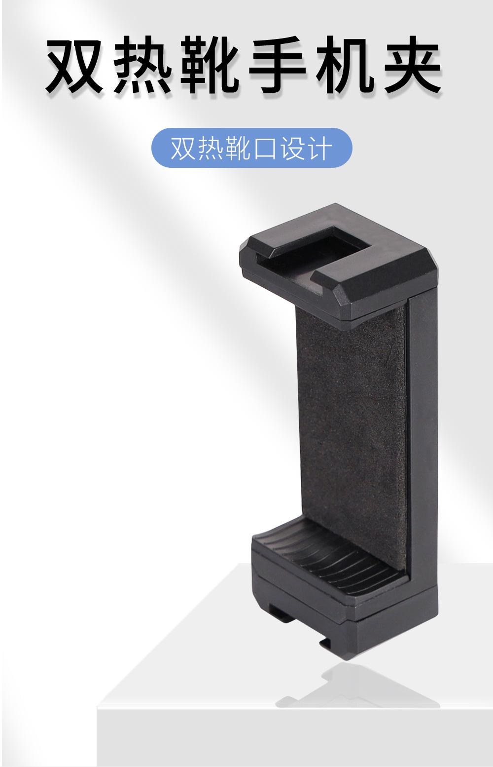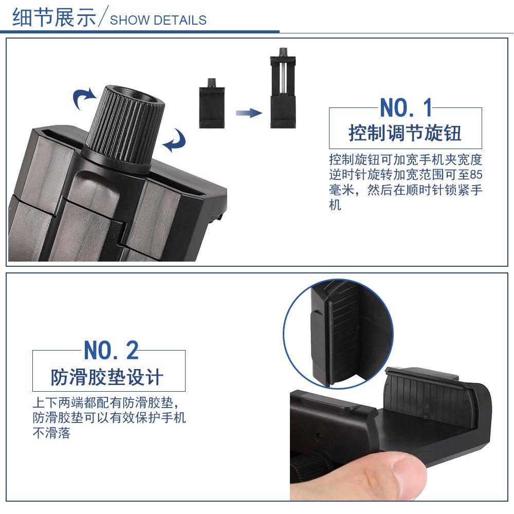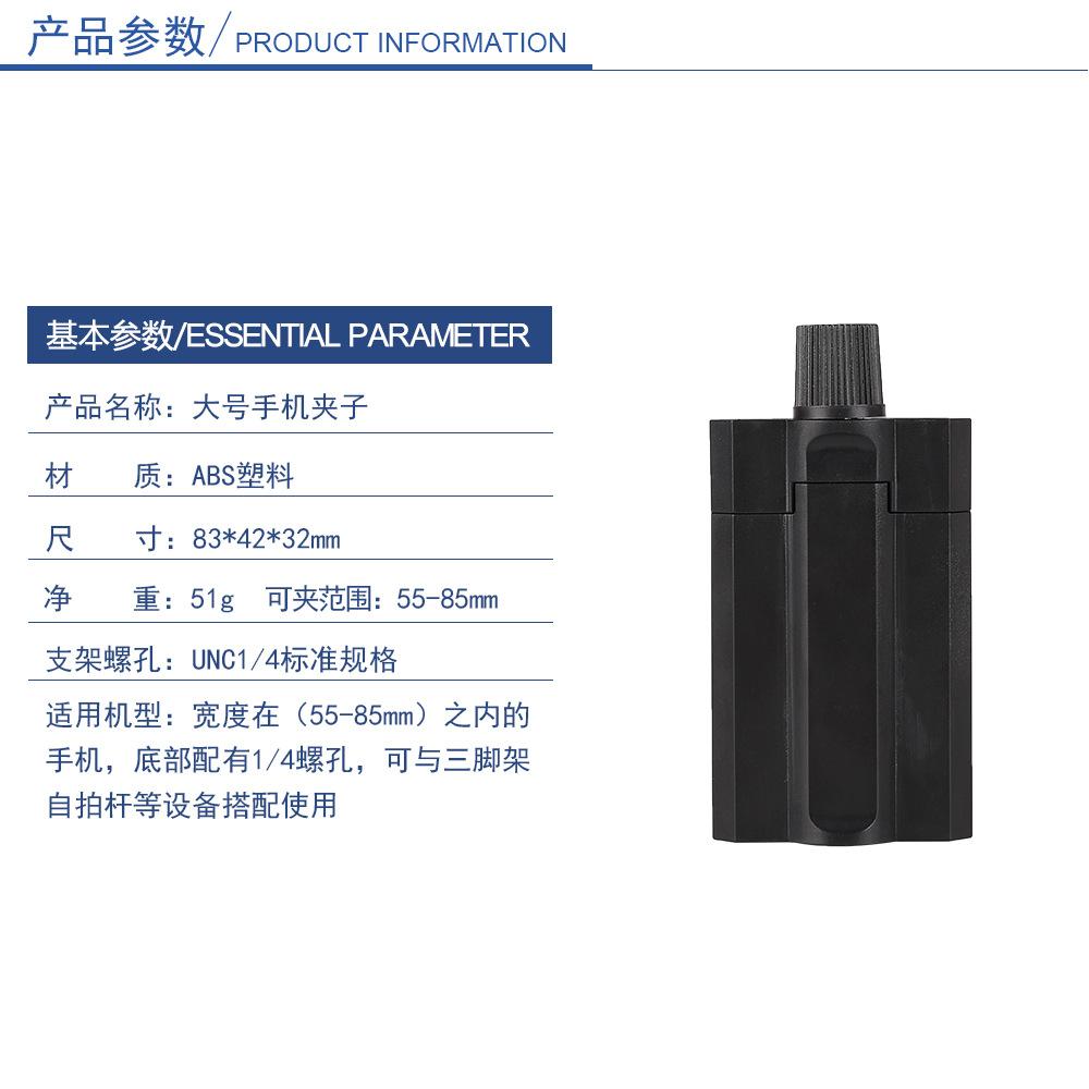 La pinza para teléfono móvil es adecuada para tomar fotos con teléfonos móviles de 55-85 mm como Apple, Samsung y Xiaomi. También se puede instalar en un palo selfie o trípode para grabar. Es la pinza para teléfono móvil más rentable del mercado. Elegimos materiales de alta calidad para brindar a los clientes la mayor experiencia preferencial.