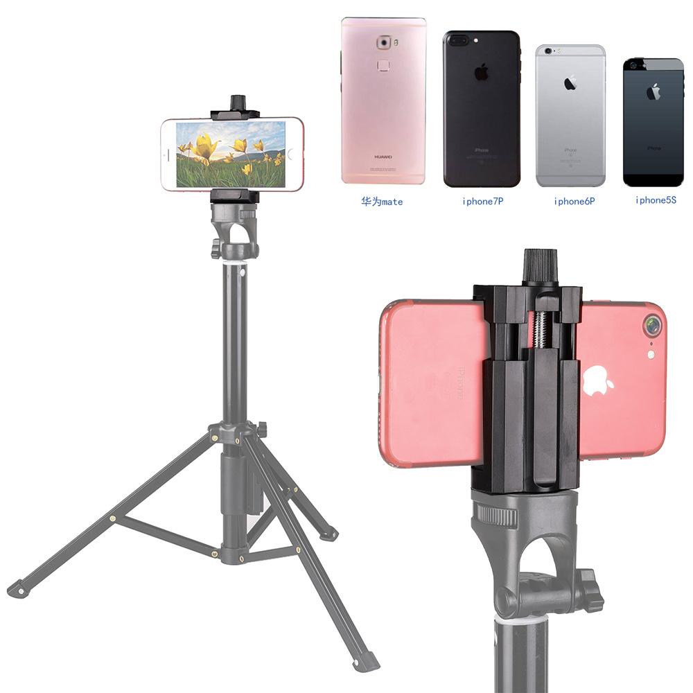 Se puede instalar en cualquier trípode. Rango de sujeción: 55-85 mm. Compatible con la mayoría de los teléfonos móviles (Apple, Samsung, Xiaomi, etc.).