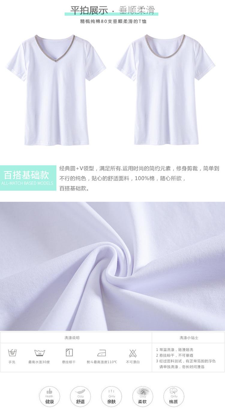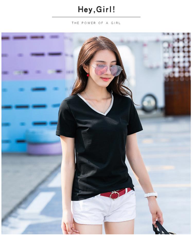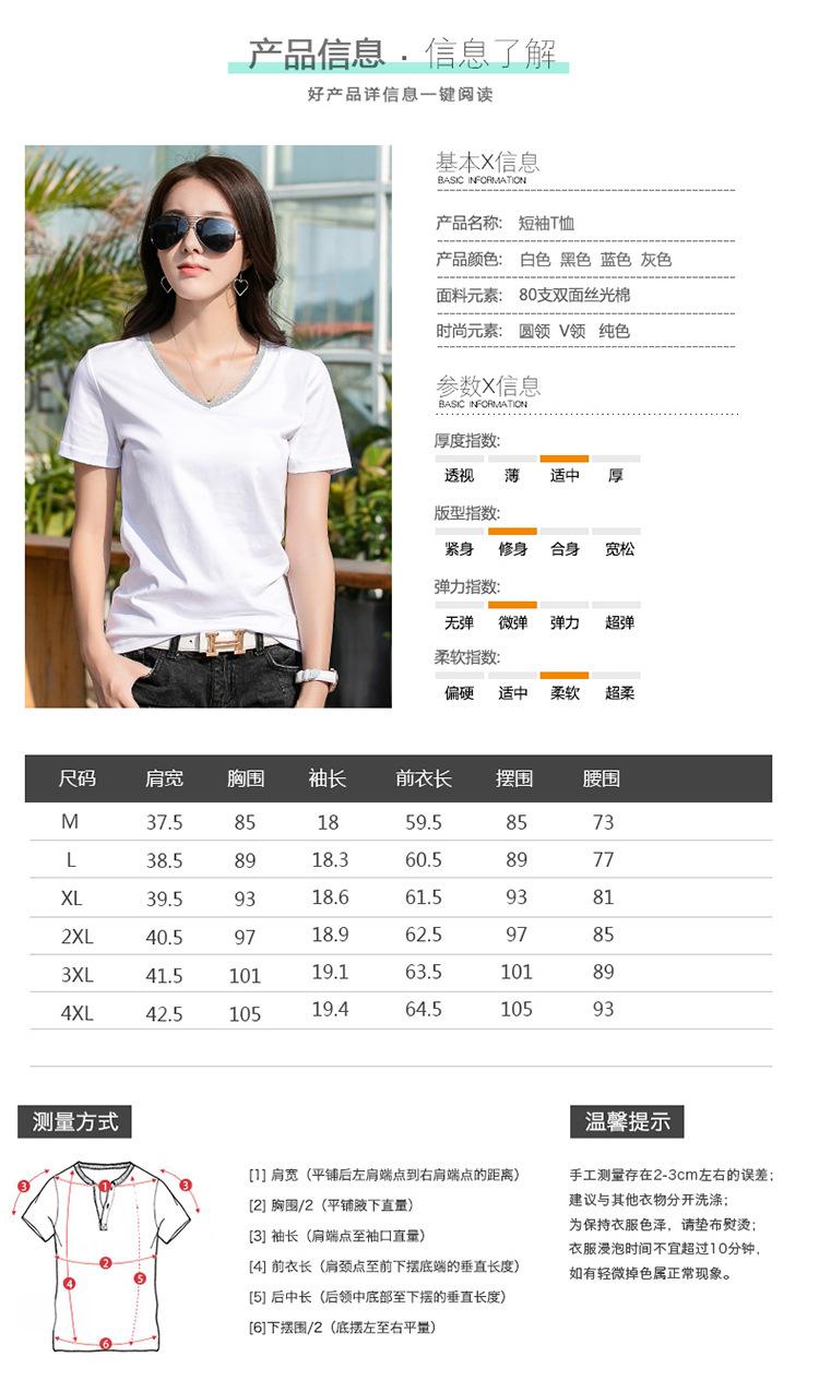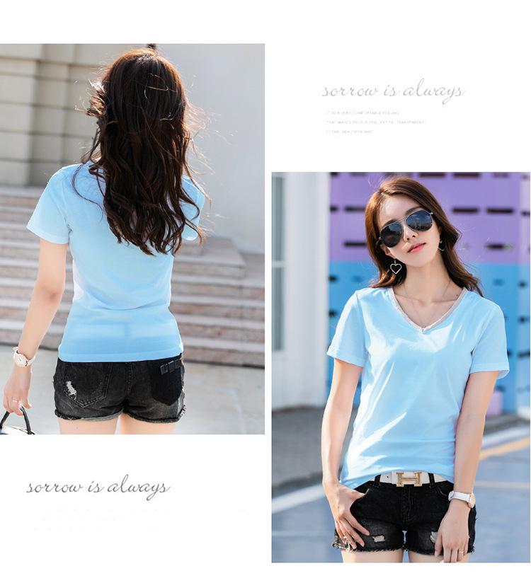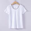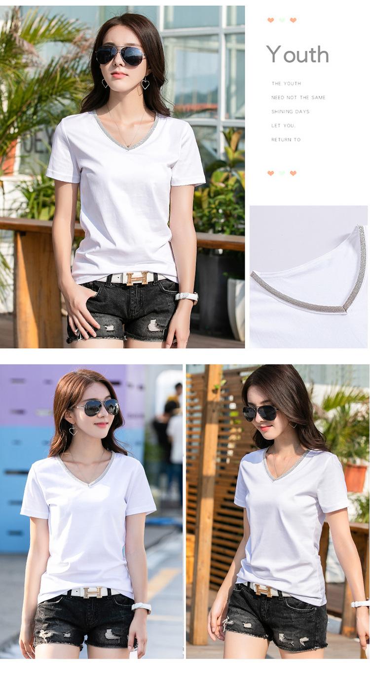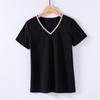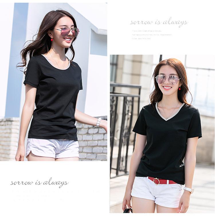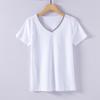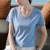Camiseta de Algodón Mercerizado de 80 Hilos para Mujer Manga Corta 2025 Nueva Cadena Metálica Versátil Estilo Coreano Cuello V Top Casual 8895