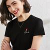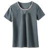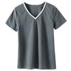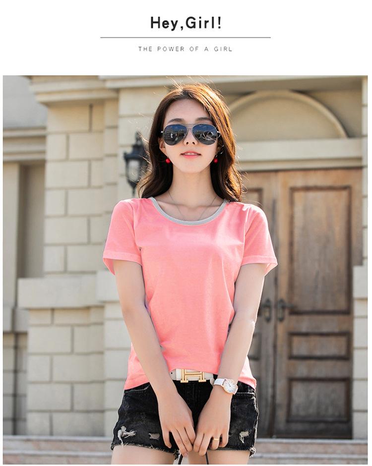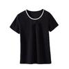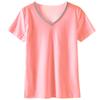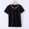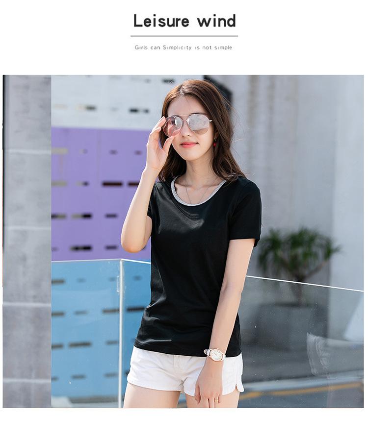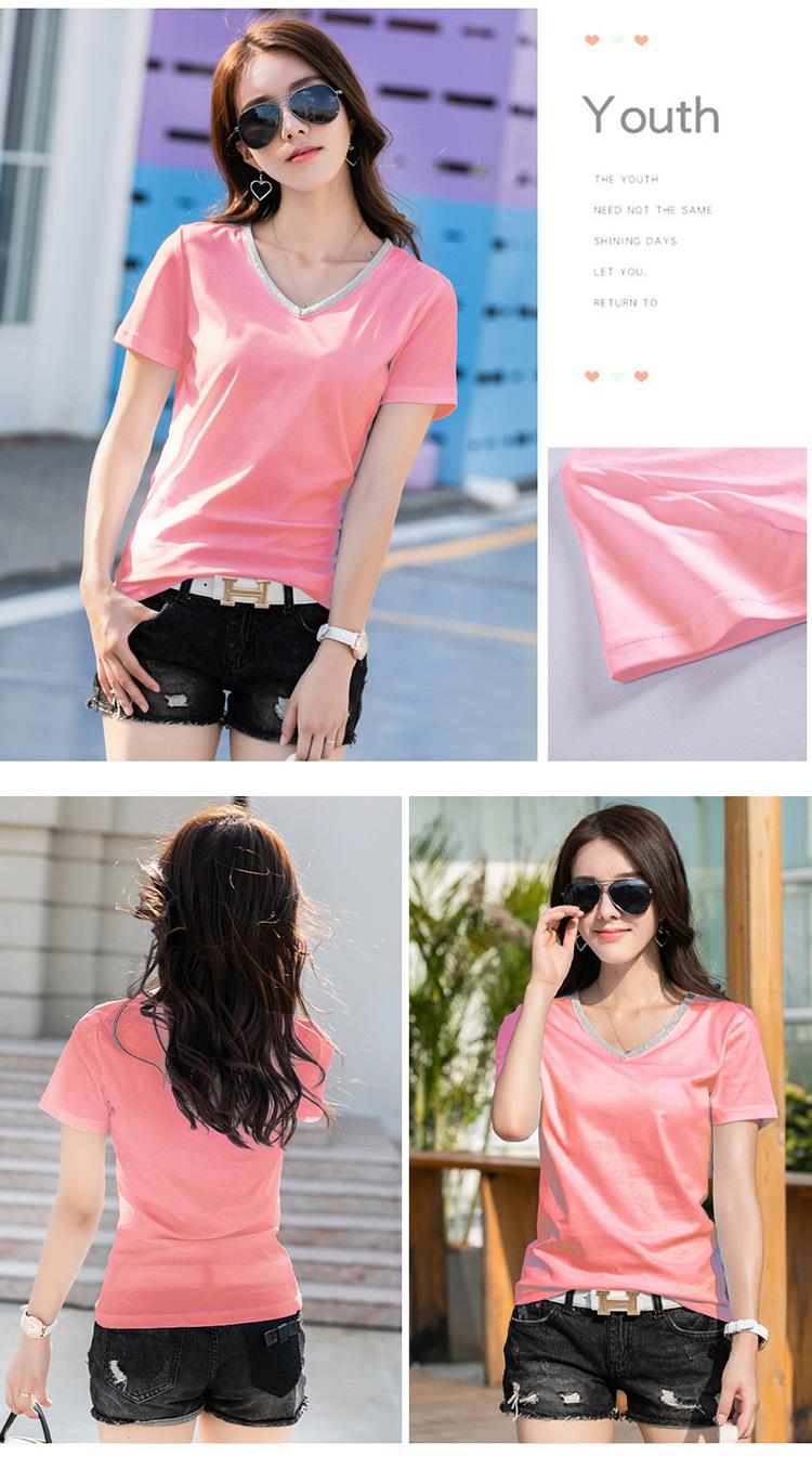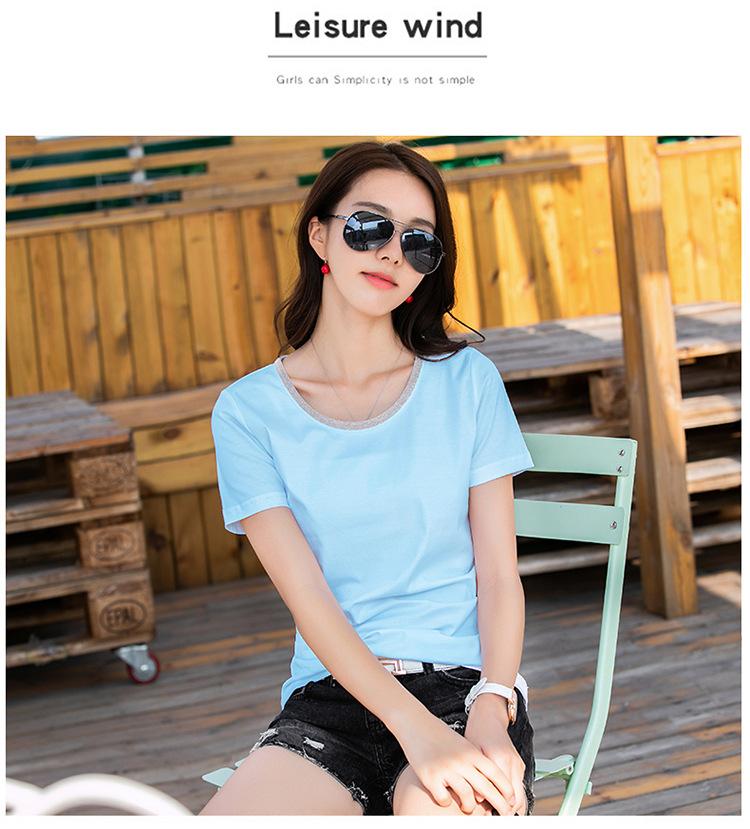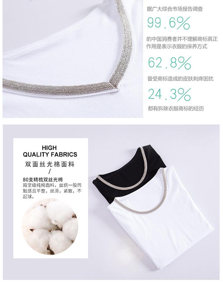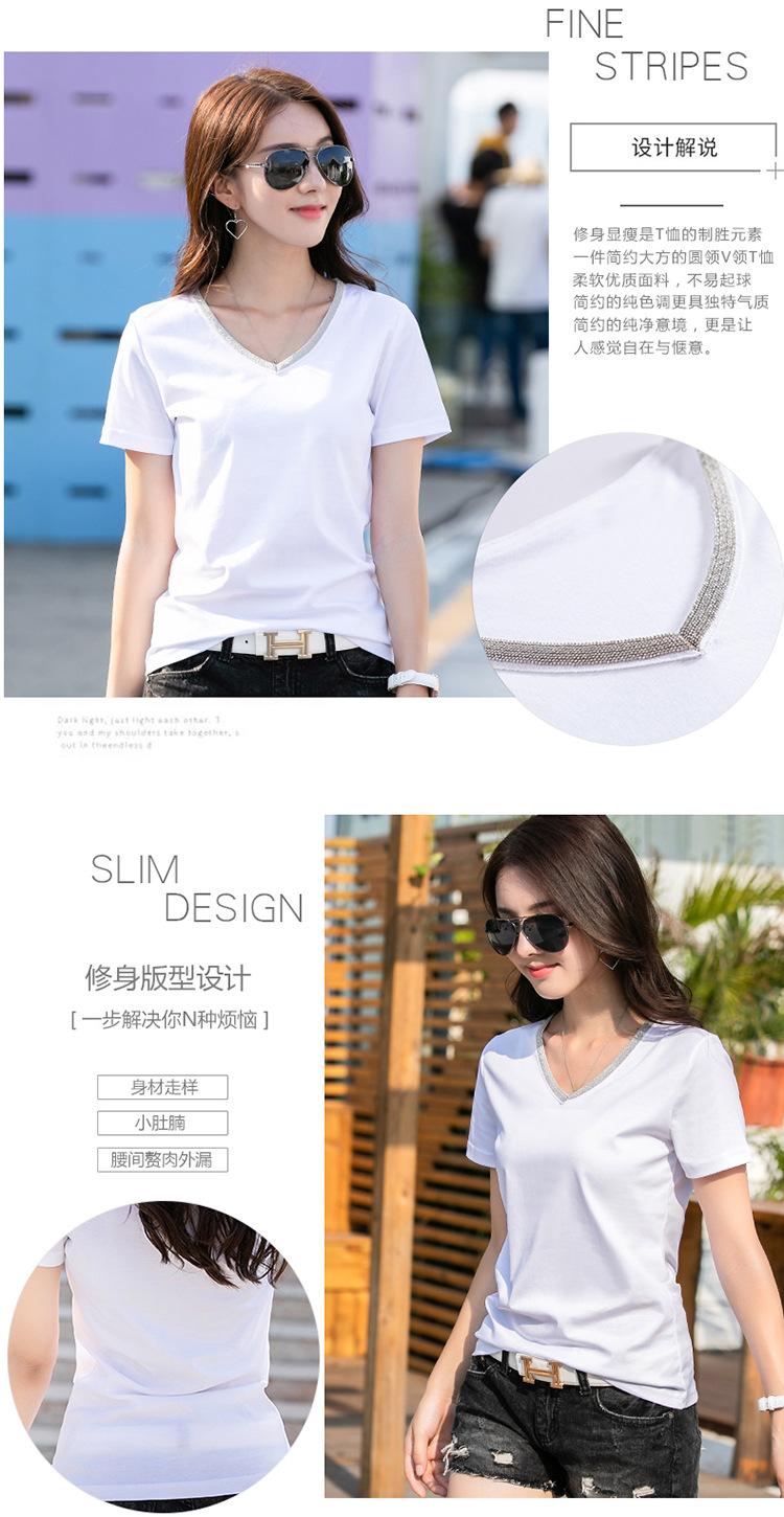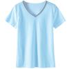 Camiseta de Algodón Mercerizado de 80 Hilos para Mujer Manga Corta 2025 Nueva Cadena Metálica Versátil Estilo Coreano Cuello V Top Casual 8895