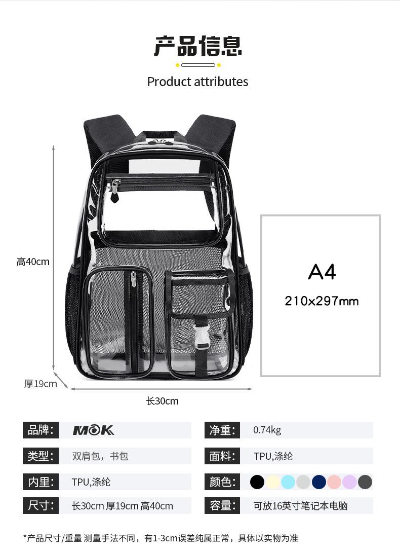 Bolsa de Gelatina Transparente de TPU Mochila para Estudiante de Secundaria 2025 Nueva Gran Capacidad Mochila Transfronteriza Venta al por Mayor
