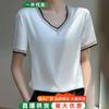 23 Primavera y Verano Nueva Moda Jersey Elegante Cuello en V Camisa con Botones de Perla Camisa de Seda Satén de Manga Larga
