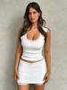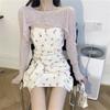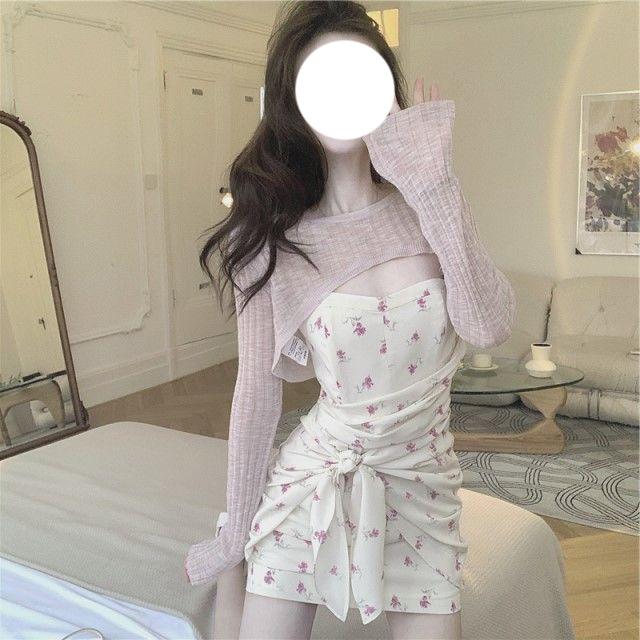 2025 Primavera y Otoño Sexy Chica Caliente Cubre Caderas Falda Corta Estilo Lujuria Pura Vestido Tubo Floral + Blusa de Color Sólido Conjunto de Dos Piezas