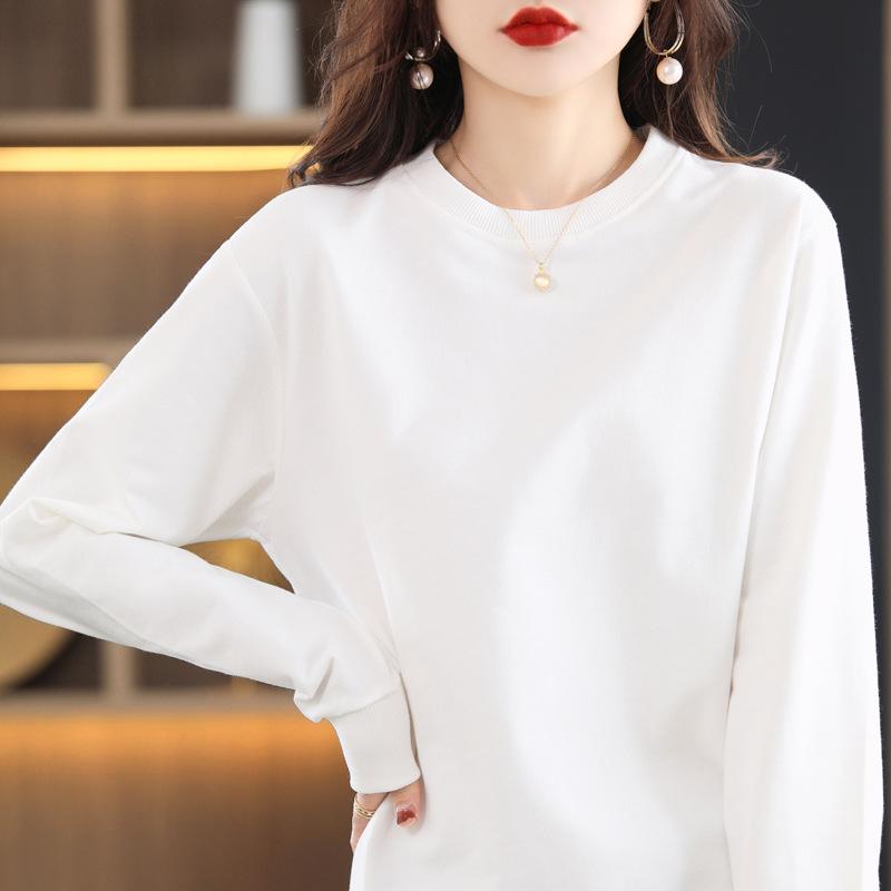 Sudadera de primavera y otoño para hombre y mujer, talla grande, holgada, de algodón peinado, con cuello redondo, sudadera de otoño e invierno, abrigo que combina con todo para mujer.
