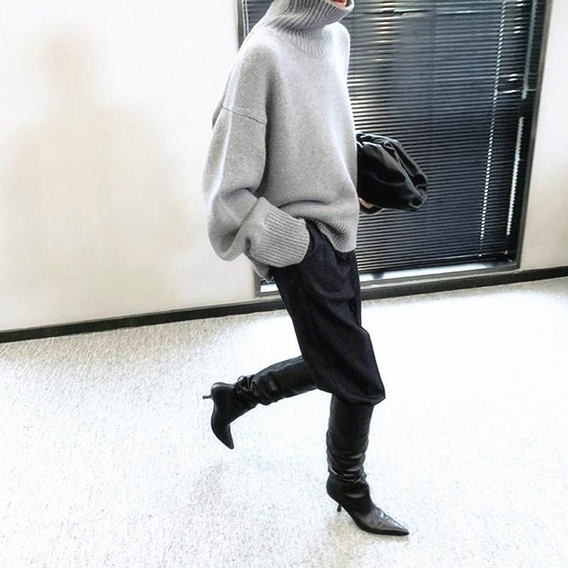 Suéter Rojo Transfronterizo Otoño e Invierno Suéter Europeo de Cachemira para Mujer Cuello Alto Cuello Alto Suéter de Cachemira para Mujer Suéter Grueso para Mujer Estilo Relajado para Mujer