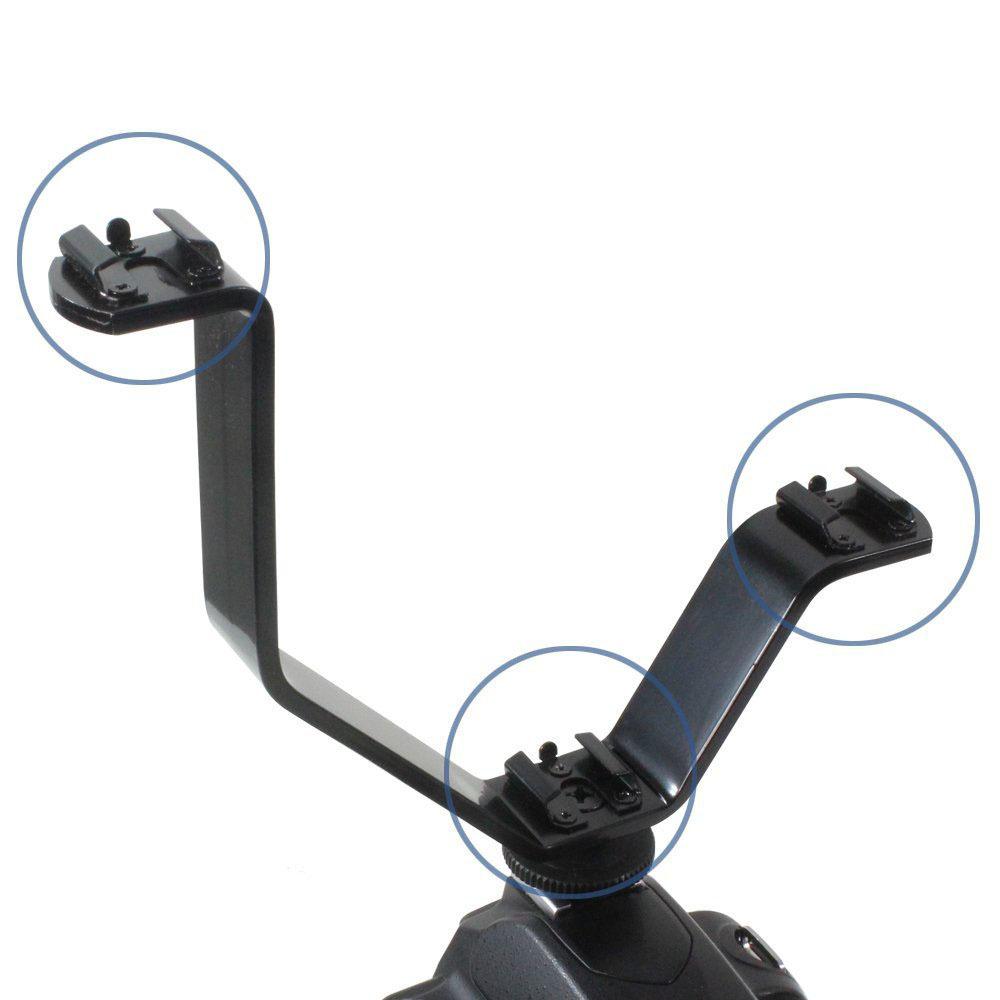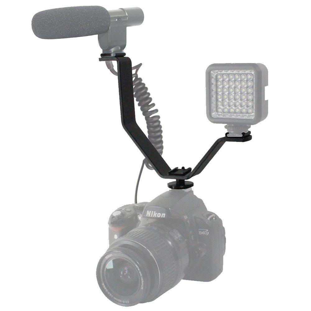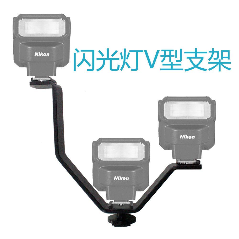 1. Soporte en forma de V con zapata de metal tres en uno, que incluye 3 puertos de zapata, que se pueden usar para transferir micrófonos, flashes, luces de video LED, etc. con interfaces de zapata