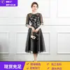 Reunión Anual 2026 de la Empresa de Vestidos de Noche Nuevo Estilo Negro Seda Elegante Sexy Socialité Fiesta Banquete Anfitrión Vestido con Estilo