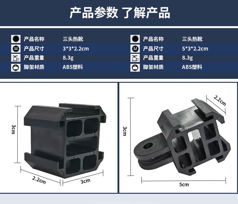 Plastic 1/4 three-head hot shoe, Plastic two-foot three-head hot boots