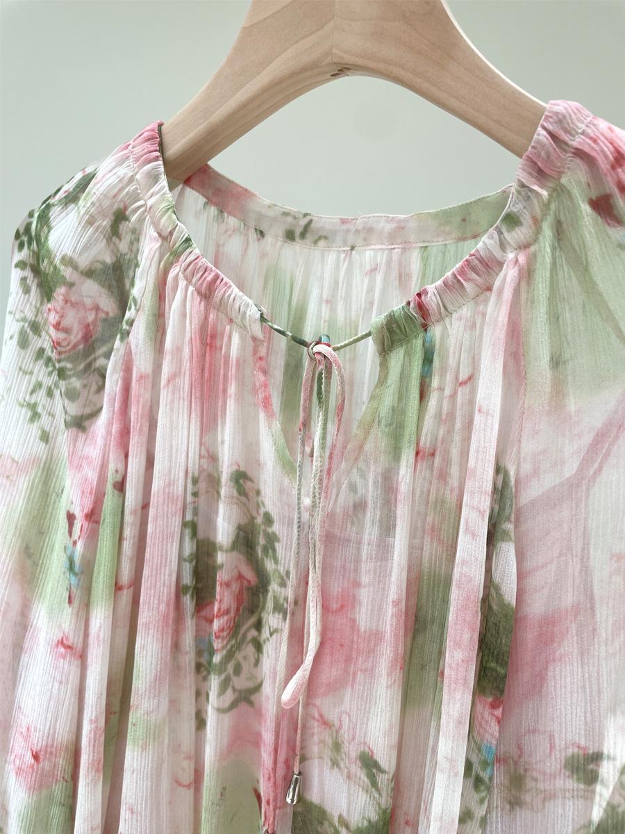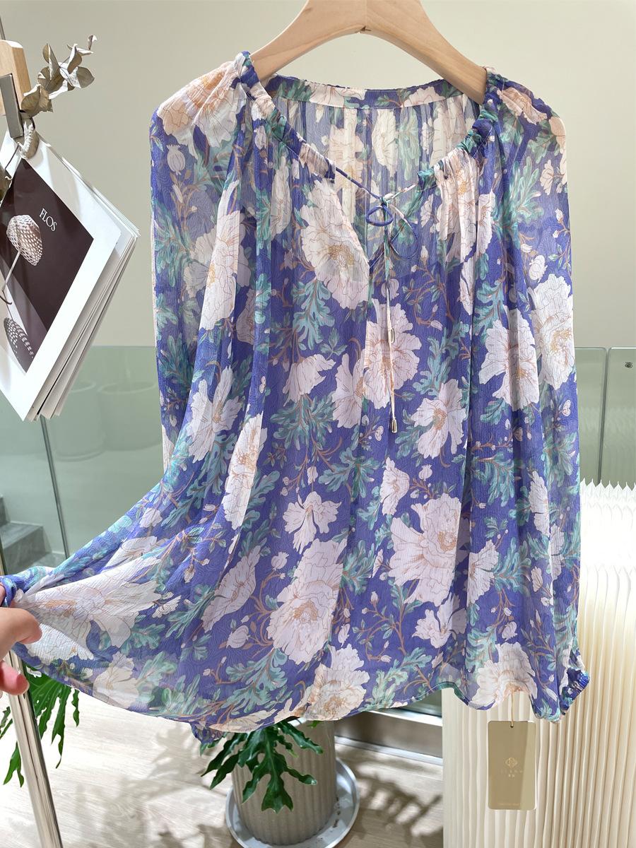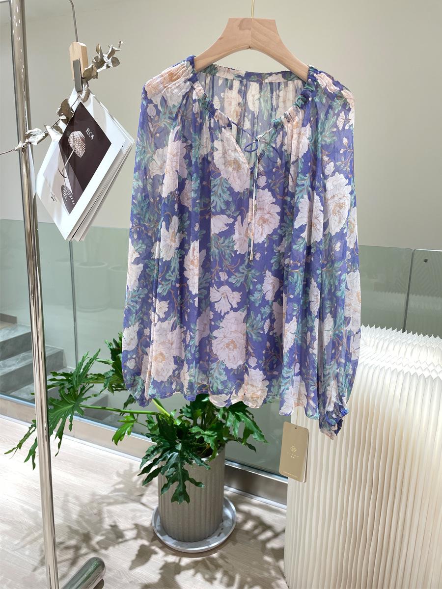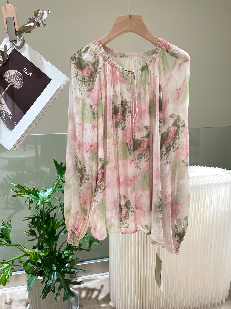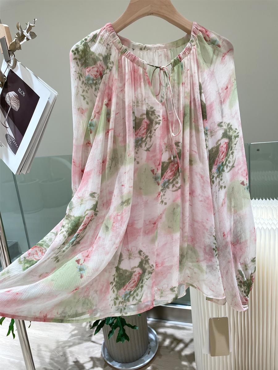 Camisa de Seda para Mujer Primavera y Verano 2025 Nuevo Diseño Tela Crepé de Bobina 100% Seda de Morera Camisa de Manga Larga para Oficina