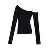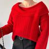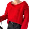 Otoño e invierno 2023 Nuevo suéter de moda europeo y americano transfronterizo de Amazon de color sólido con cuello descubierto estilo hermana real de dos vías